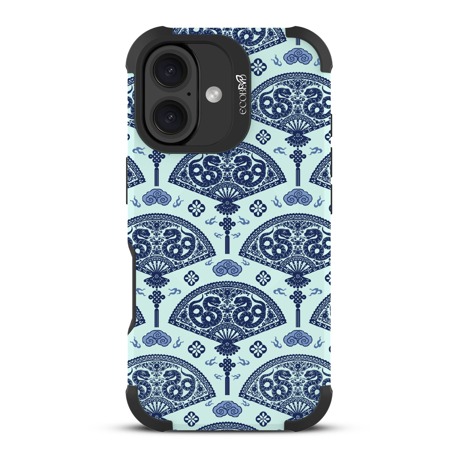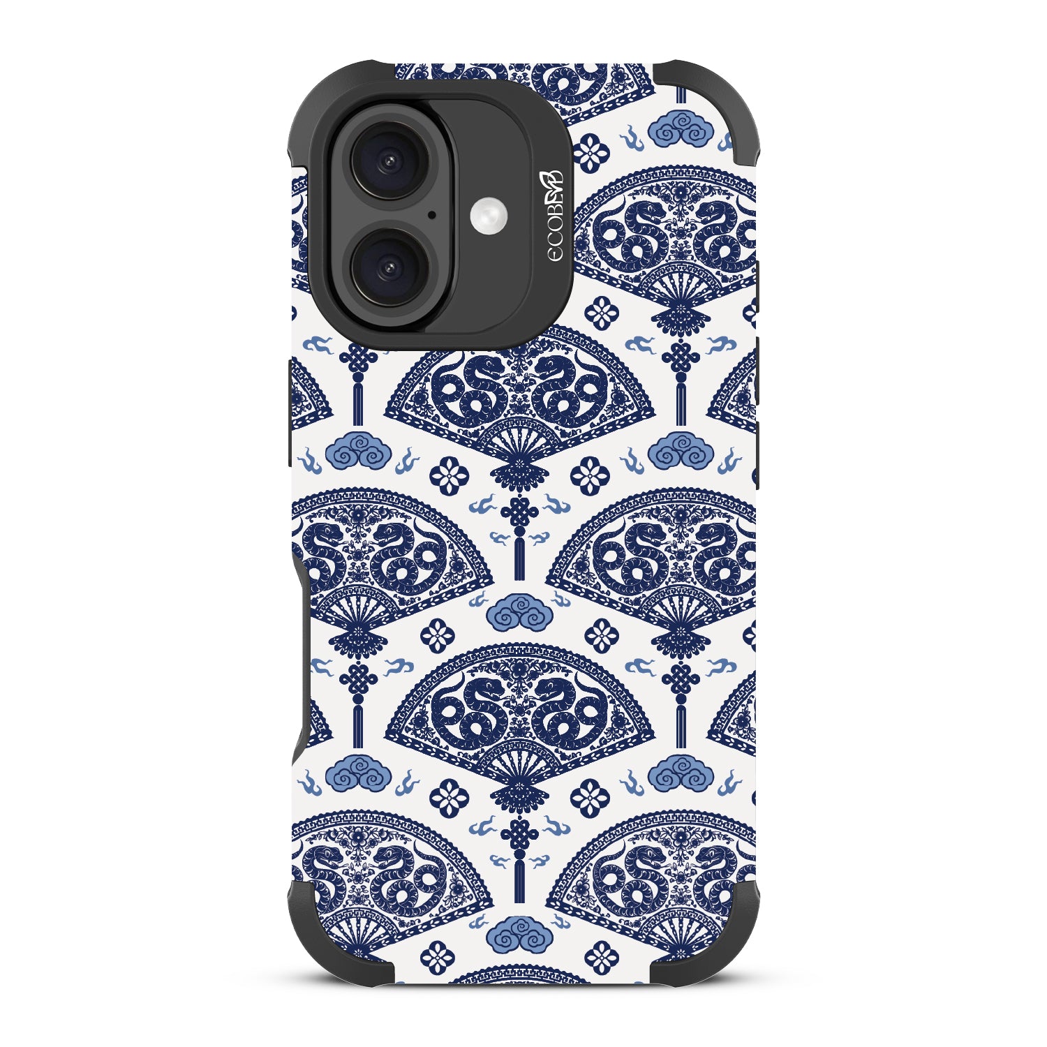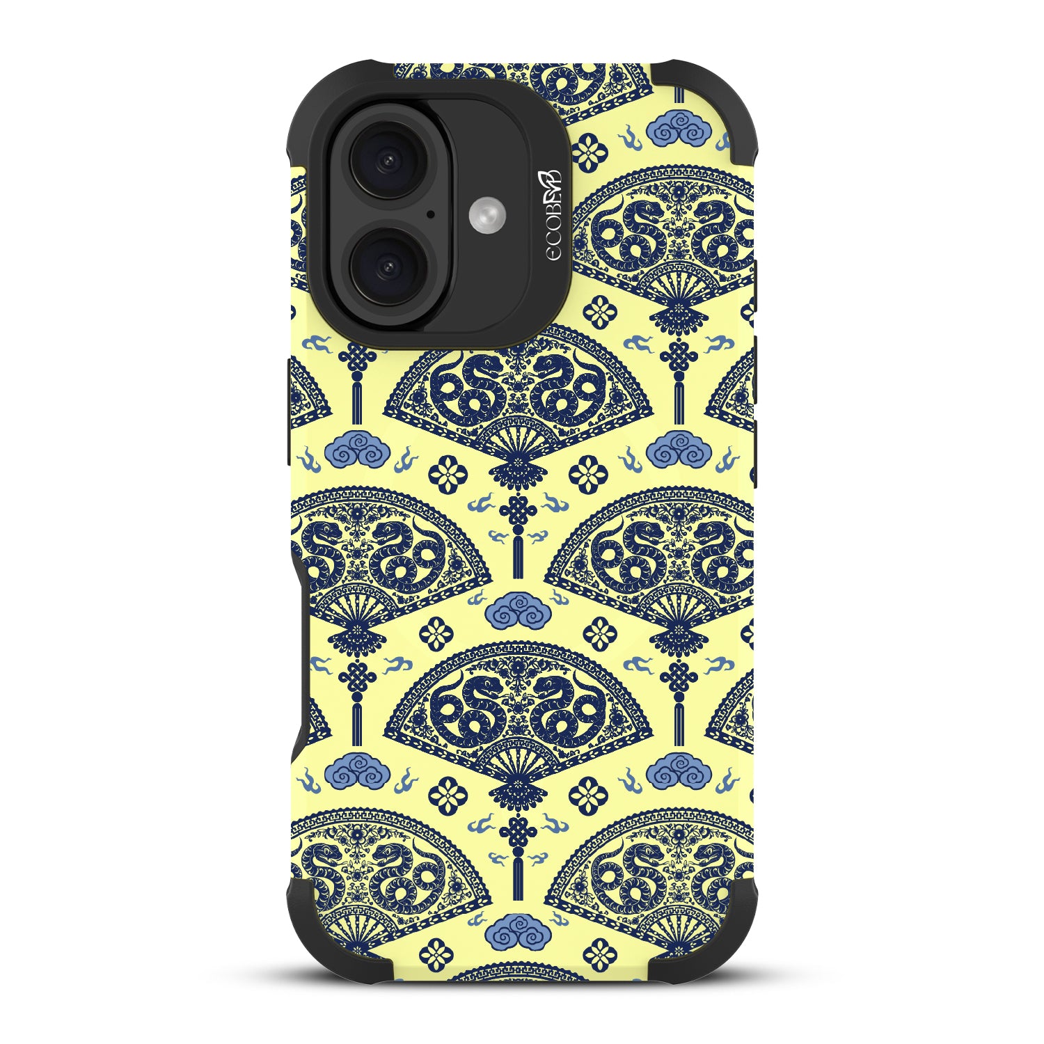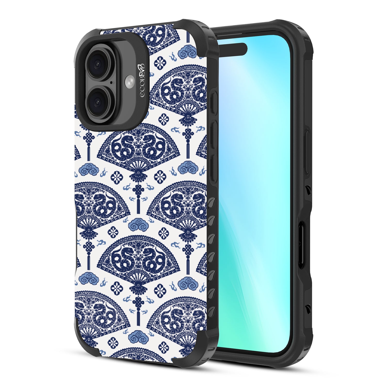 Let the winds of good fortune blow your way with the Fanning Fortune design on our Reforge rugged iPhone 16 phone case. Golden serpents coil through beautifully detailed fans, a symbol of protection and prosperity for the Year of the Snake. The blue and yellow hues reflect the harmony between calmness and vitality, setting the tone for a year filled with new opportunities and growth.