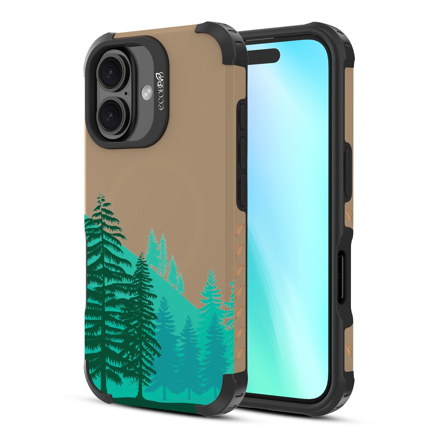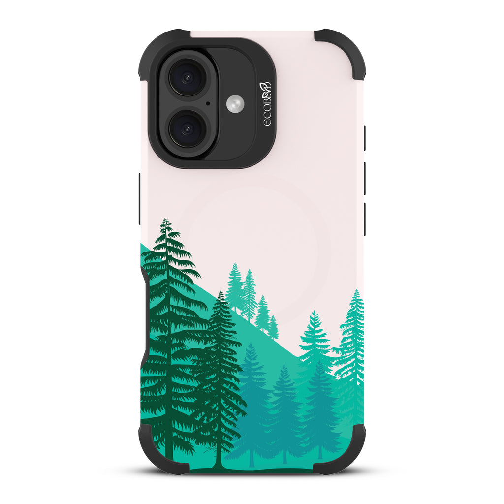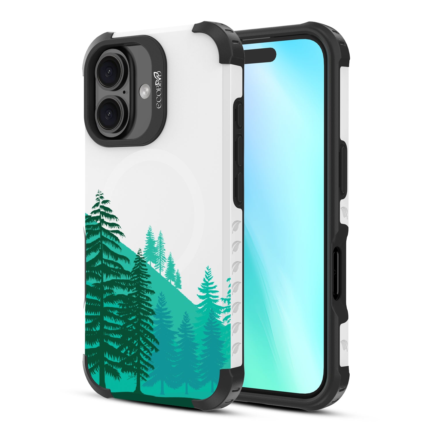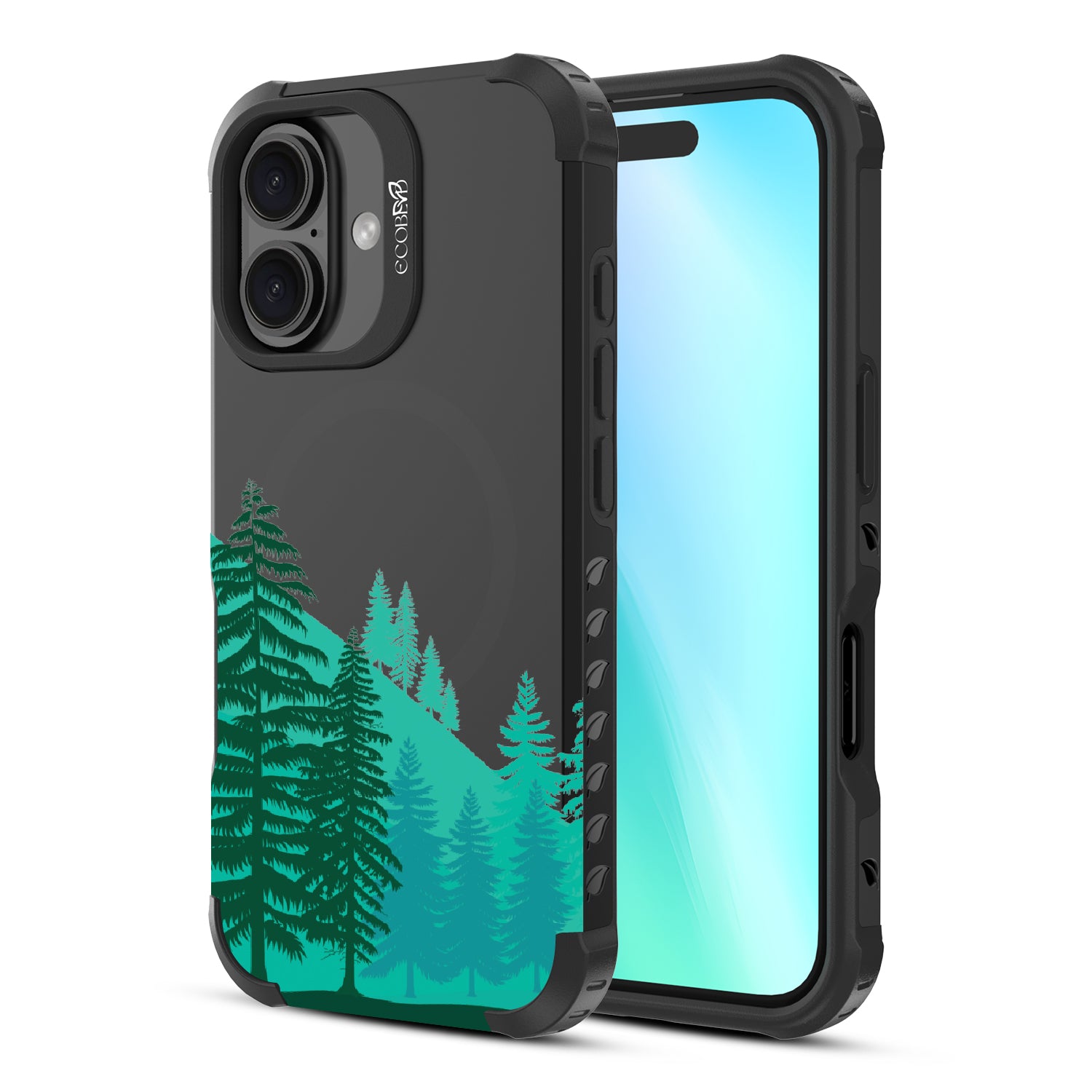 Get dialed into the wonder of nature as the Forest design on our Reforge rugged iPhone 16 phone case surrounds your phone. Explore the great outdoors with a lush forest of fir trees in five vibrant colors: Midnight Black, Cascade Blue, Foliage Green, Illuminating Yellow, and Wildflower Pink.