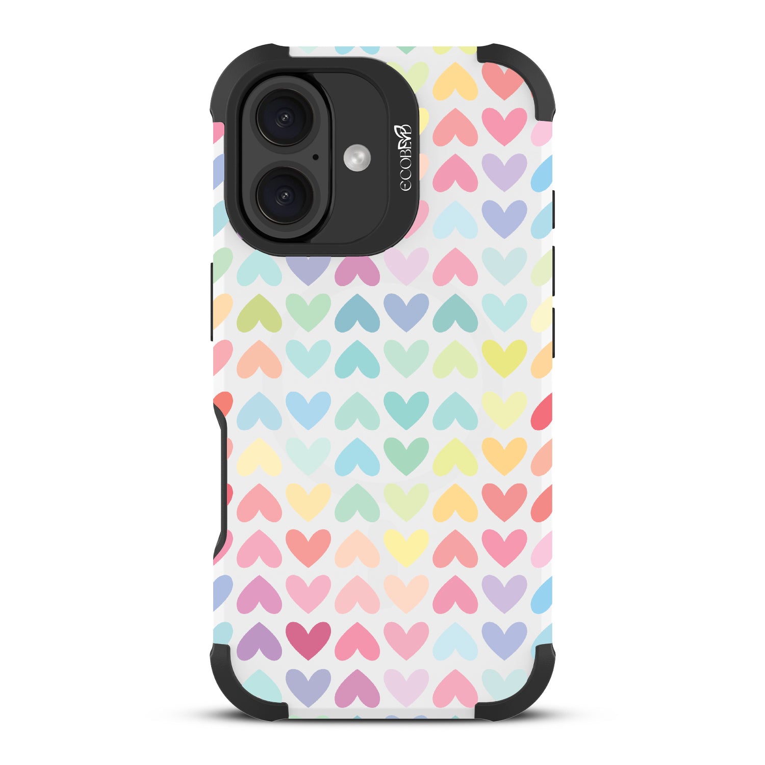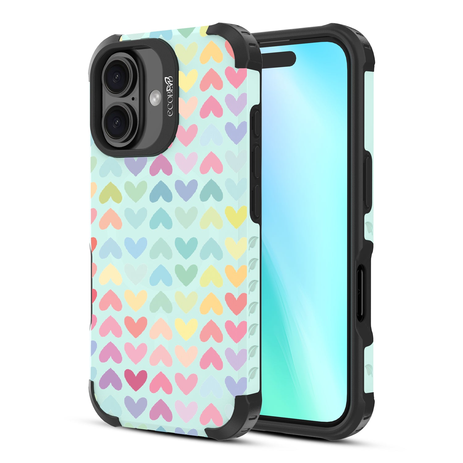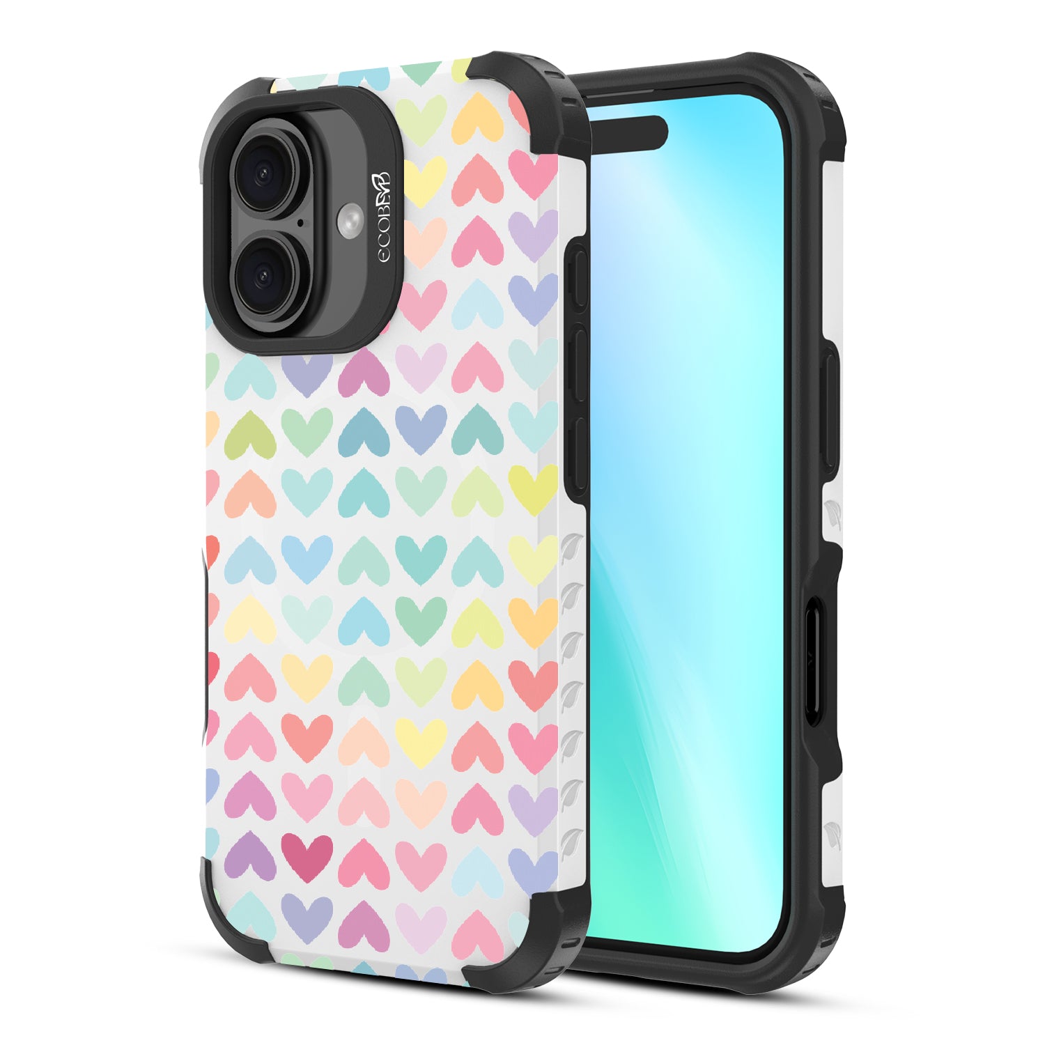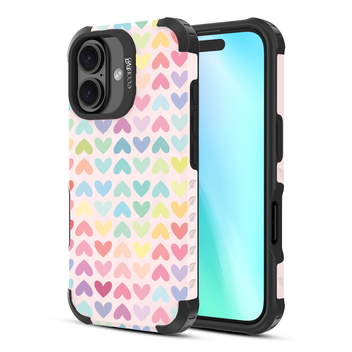 Let your phone spread love and equality with the colorful hearts of our Love Is Love design on our Reforge rugged iPhone 16 phone case.