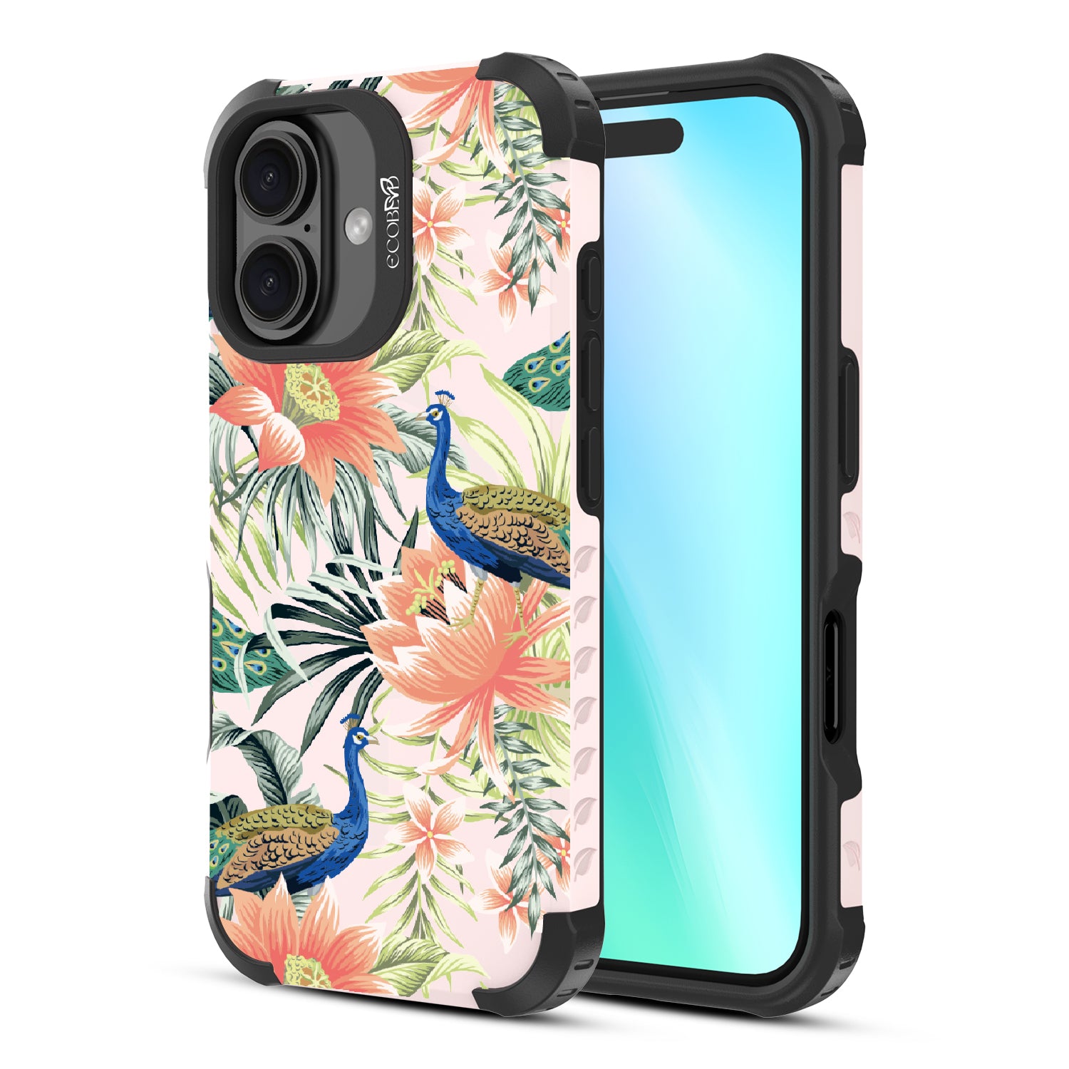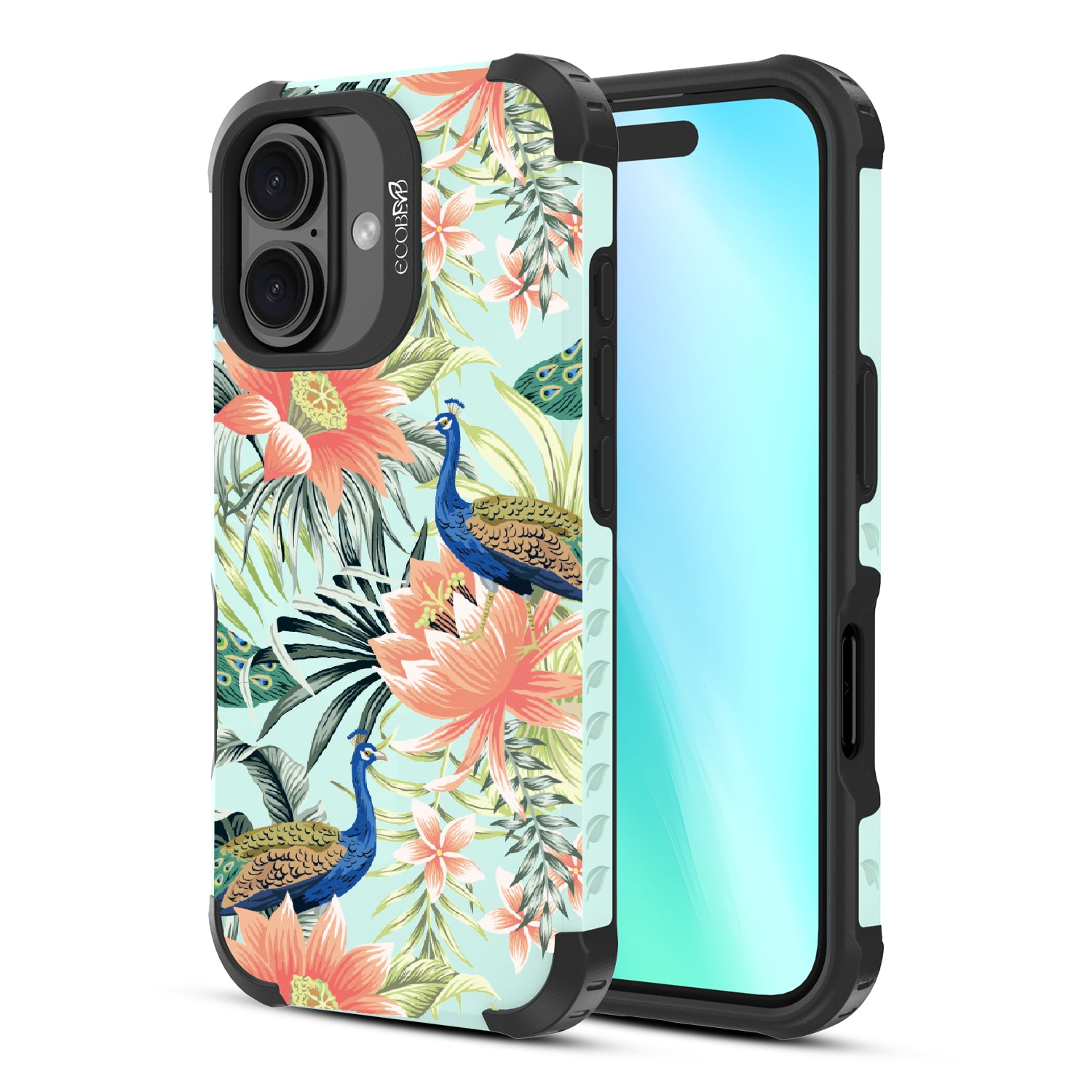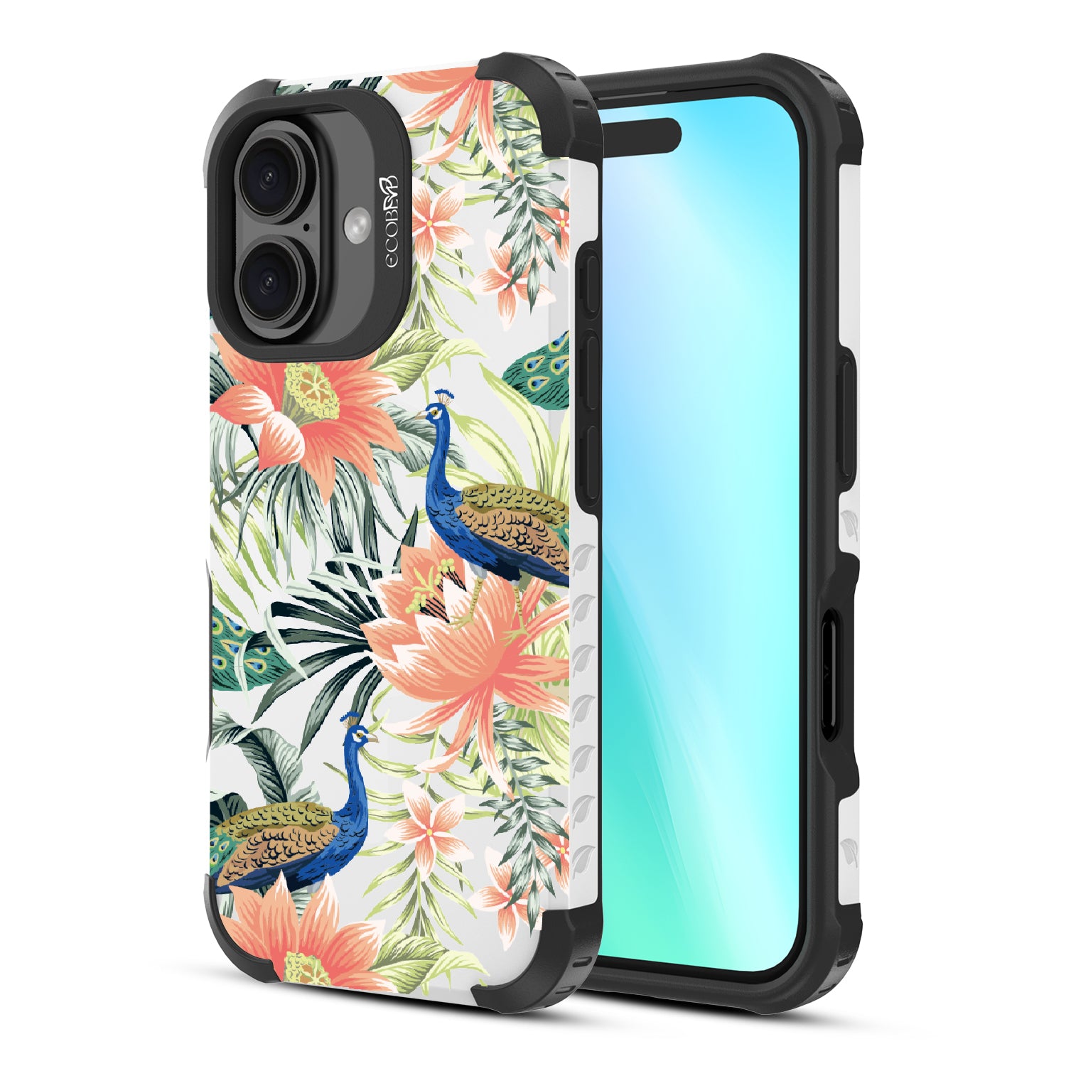 Immerse yourself in a sanctuary of regality and luxury, where the resplendent display of the peacock takes center stage on the Peacock Palace design on our Reforge rugged iPhone 16 Pro Max phone case. Embrace the lavish colors and intricate patterns that adorn the peacock's majestic presence while supporting ocean conservation efforts. Peacock Palace is like a royal court of vibrant colors and exotic birds, a place where the peacock's lavish display can be fully appreciated in all its glory. The tropical fauna that surrounds it is like the lush gardens that adorn the palace walls, adding to its majestic charm. So let Peacock Palace help you explore new horizons, express your true self with confidence, and revel in the luxurious beauty that surrounds you!