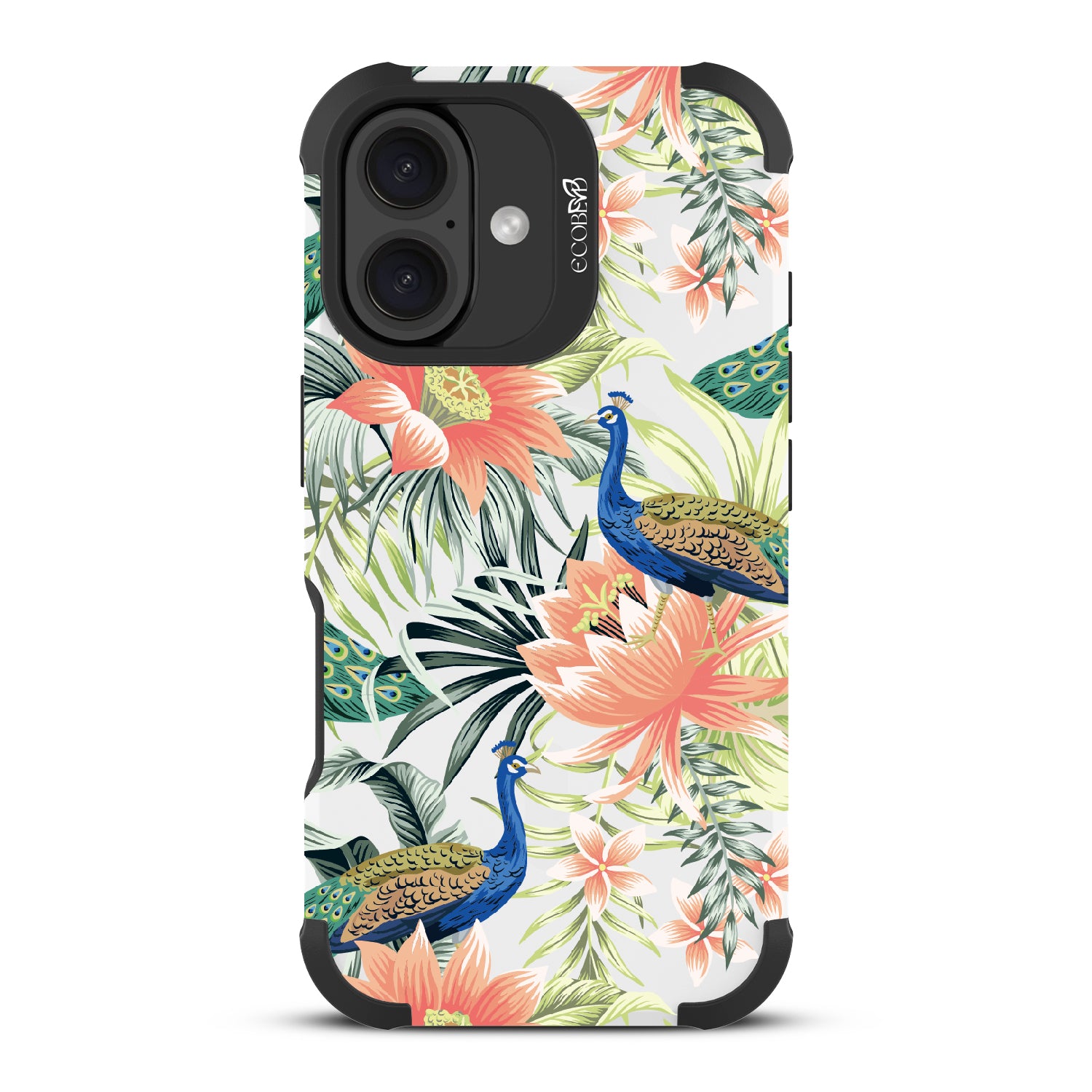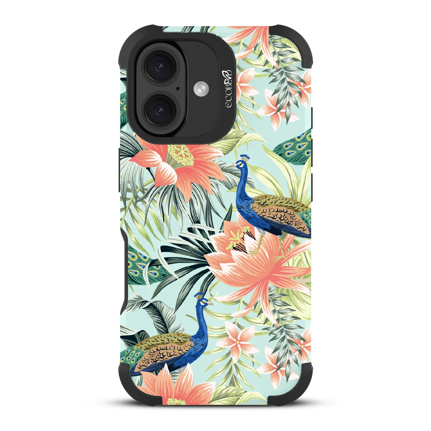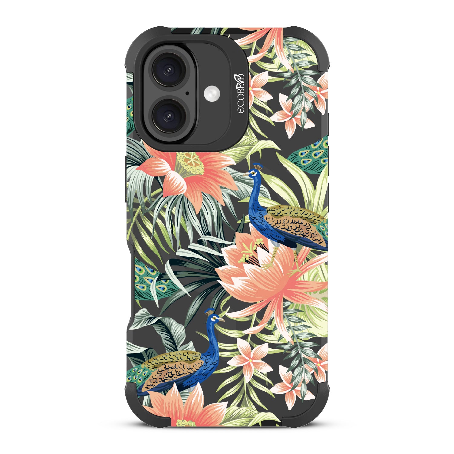Immerse yourself in a sanctuary of regality and luxury, where the resplendent display of the peacock takes center stage on the Peacock Palace design on our Reforge rugged iPhone 16 Pro Max phone case. Embrace the lavish colors and intricate patterns that adorn the peacock's majestic presence while supporting ocean conservation efforts. Peacock Palace is like a royal court of vibrant colors and exotic birds, a place where the peacock's lavish display can be fully appreciated in all its glory. The tropical fauna that surrounds it is like the lush gardens that adorn the palace walls, adding to its majestic charm. So let Peacock Palace help you explore new horizons, express your true self with confidence, and revel in the luxurious beauty that surrounds you!