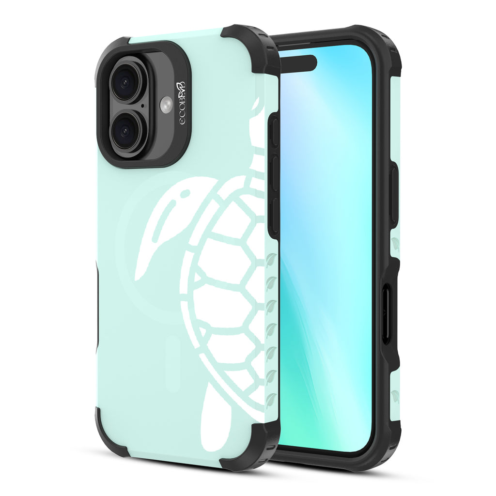 Every day will feel like a righteous beach day as the tranquil Sea Turtle design on our Reforge rugged iPhone 16 phone case floats along your phone.