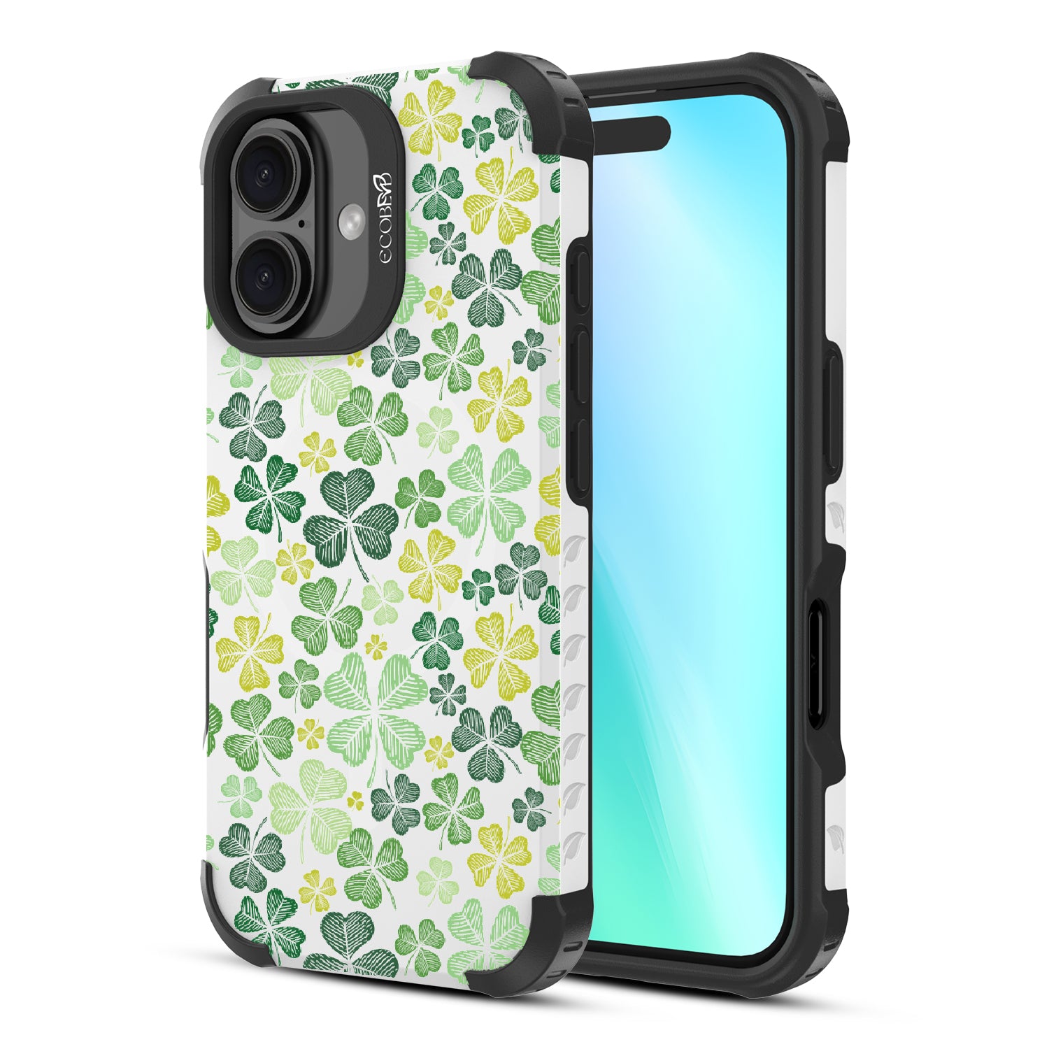 Turn your luck around with the vibrant Shamrock design on our Reforge rugged iPhone 16 phone case, where every leaf whispers tales of fortune and fate. Adorned with a sea of green four-leaf clovers, this design is a true emblem of luck, designed to bring a touch of charm.
