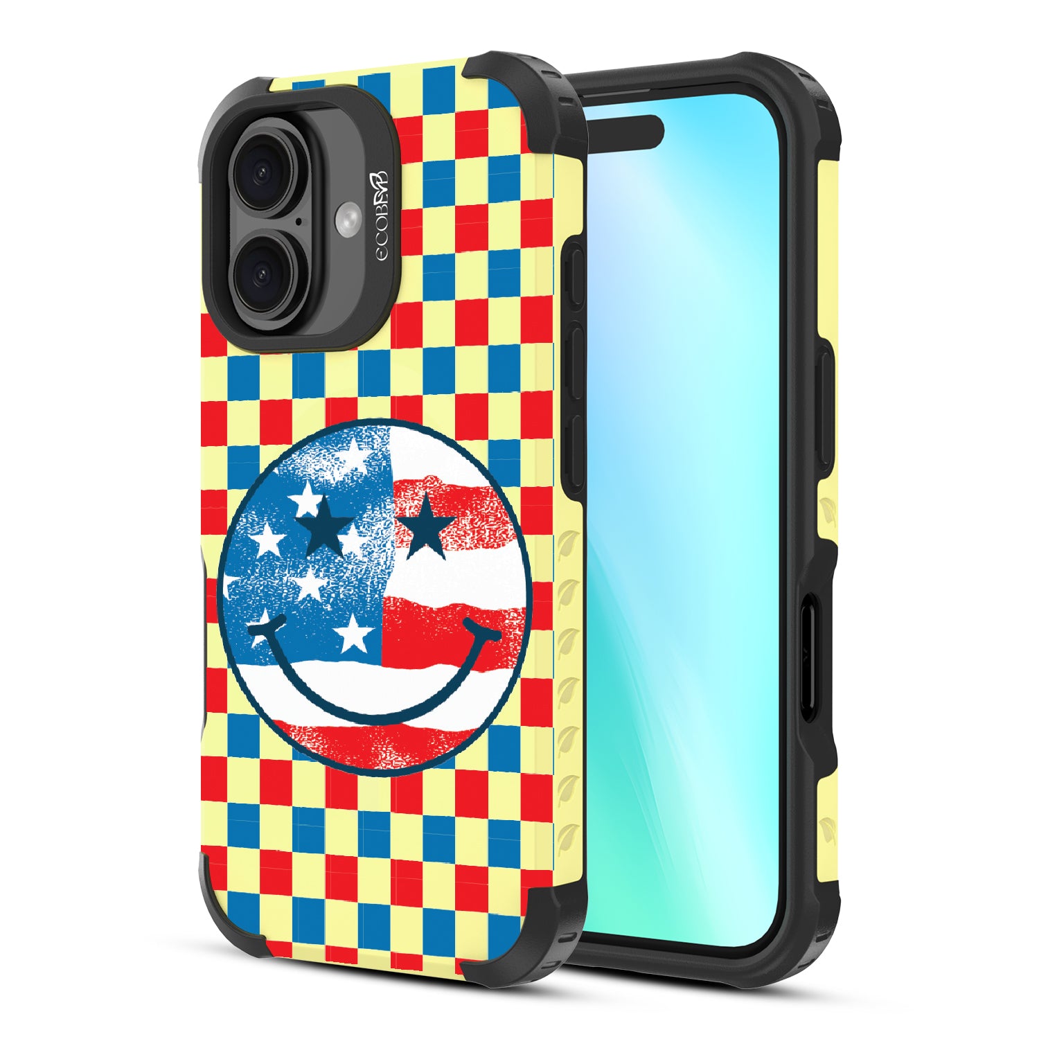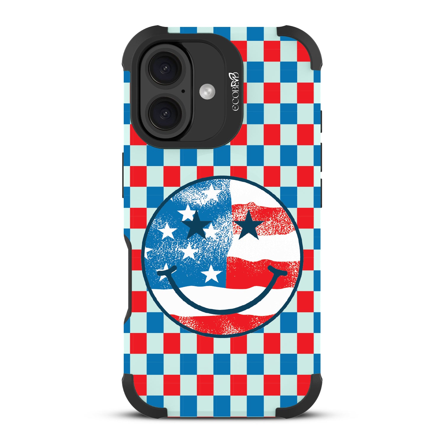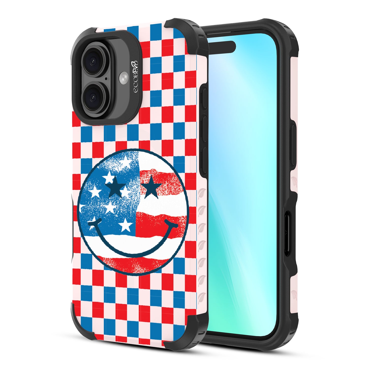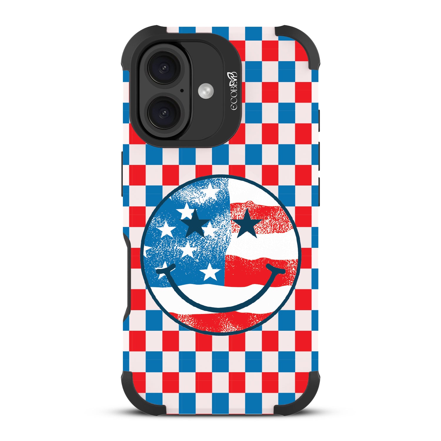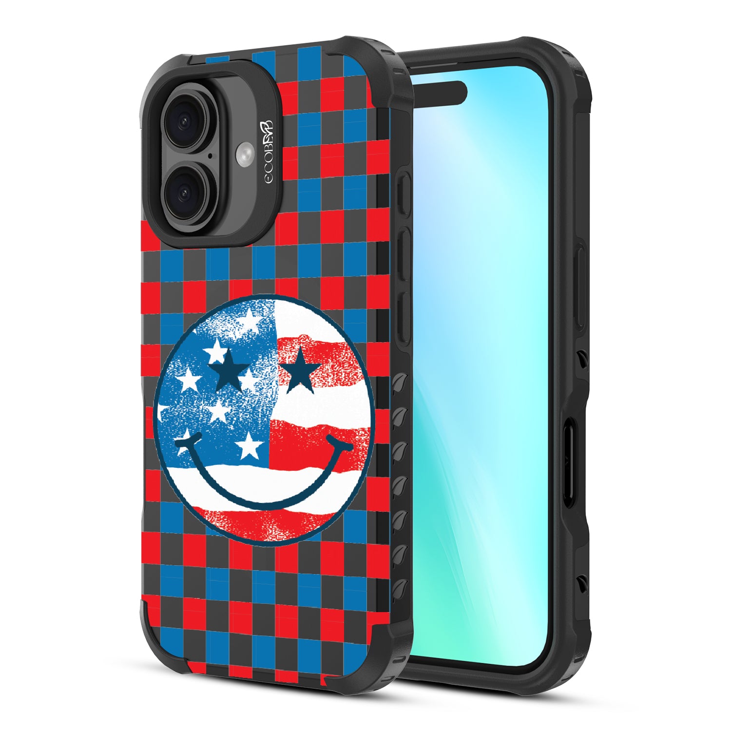 Rock your stars and stripes with The Anthem design on our Reforge rugged iPhone 16 phone case. The edgy red, white, and blue checker print and iconic smiley face embody the punk spirit of freedom. Turn up the volume and let your phone sing its anthem.