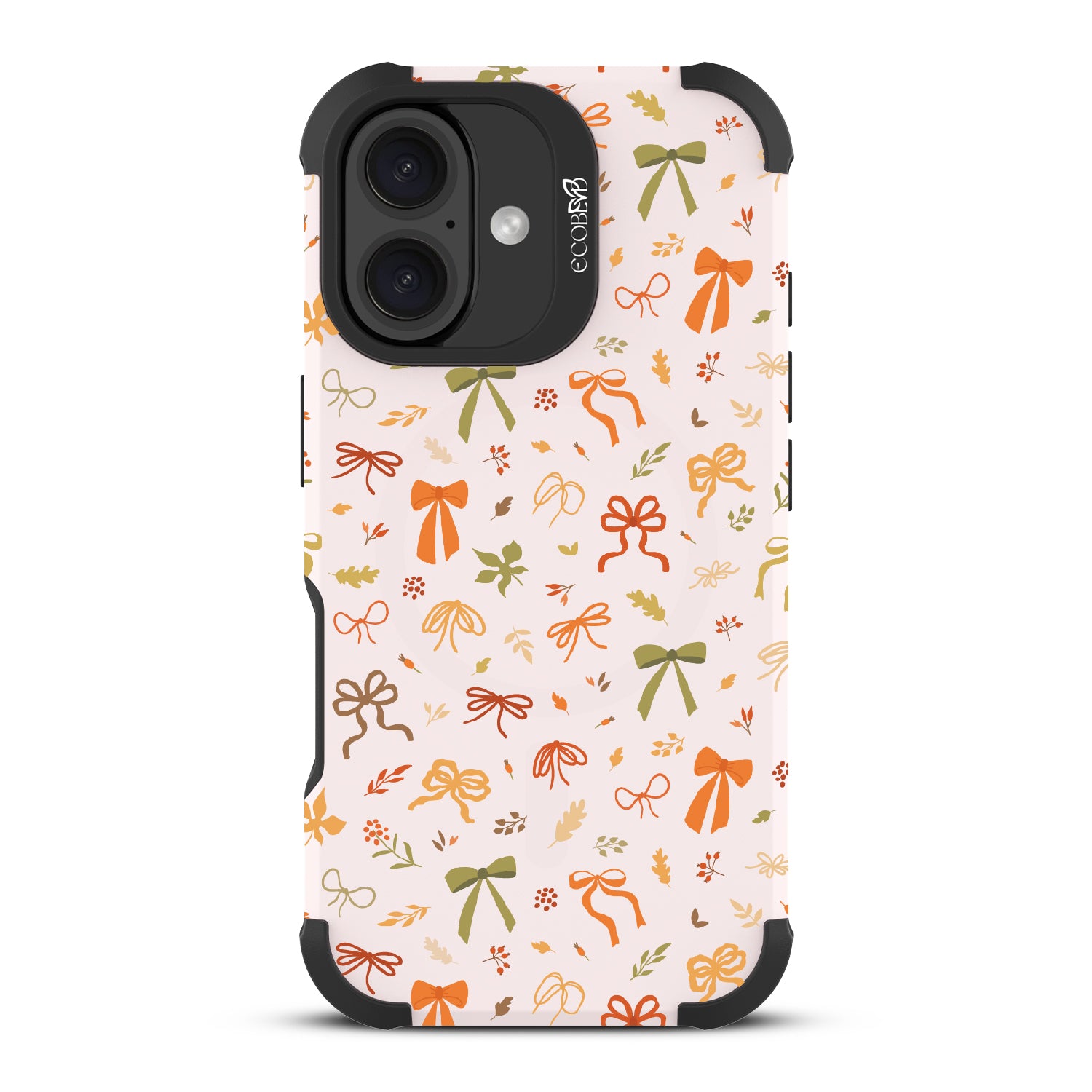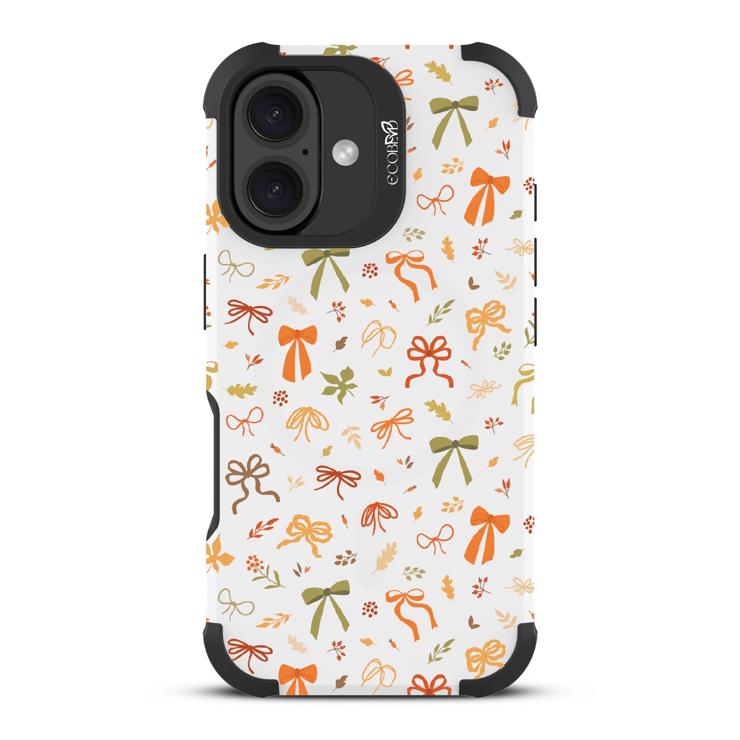 Don’t leaf your style to chance—wrap it up with the Twirls and Twine design on our Reforge rugged iPhone 16 cases! This charming pattern features bows twirling among autumn blooms, making it the perfect girly twist for those cozy sweater days. For those who believe every season deserves a little twirl!