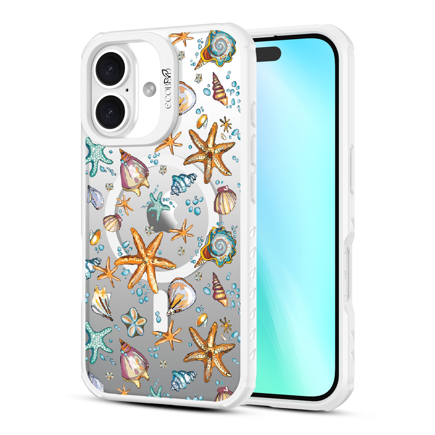 She sells seashells¡and now you can carry them with you wherever you go! The By The Sea Shore design on our Revive clear iPhone 16 phone case is a beachcomber¡¯s dream, featuring an array of seashells and starfish scattered across a sandy seashore. It¡¯s like a walk on the beach, minus the sand between your toes.