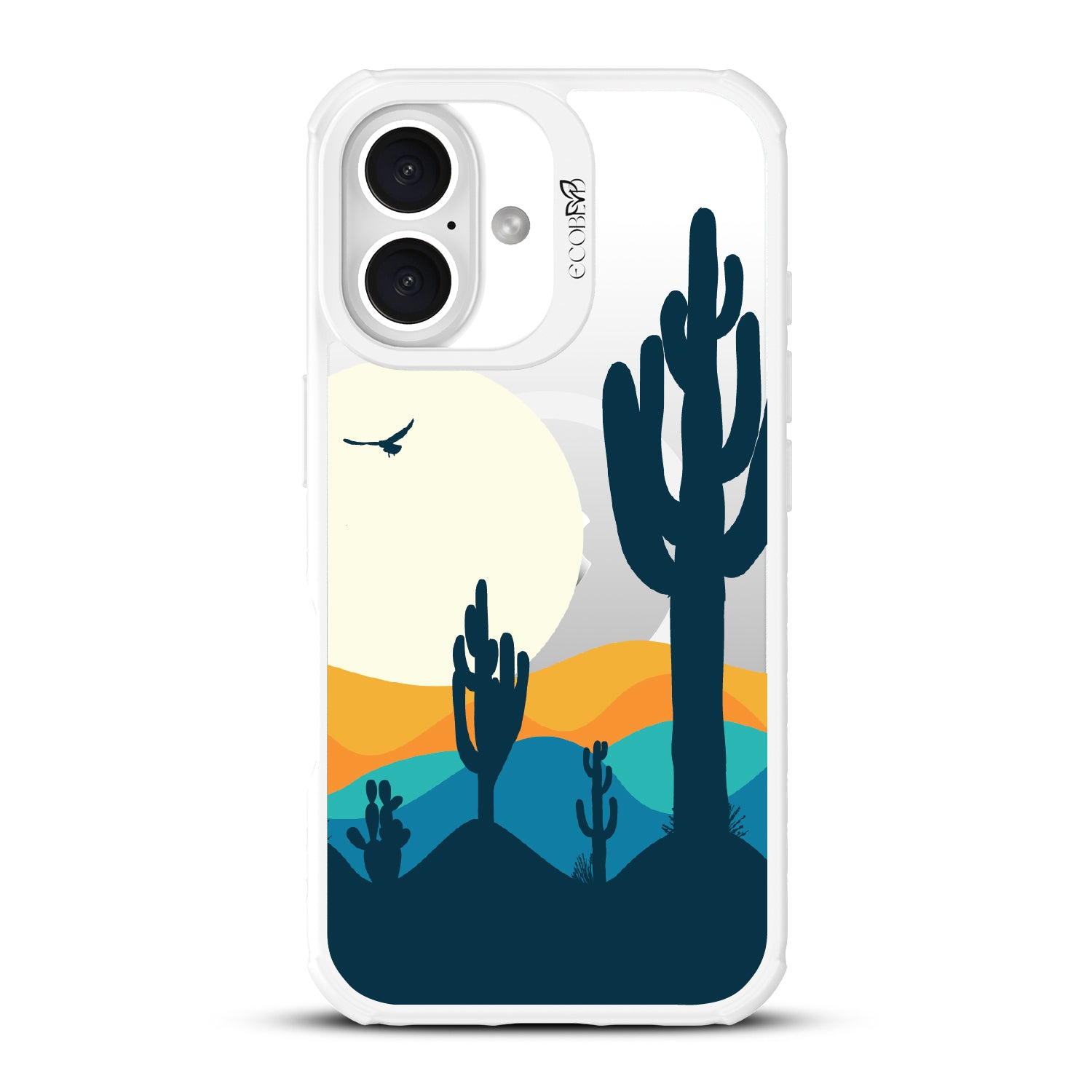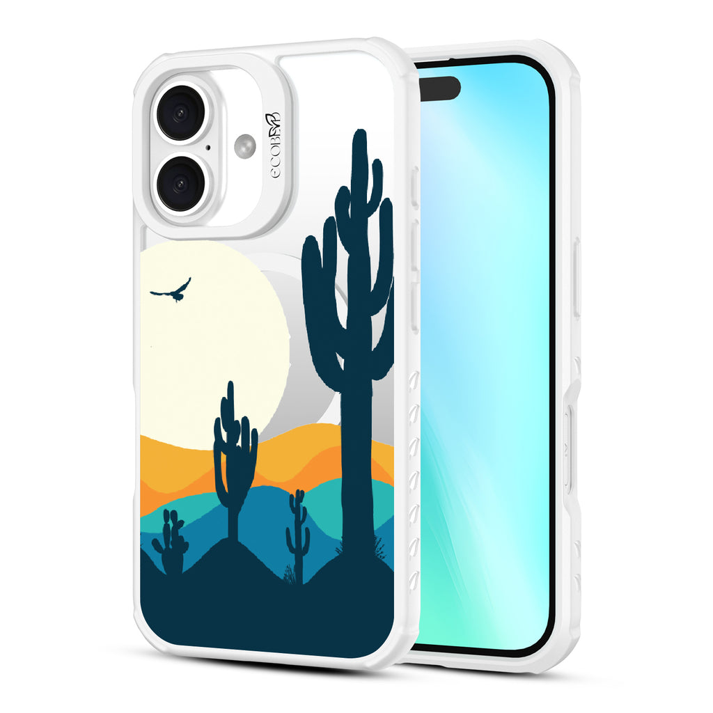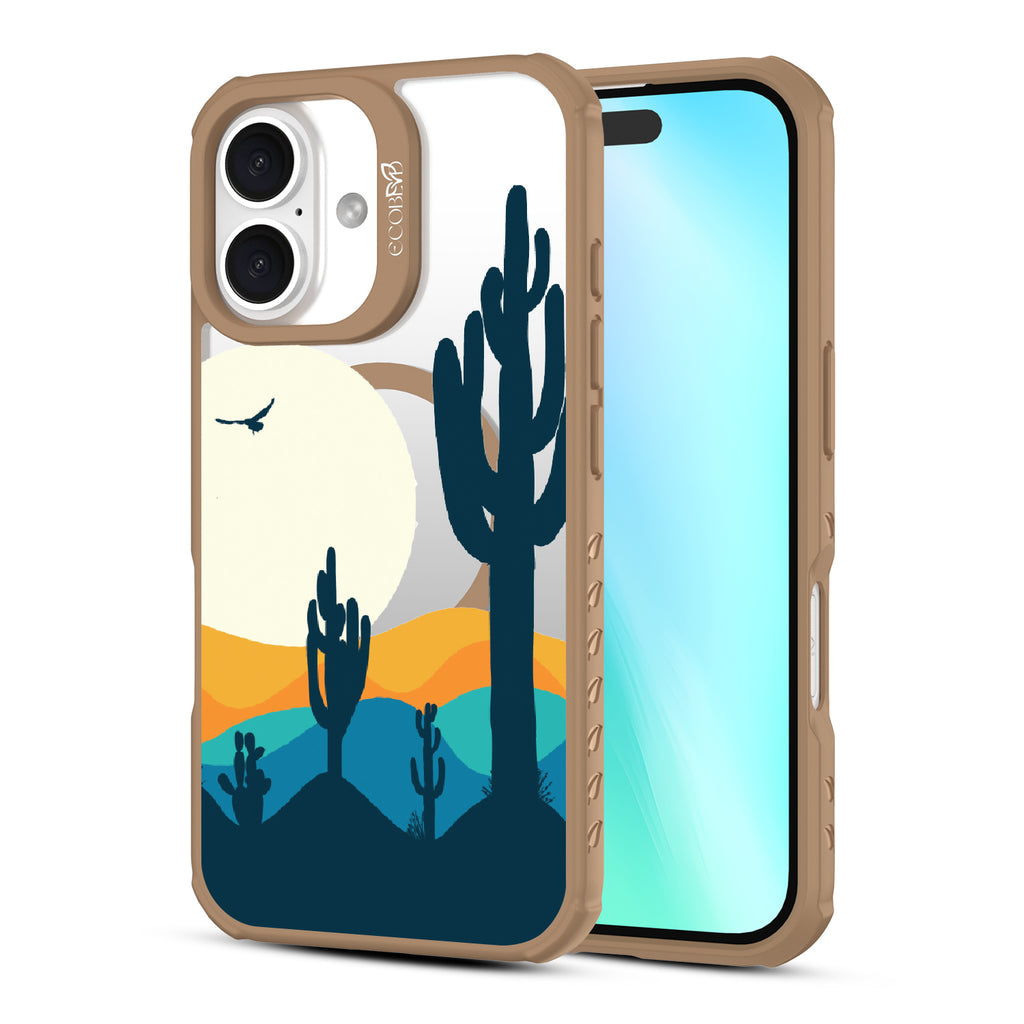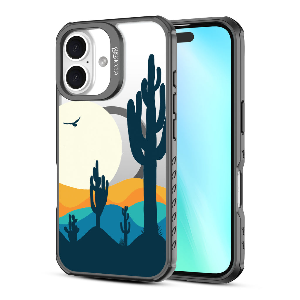 Get lost in the Desert Daze with this design on our Revive clear iPhone 16 phone case, where the vast beauty of the desert comes to life. It's a homage to those golden hours when the sun dips low, and the world glows with an otherworldly light, captured right on your phone.