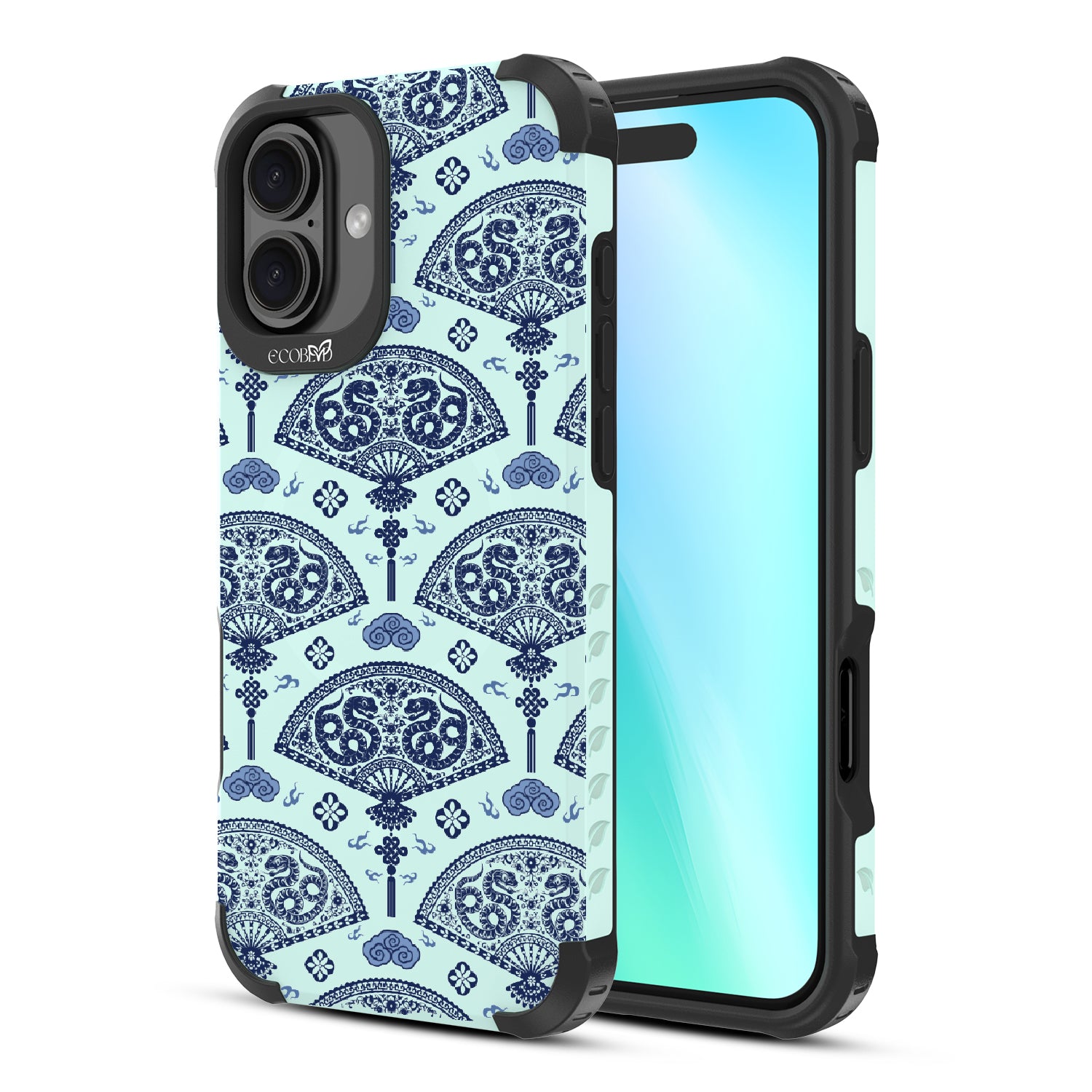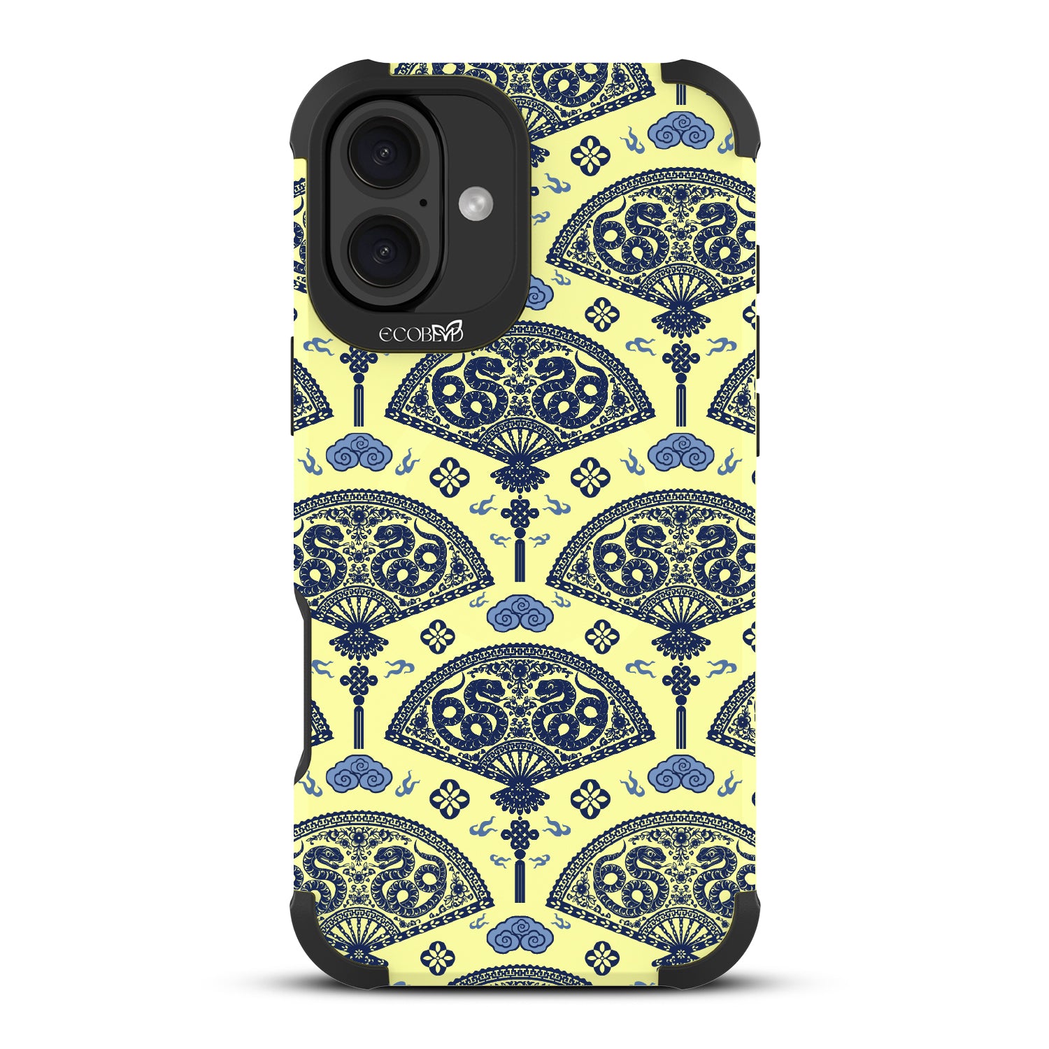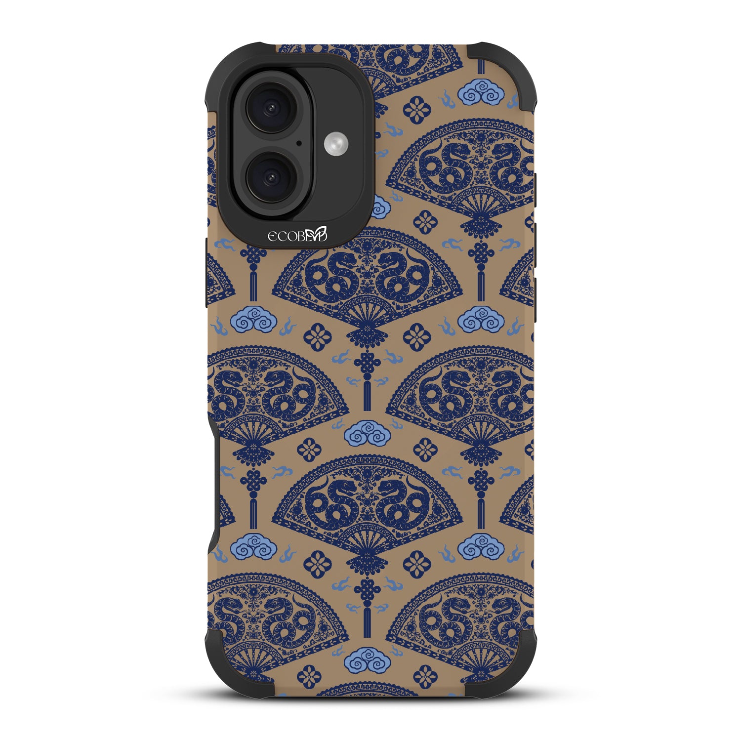 Let the winds of good fortune blow your way with the Fanning Fortune design on our Reforge rugged iPhone 16 Plus phone case. Golden serpents coil through beautifully detailed fans, a symbol of protection and prosperity for the Year of the Snake. The blue and yellow hues reflect the harmony between calmness and vitality, setting the tone for a year filled with new opportunities and growth.