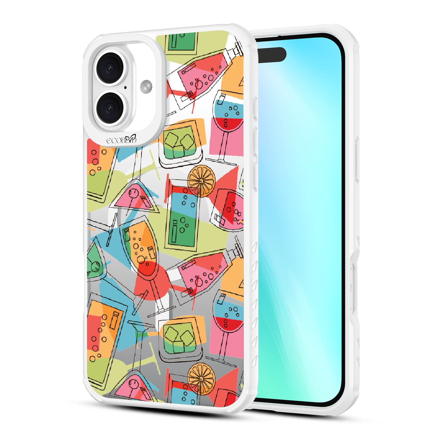 It's always party time with the 5 O'Clock Somewhere design on our Revive clear iPhone 16 Plus phone case. This lively design serves up a vibrant concoction of martini, cocktail, and other lively drinks, capturing the summertime spirit. Whenever and wherever you are, let loose, relax, and kick back. It's time to raise a glass, toast to good times, and make your phone the life of the party!