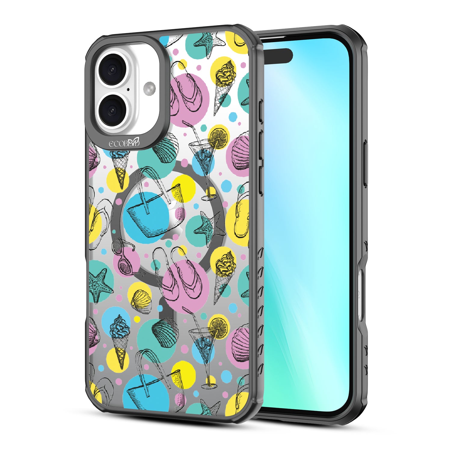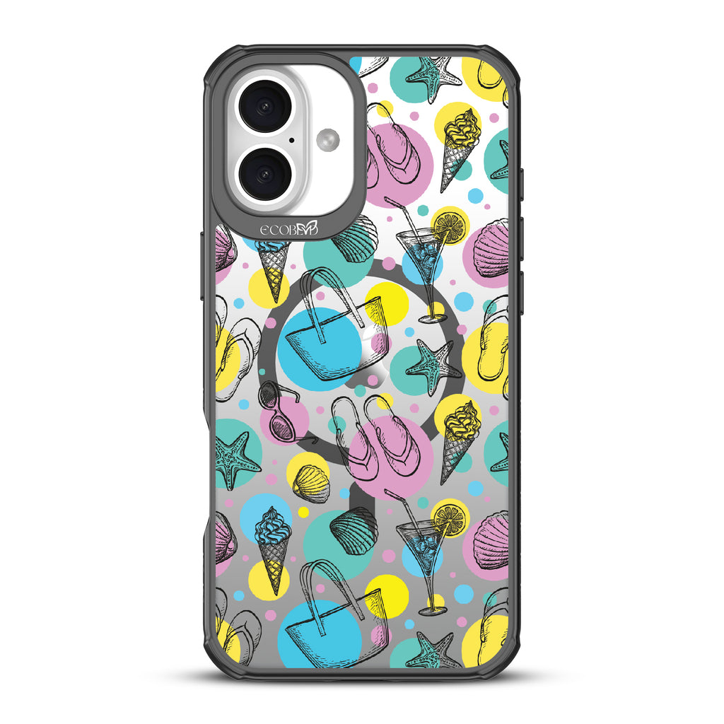 Beach Please, it's time to turn up the heat and bring your summer swagger to the forefront with this beach-ready design on our Revive clear iPhone 16 Plus phone case design is a bold fusion of beach essentials, featuring a trendy beach tote that holds your Beach Please-ure, a cocktail glass brimming with tropical vibes and a hint of cheekiness, seashells that carry the whispers of unforgettable beach moments, sunglasses that say "I'm too fabulous for the shade," mouthwatering ice cream that satisfies your sweet and sassy cravings, starfish ready to be your beachside companions, and flip flops that strut with an attitude that demands attention.
