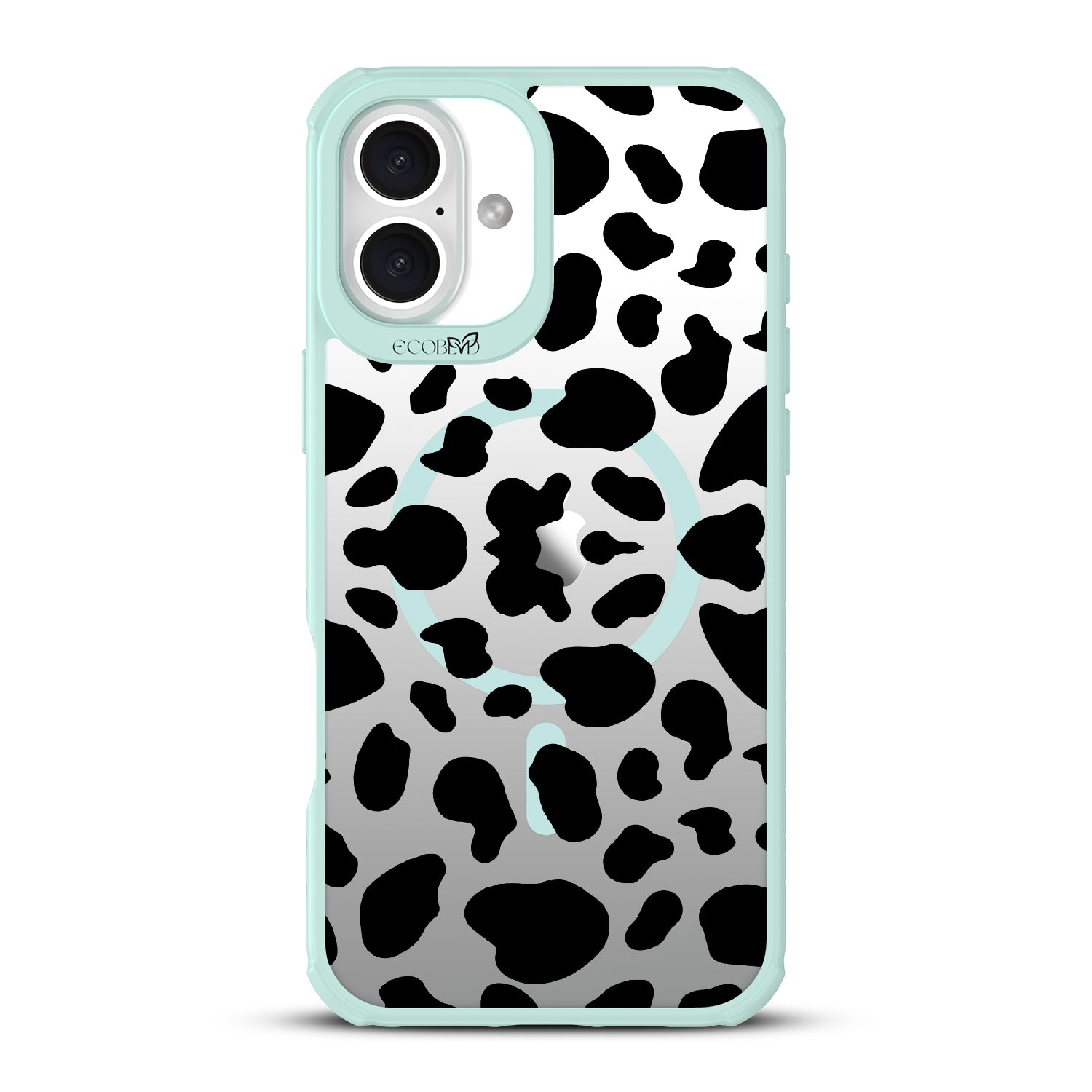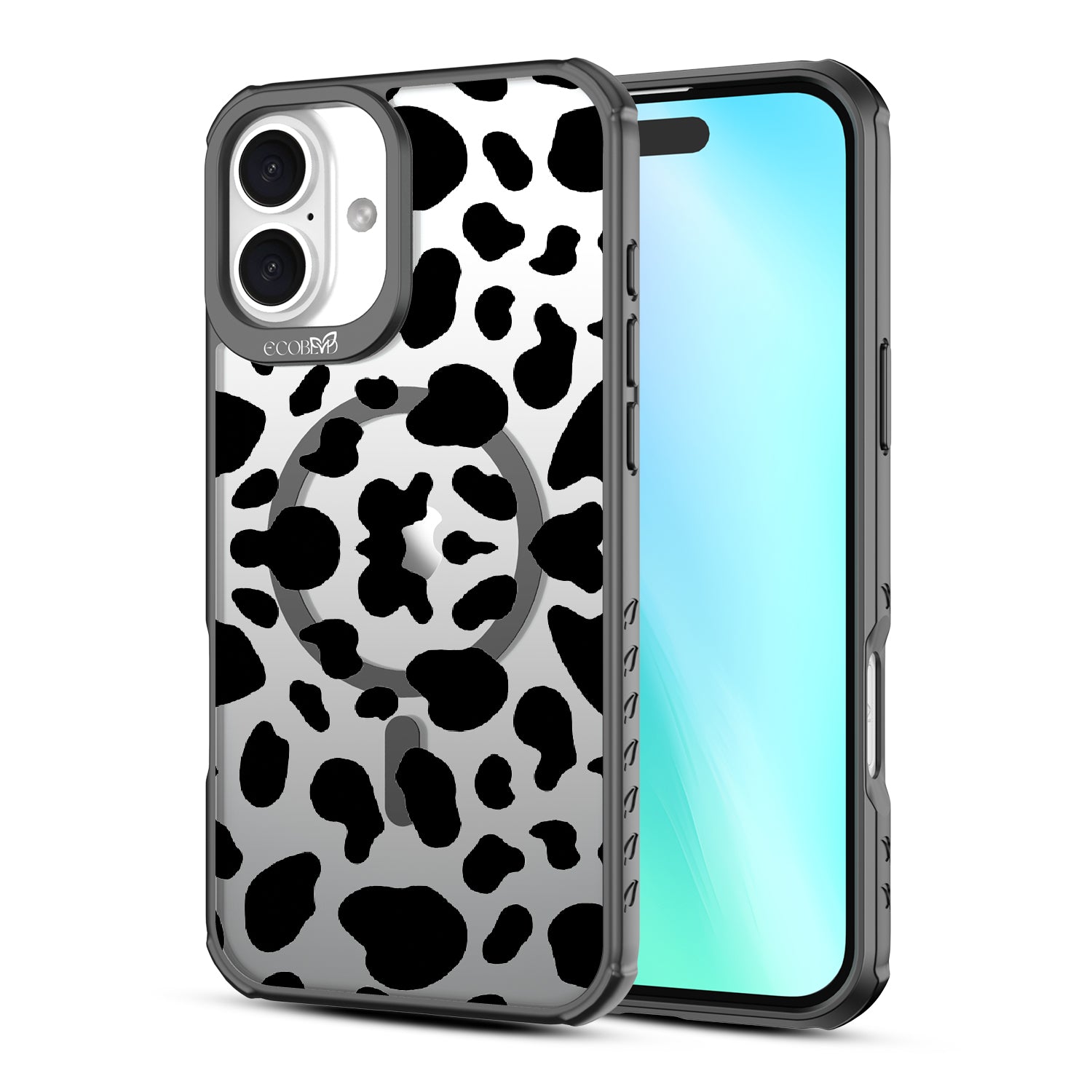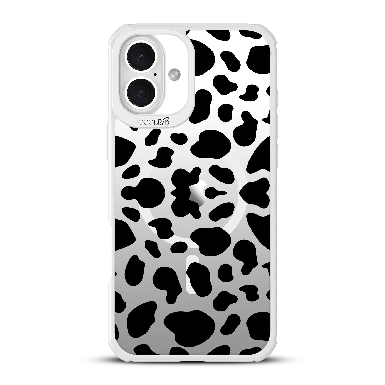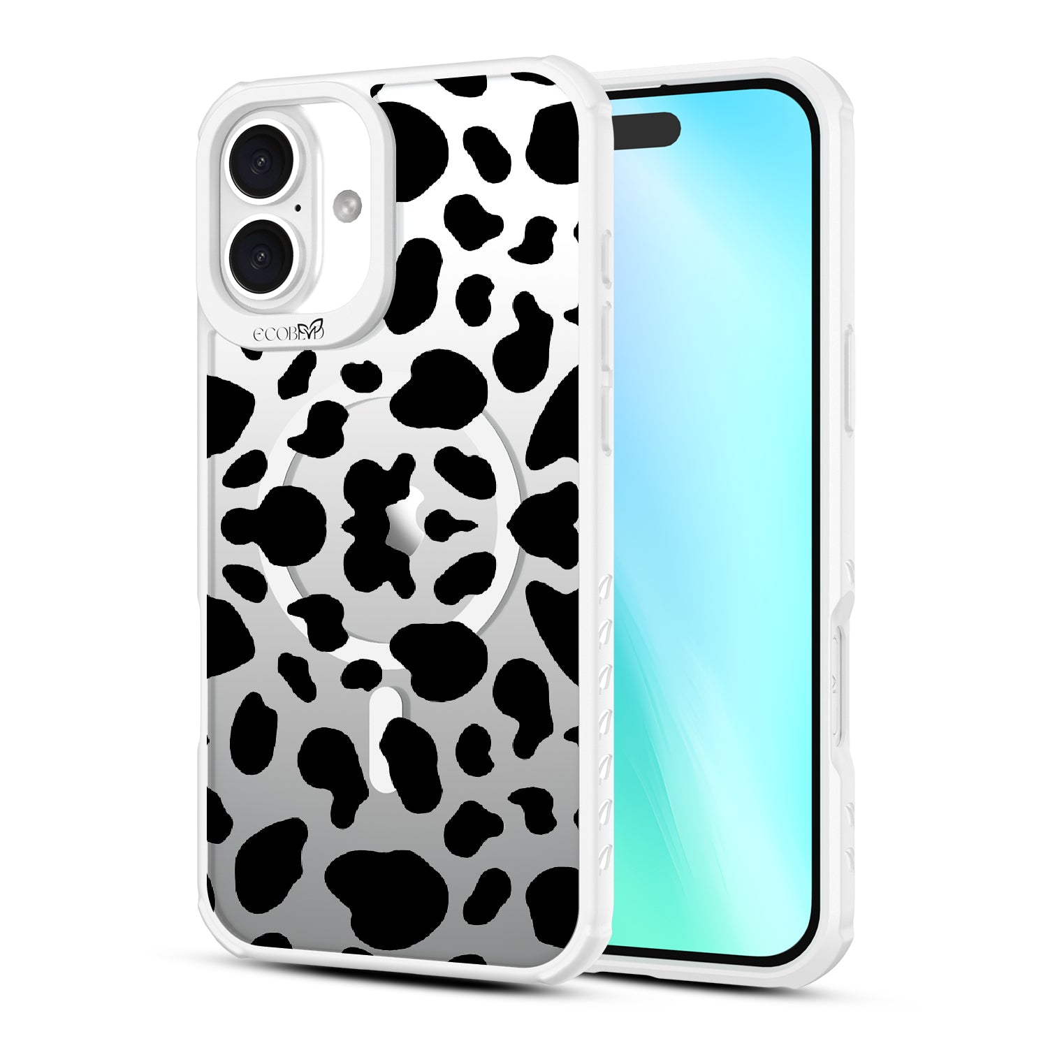 Make your phone easy to spot with this "moooognificient" Cow Print design on our Revive clear iPhone 16 PlusĀ phone case.