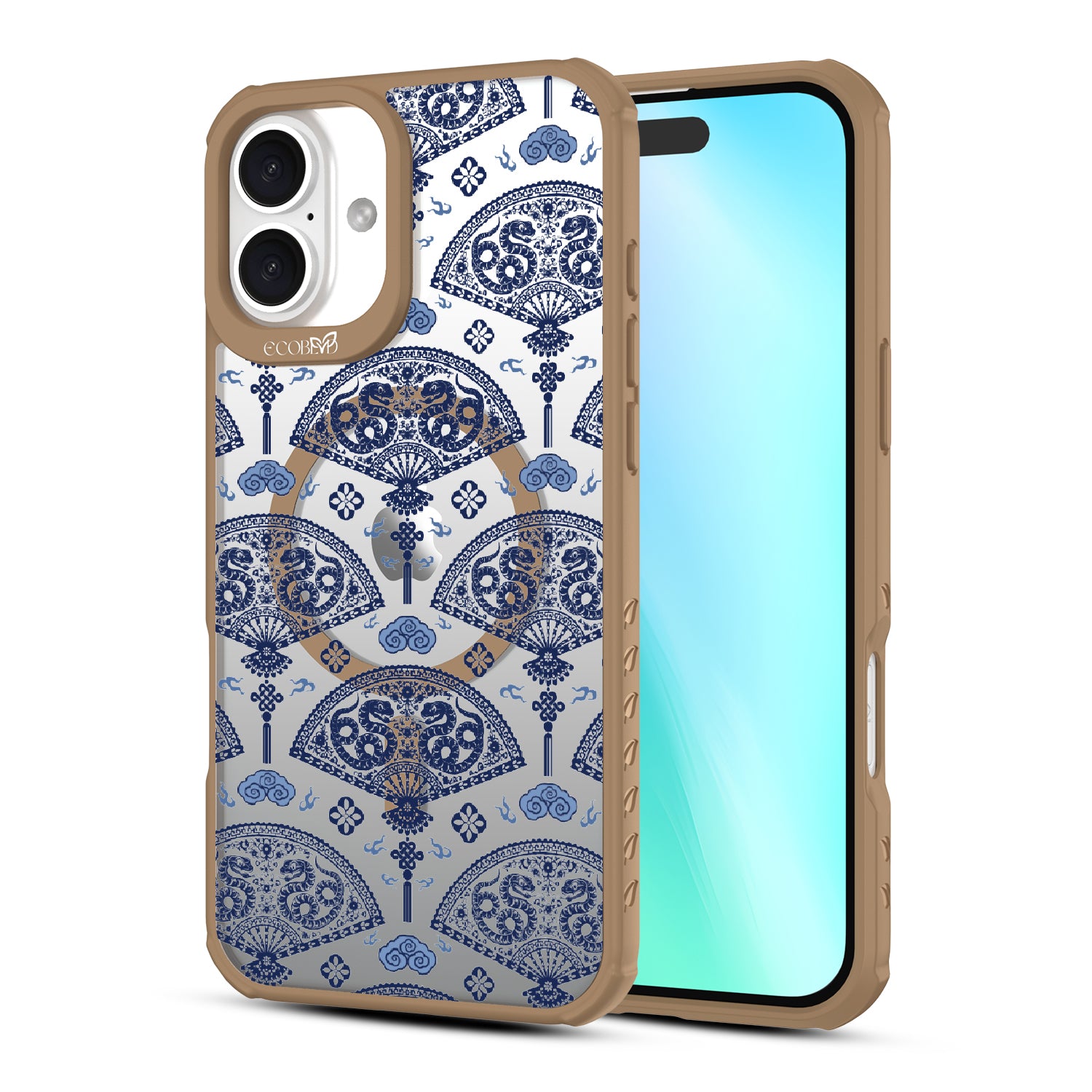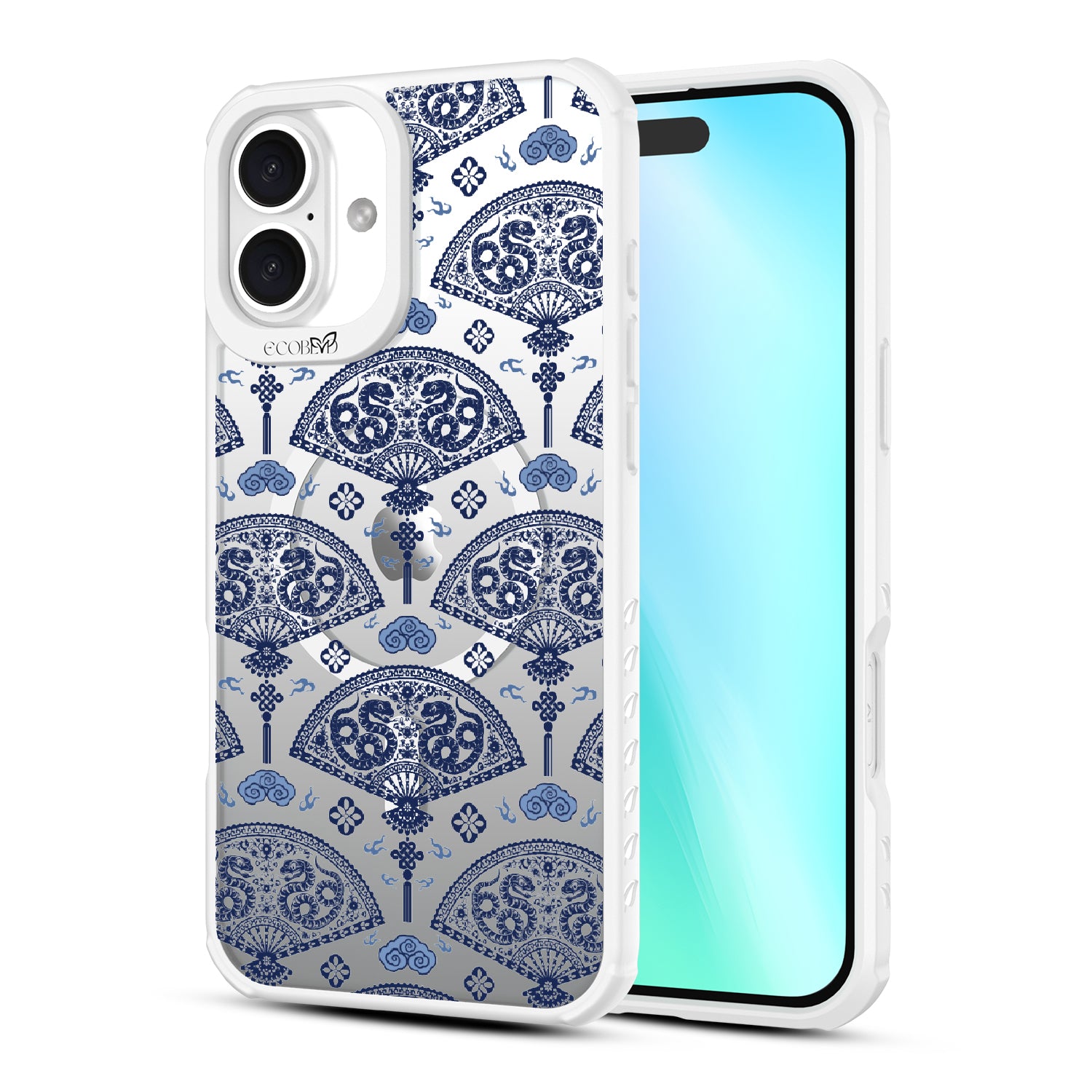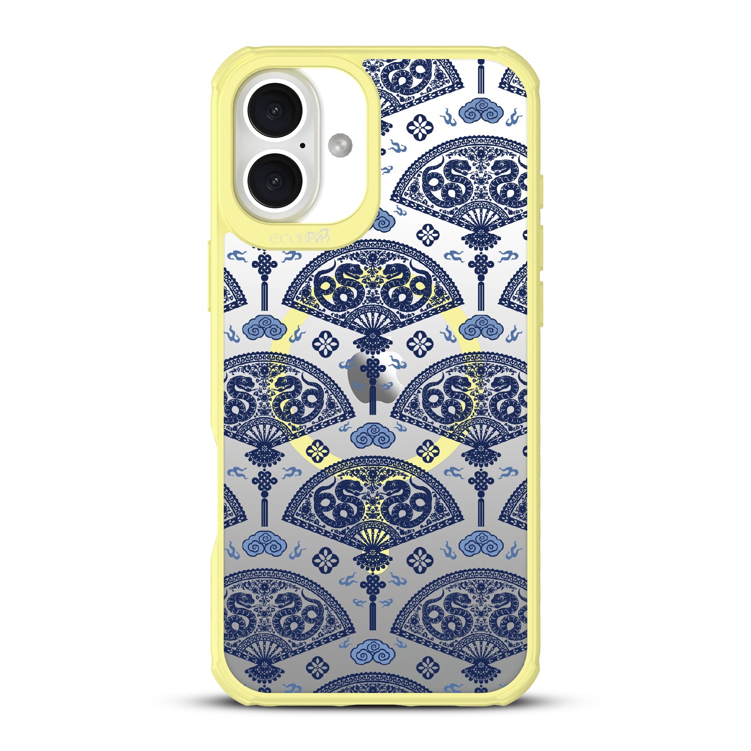 Let the winds of good fortune blow your way with the Fanning Fortune design on our Revive clear iPhone 16 Plus phone case. Golden serpents coil through beautifully detailed fans, a symbol of protection and prosperity for the Year of the Snake. The blue and yellow hues reflect the harmony between calmness and vitality, setting the tone for a year filled with new opportunities and growth.