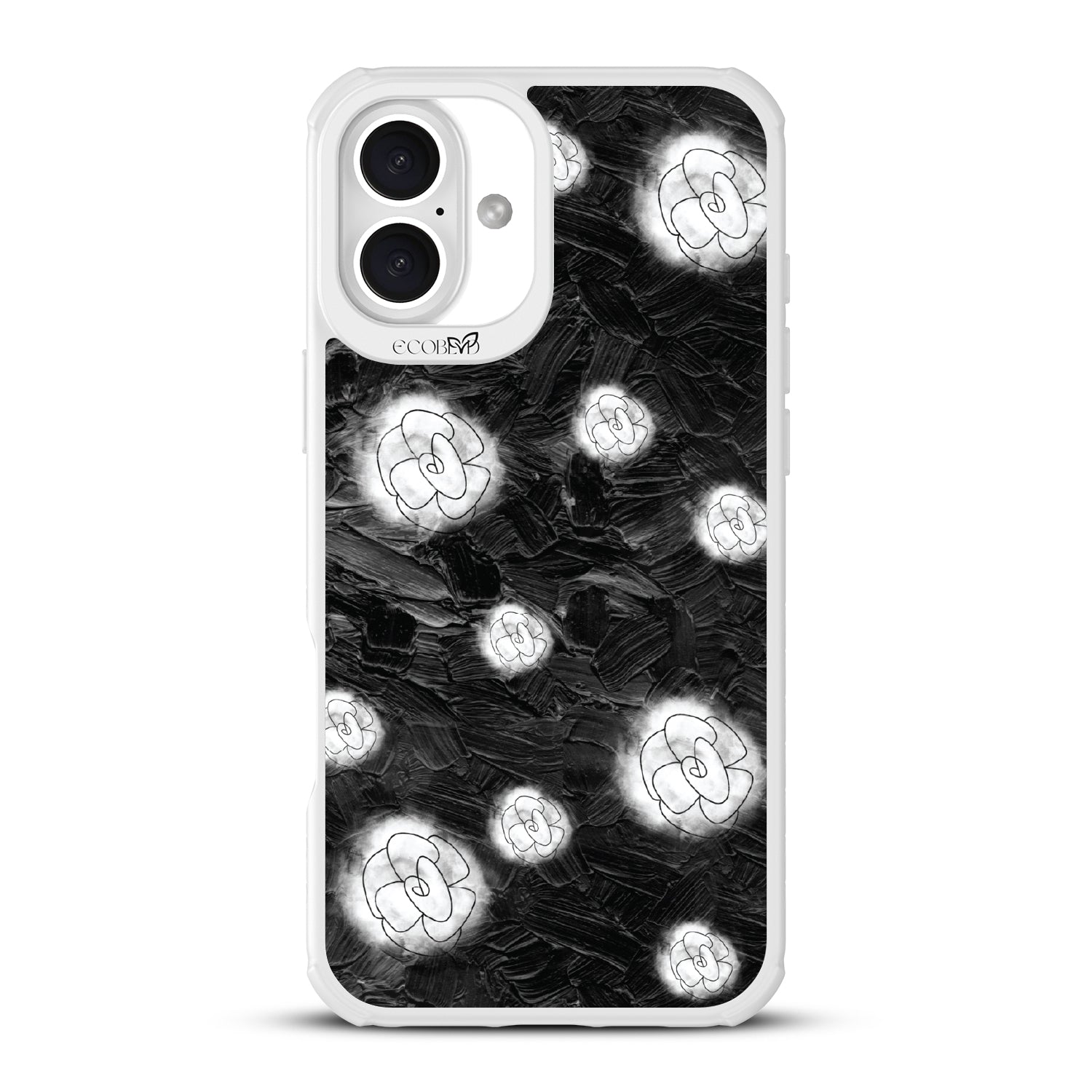 Like a secret garden hidden on your phone and a secret look enhancement, the Floral Fantasia design on our Revive clear iPhone 16 Plus phone case whispers sweet nothings with every glance at its flourishing line art flowers and black marble backdrop.