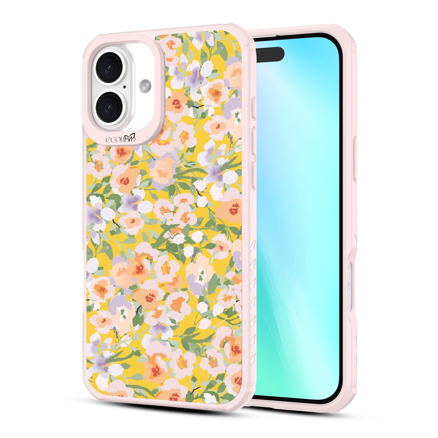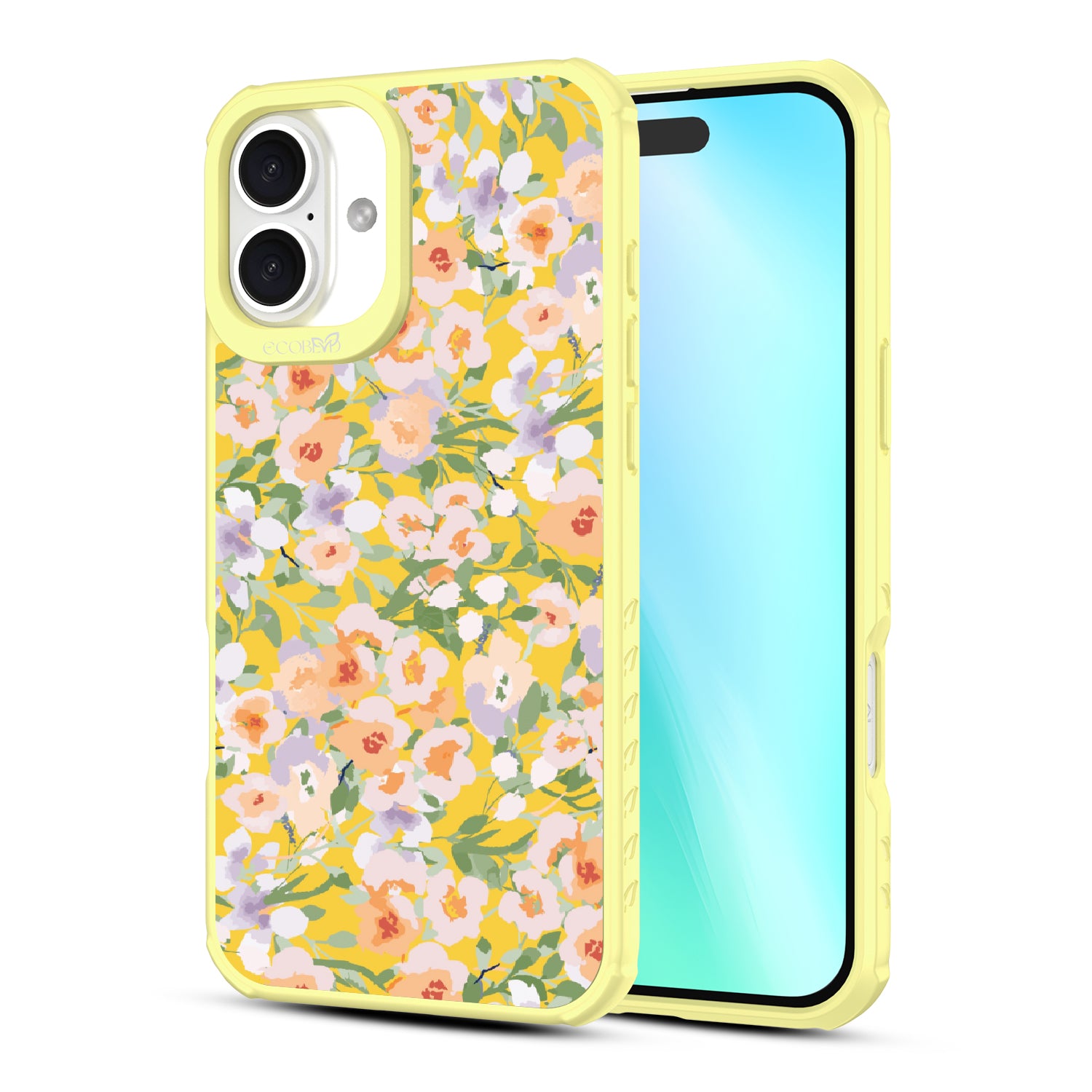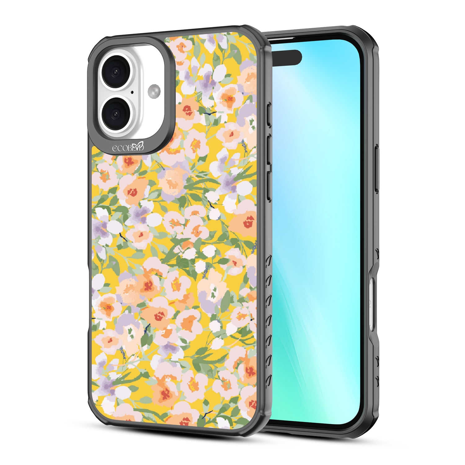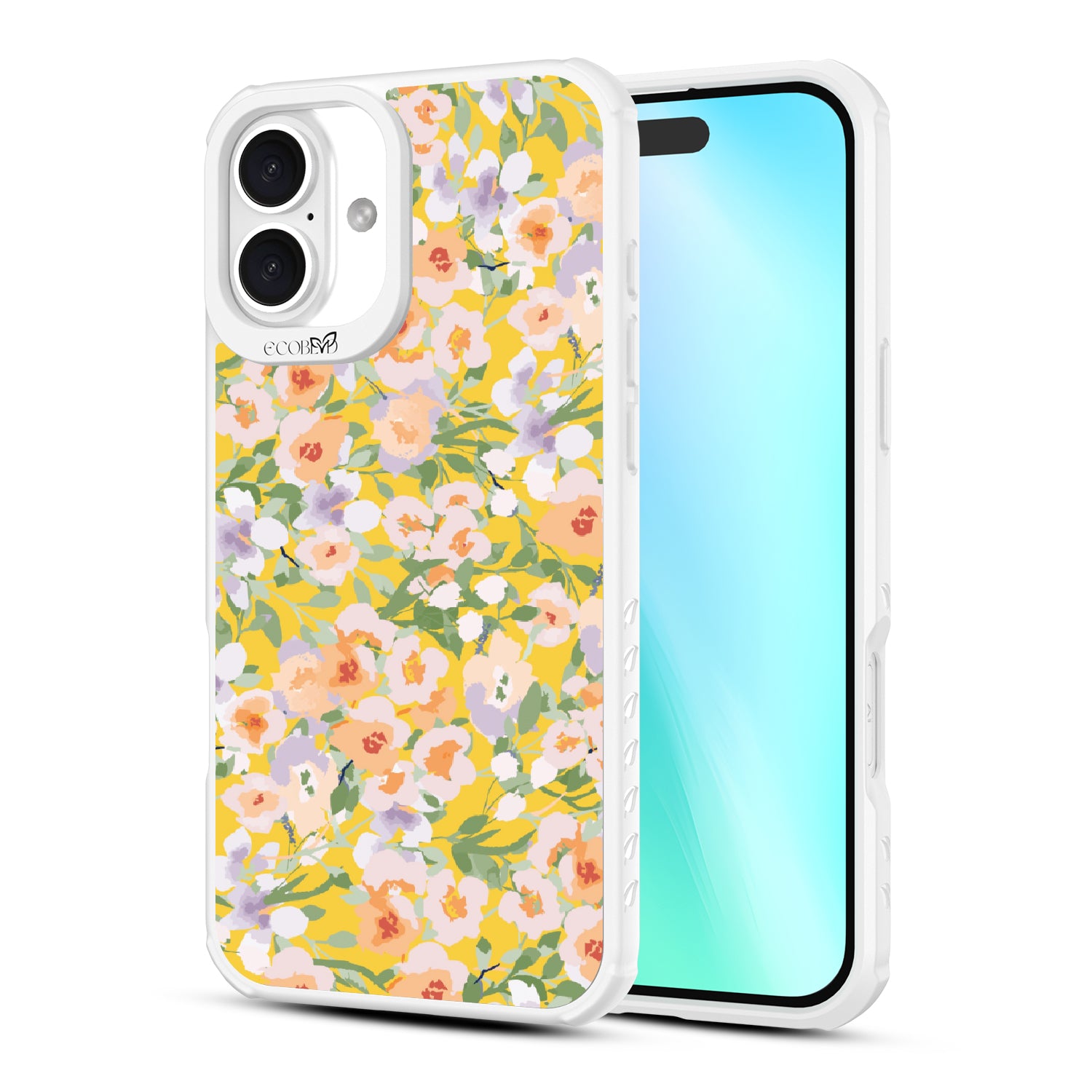 The sun paints with light, and flowers carry the glow. The Flourish & Shine design on our Revive clear iPhone 16 Plus case blends sweeping yellows, peachy petals, and airy greens in soft, expressive brushstrokes. A composition that radiates warmth, movement, and the quiet brilliance of nature’s palette.