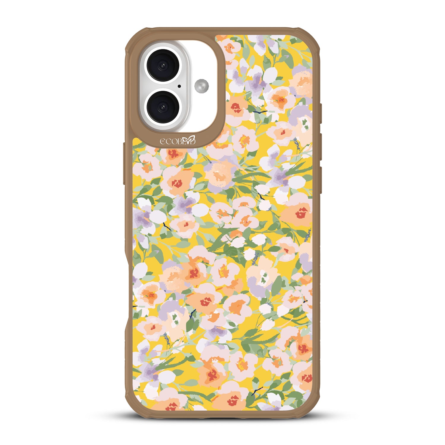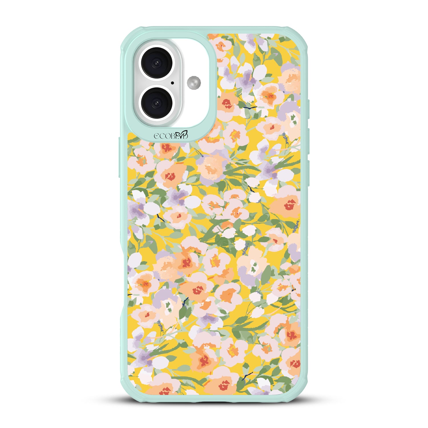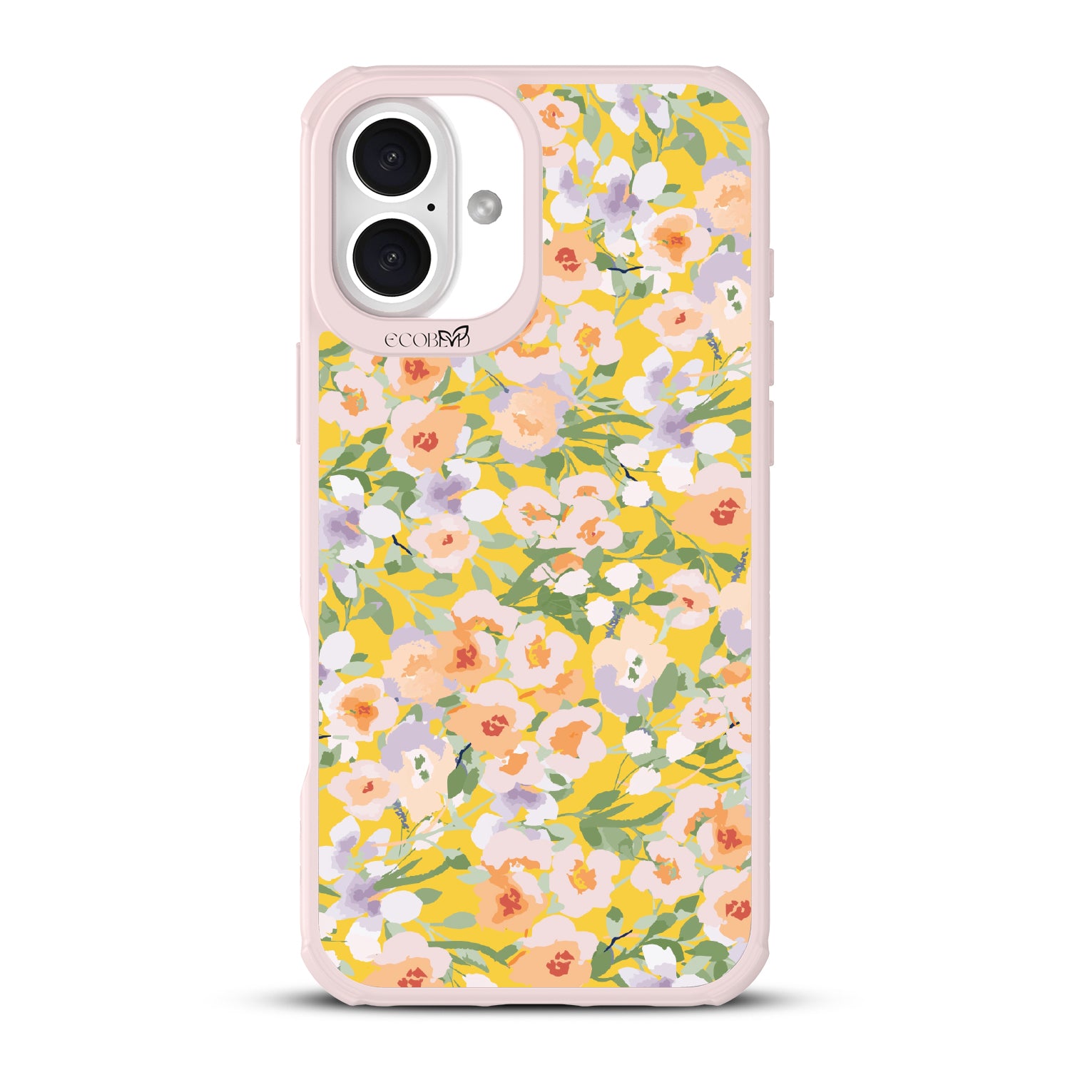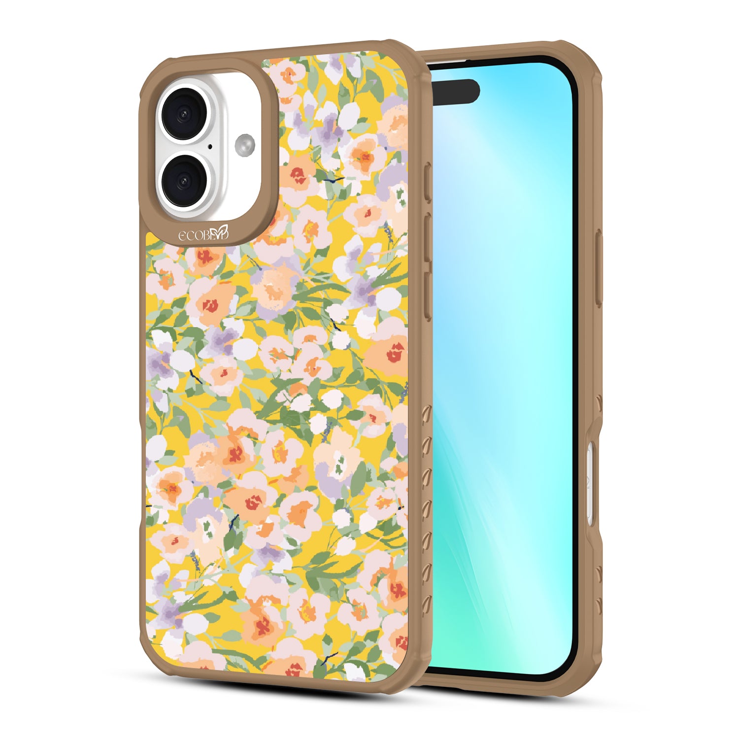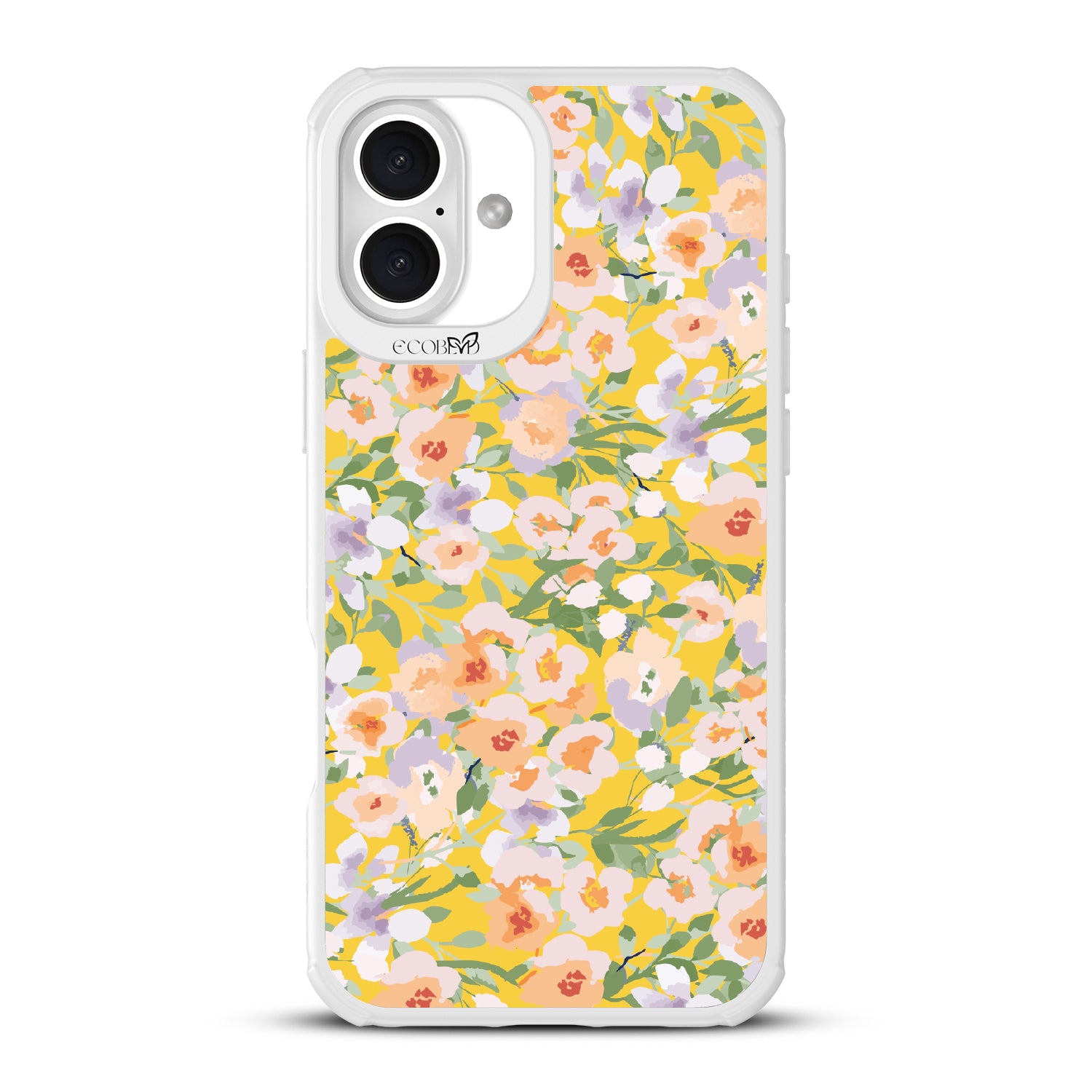 The sun paints with light, and flowers carry the glow. The Flourish & Shine design on our Revive clear iPhone 16 Plus case blends sweeping yellows, peachy petals, and airy greens in soft, expressive brushstrokes. A composition that radiates warmth, movement, and the quiet brilliance of nature’s palette.