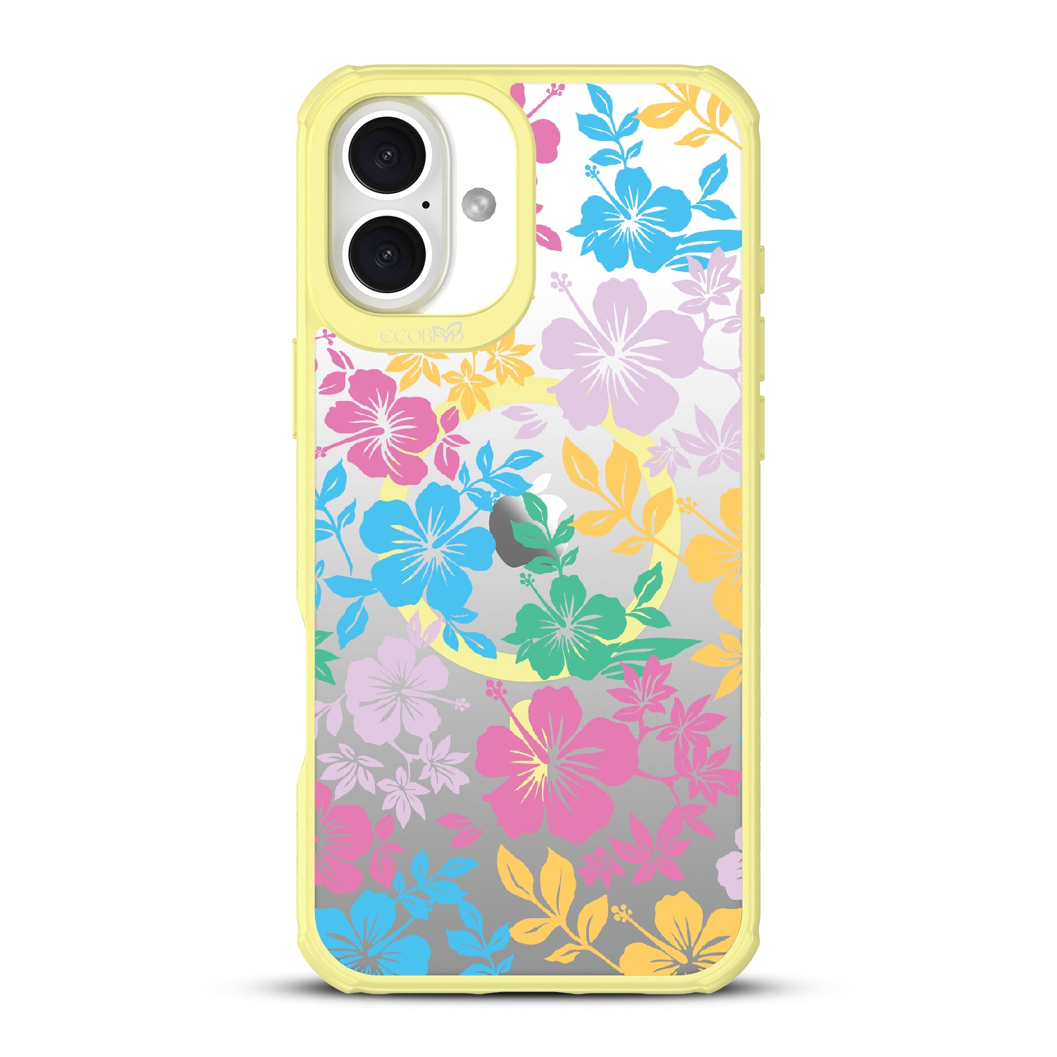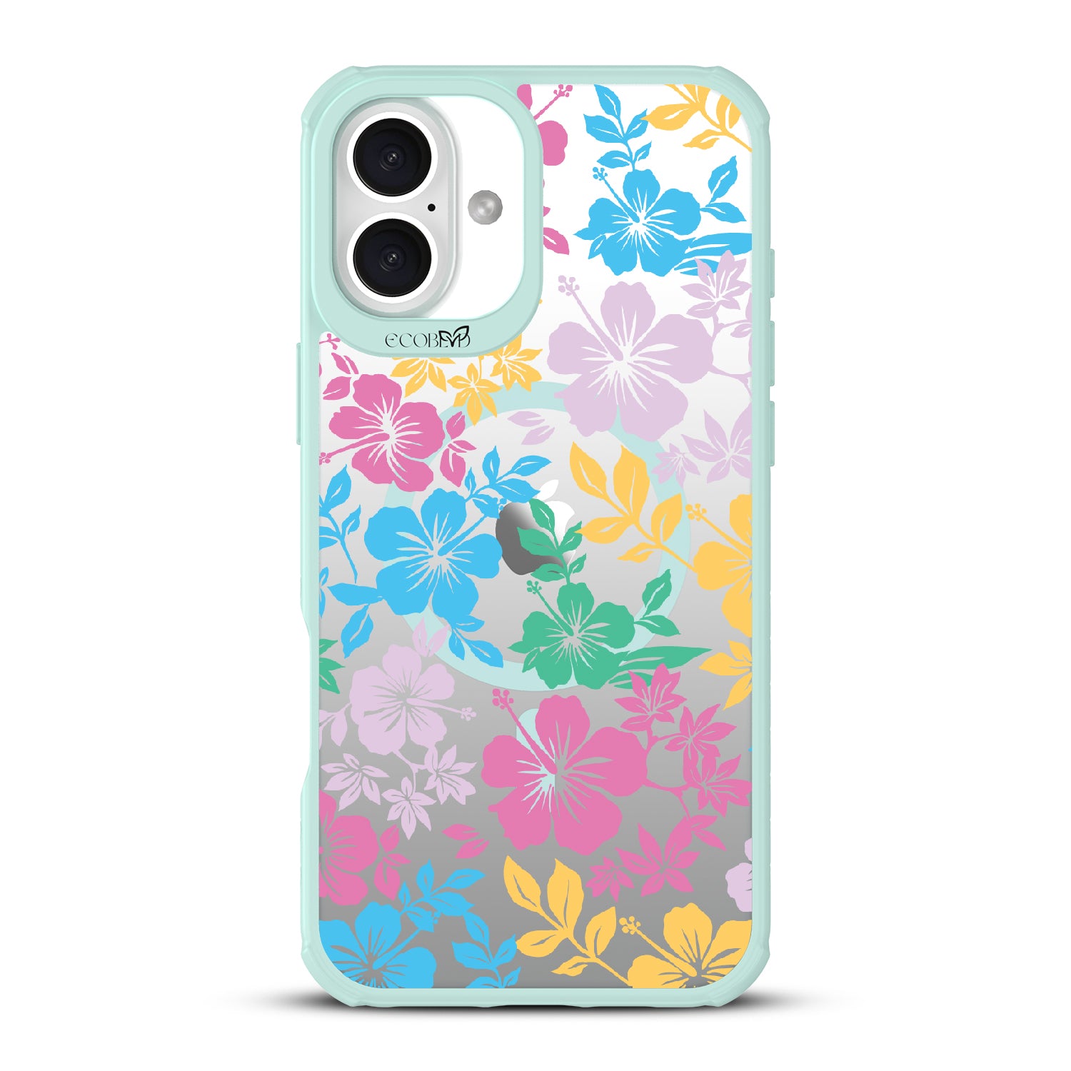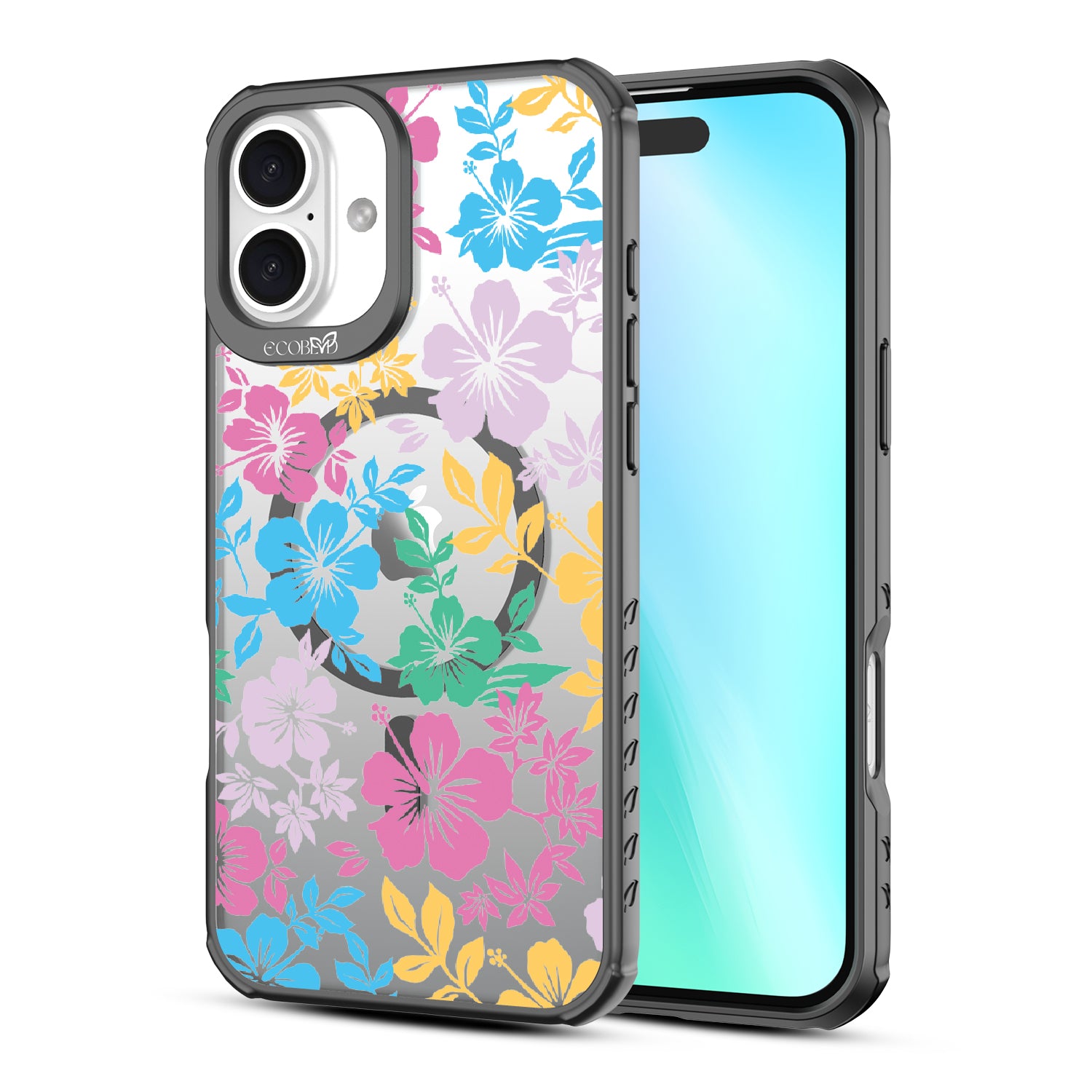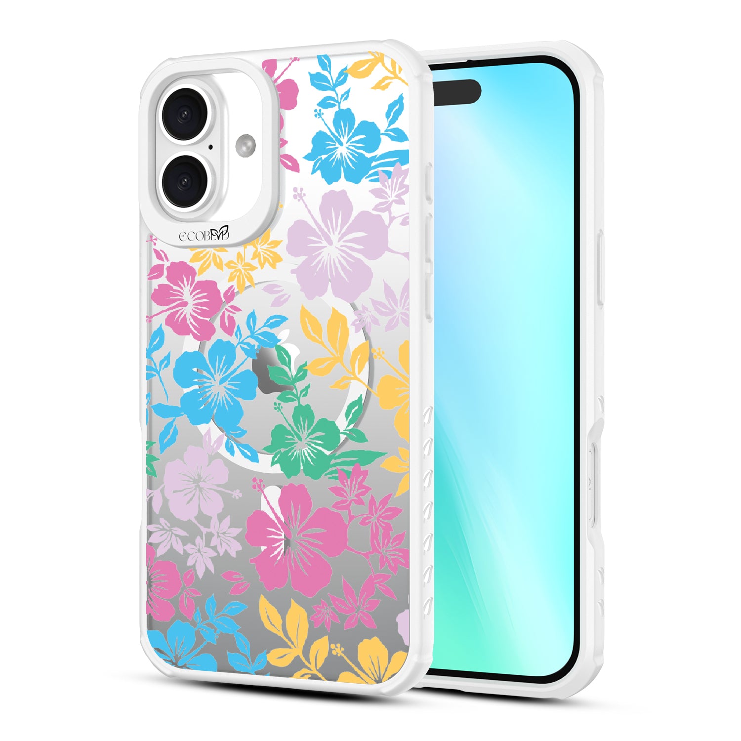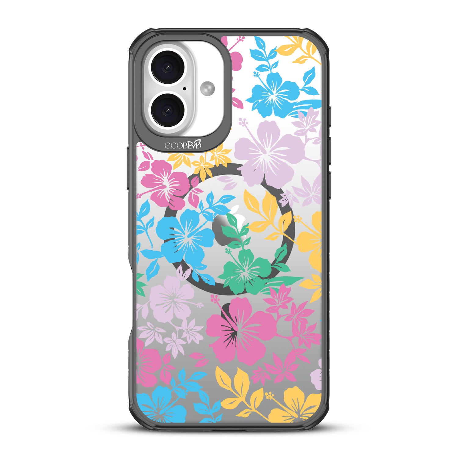 Experience the laid-back vibes of the tropics with our Lei'd Back design on our Revive clear iPhone 16 Plus phone case, a colorful homage to the vibrant beauty of Hawaiian leis. his design showcases an array of tropical hibiscus flowers in yellow, pink, green, and blue, reminiscent of traditional lei arrangements. Enjoy the relaxed lifestyle of an island as you escape to the spirit of aloha.