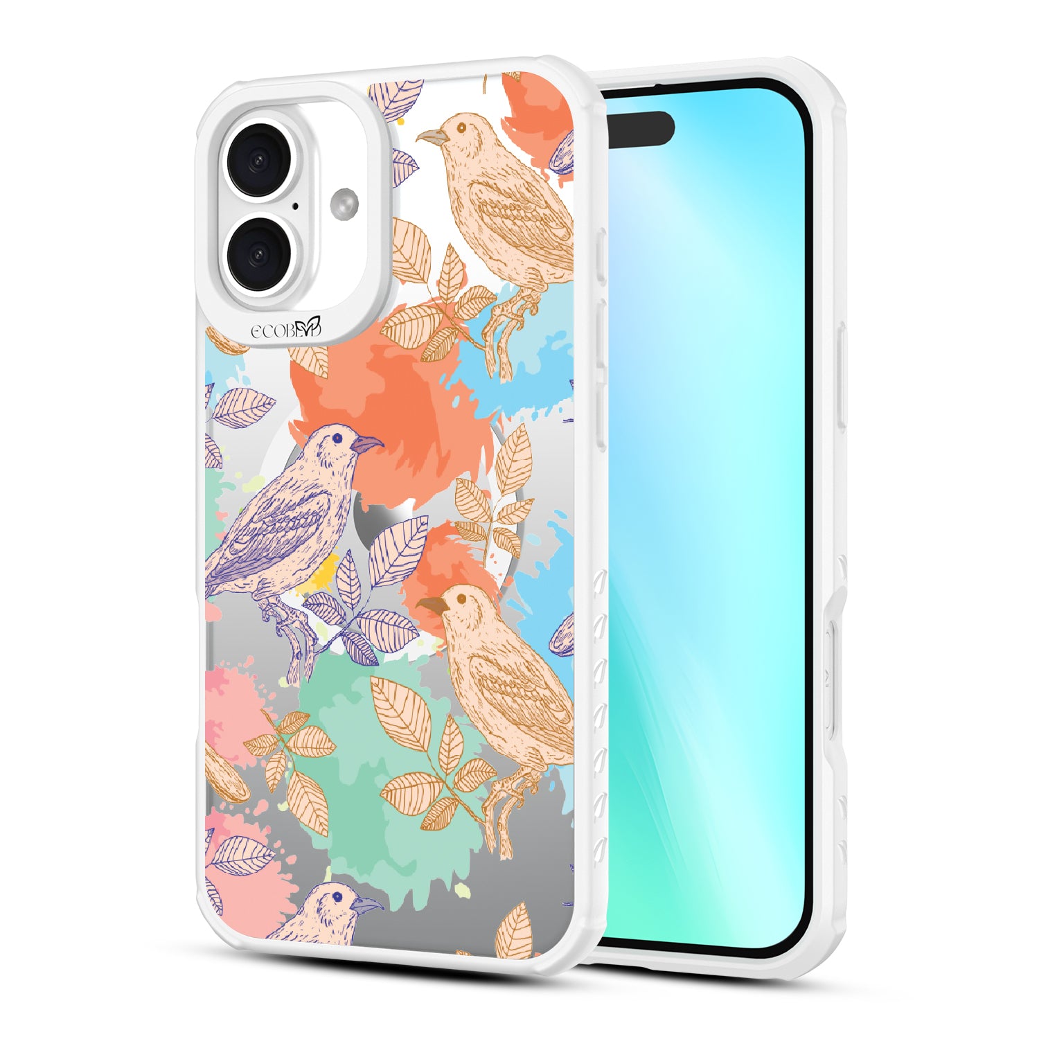 Get ready to soar to new heights with the Perch Perfect design for the Revive clear iPhone 16 Plus phone case. This feathered symphony will have you tweeting in delight as colorful birds perch on branches, creating a harmonious composition that hits all the right notes. The Perch Perfect design is like a symphony for your phone, hitting all the right notes with its playful bursts of color and intricate line art birds perched on a branch. Each bird adds its own unique melody to the song, creating a harmonious design that captures the essence of feeling wild and free. Let your phone be the conductor of this beautiful masterpiece with Perch Perfect.
