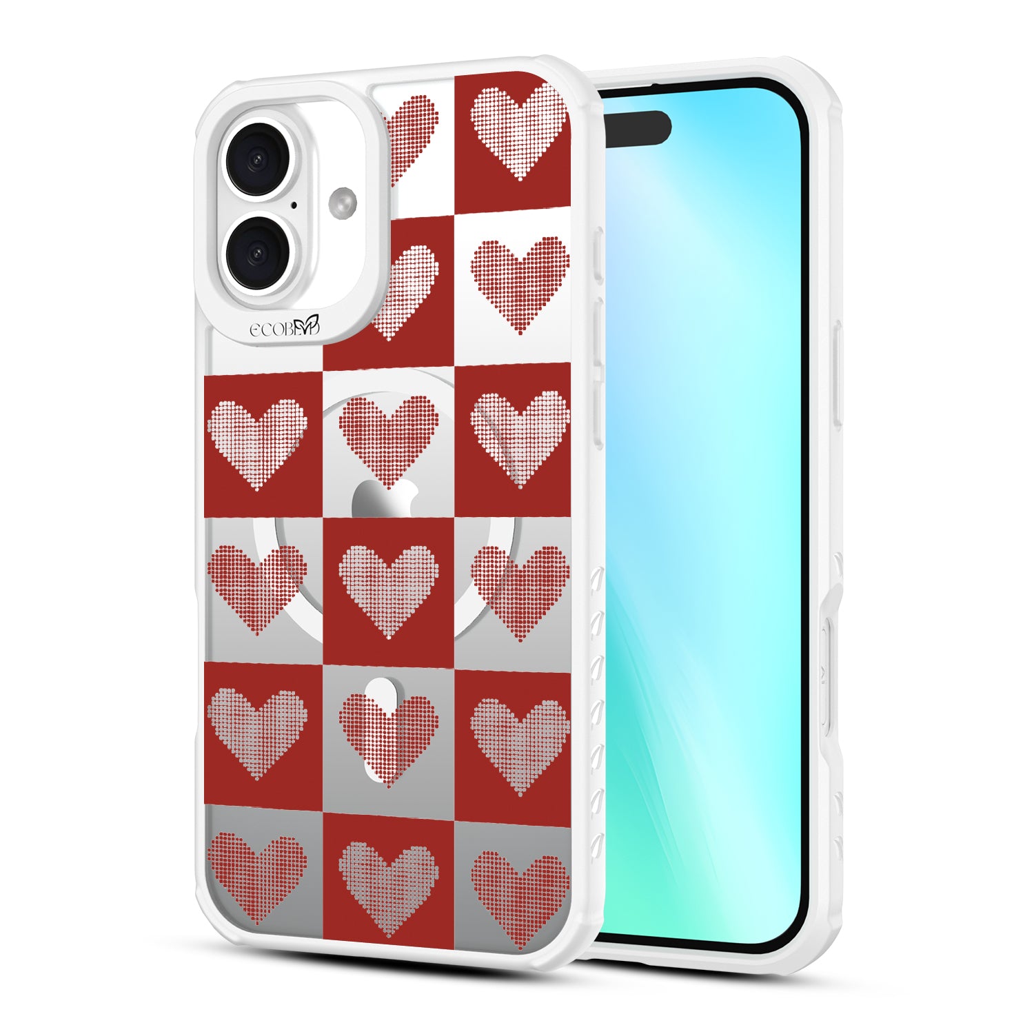 Soften up with the quilted hearts of the Quilty Pleasures design on our Revive clear iPhone 16 Plus phone case, lovingly stitched and crafted with a gingham plaid pattern and hearts sewn inside to give you a warm embrace every time you look at your phone.