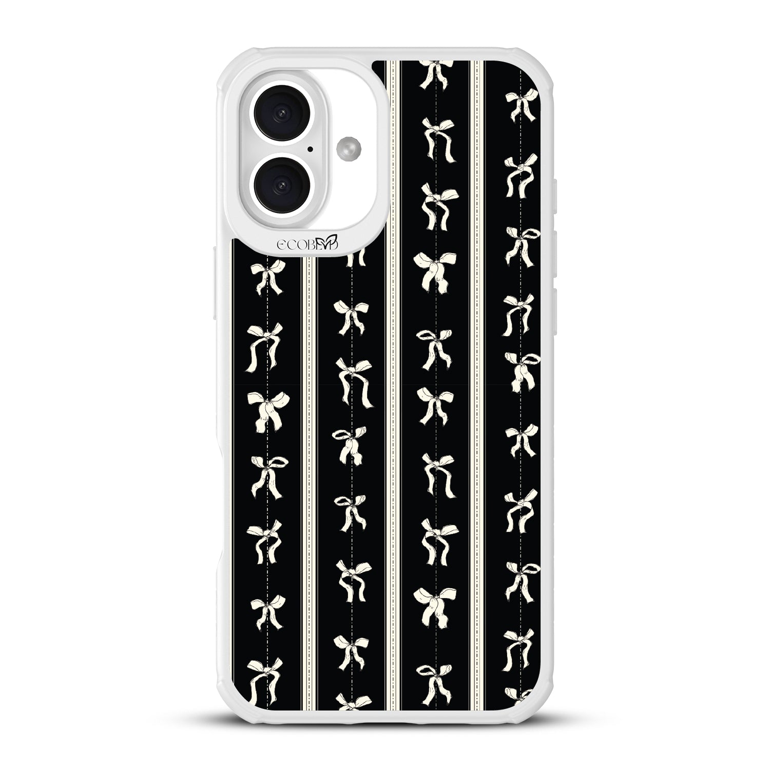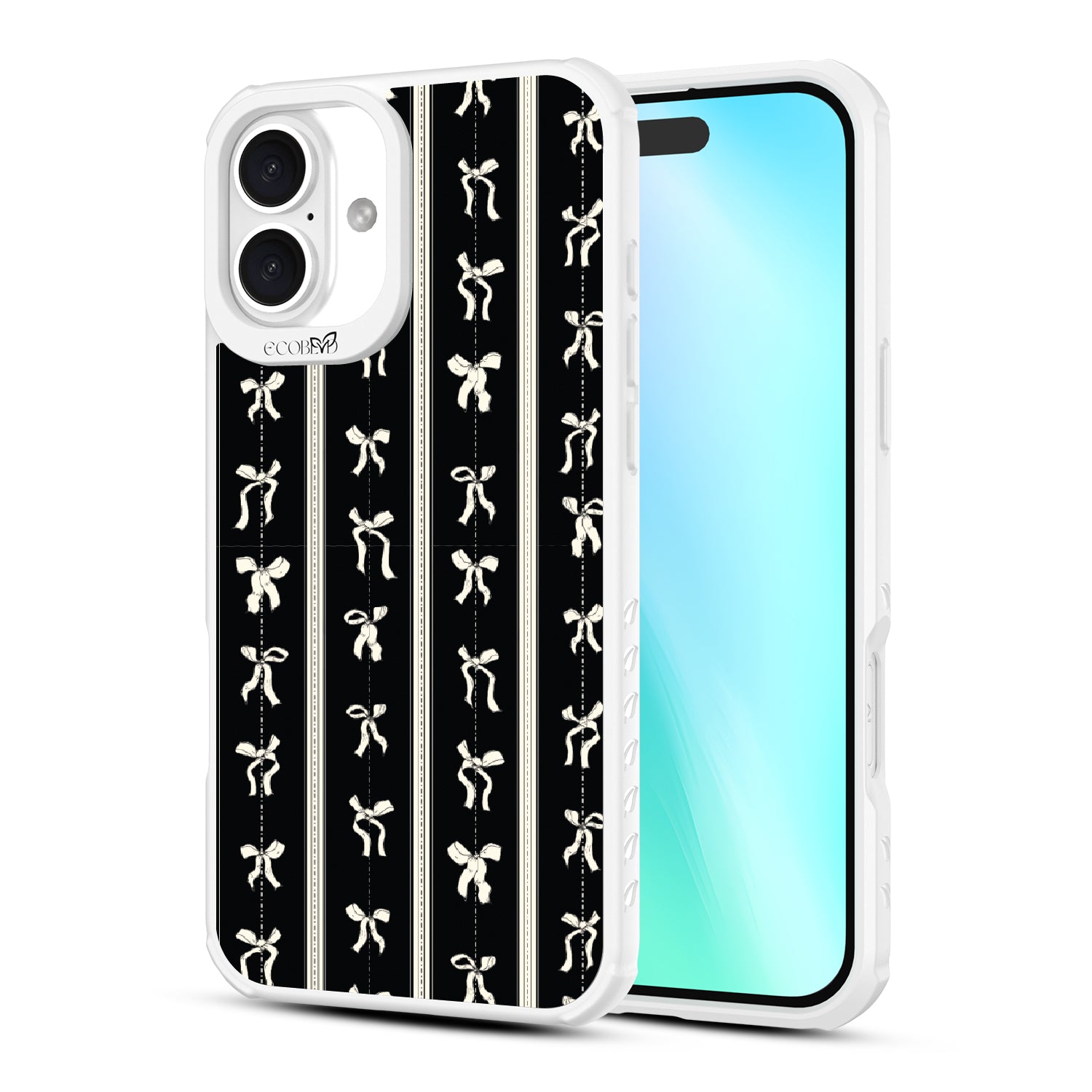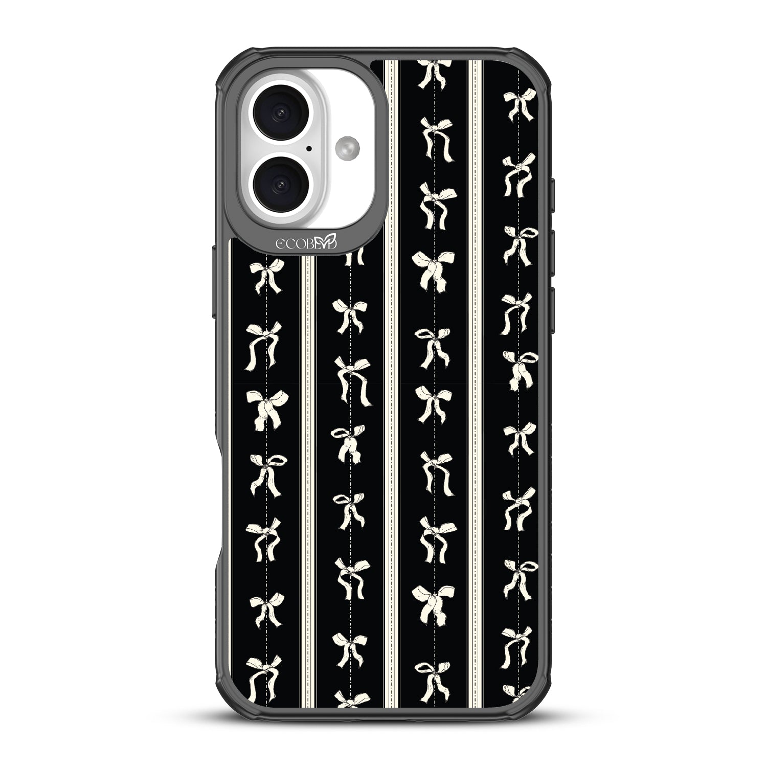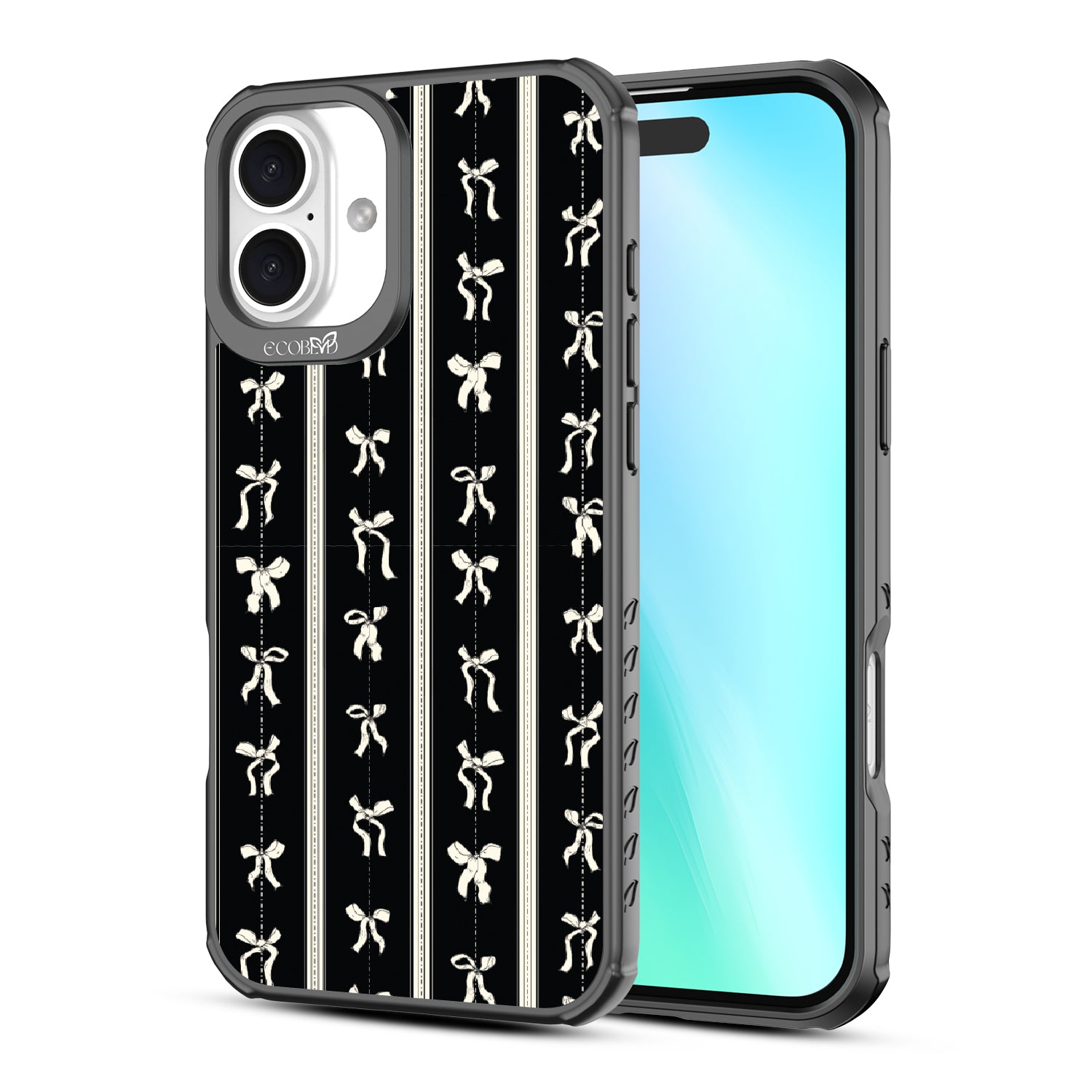 Twirl like no one¡¯s watching with the Ribbon Twirl design on our Revive clear iPhone 16 Plus phone case. Ribbons gracefully swirl on a sleek black lace backdrop, infusing your look with dainty sophistication. These twirling ribbons will make every step feel like a stylish dance.