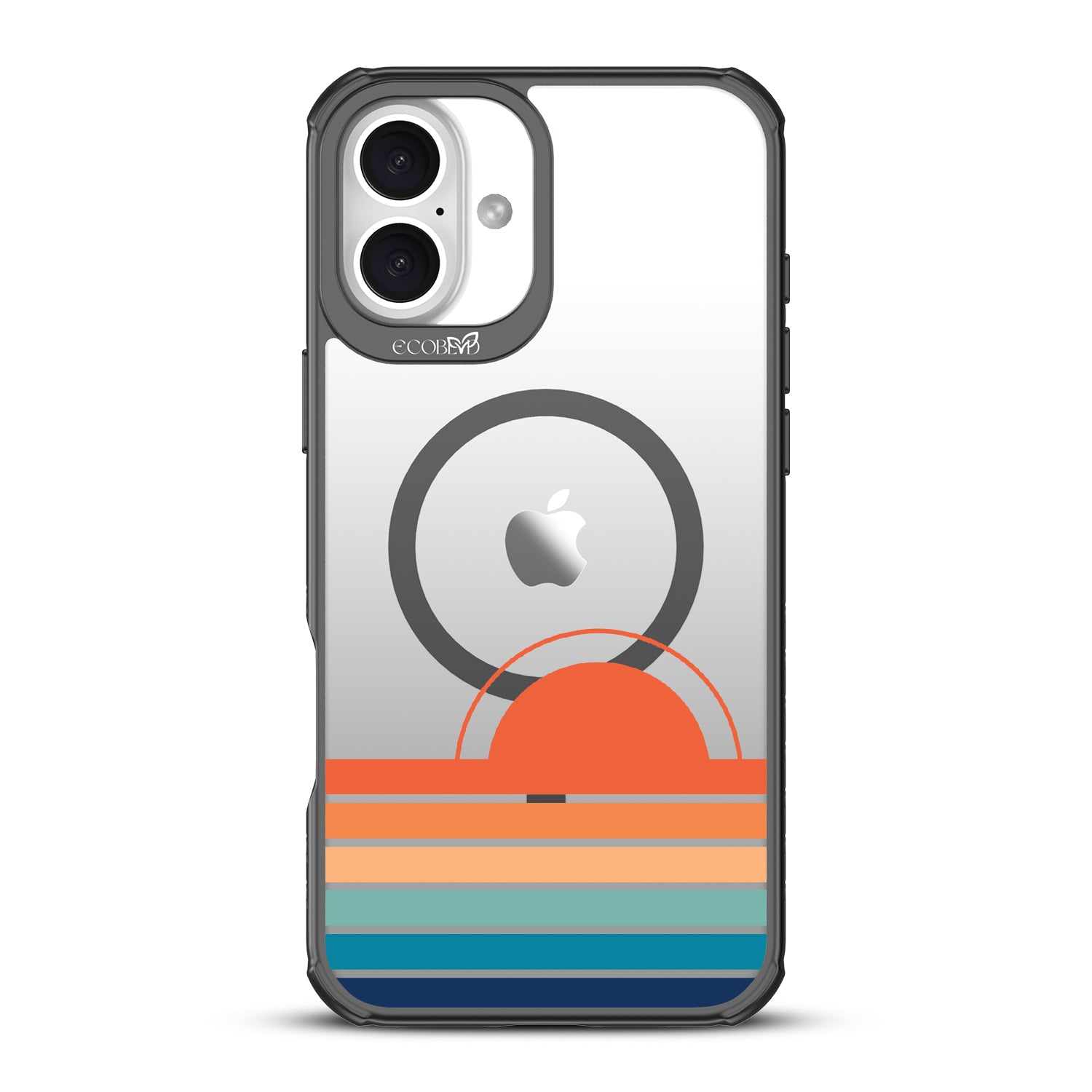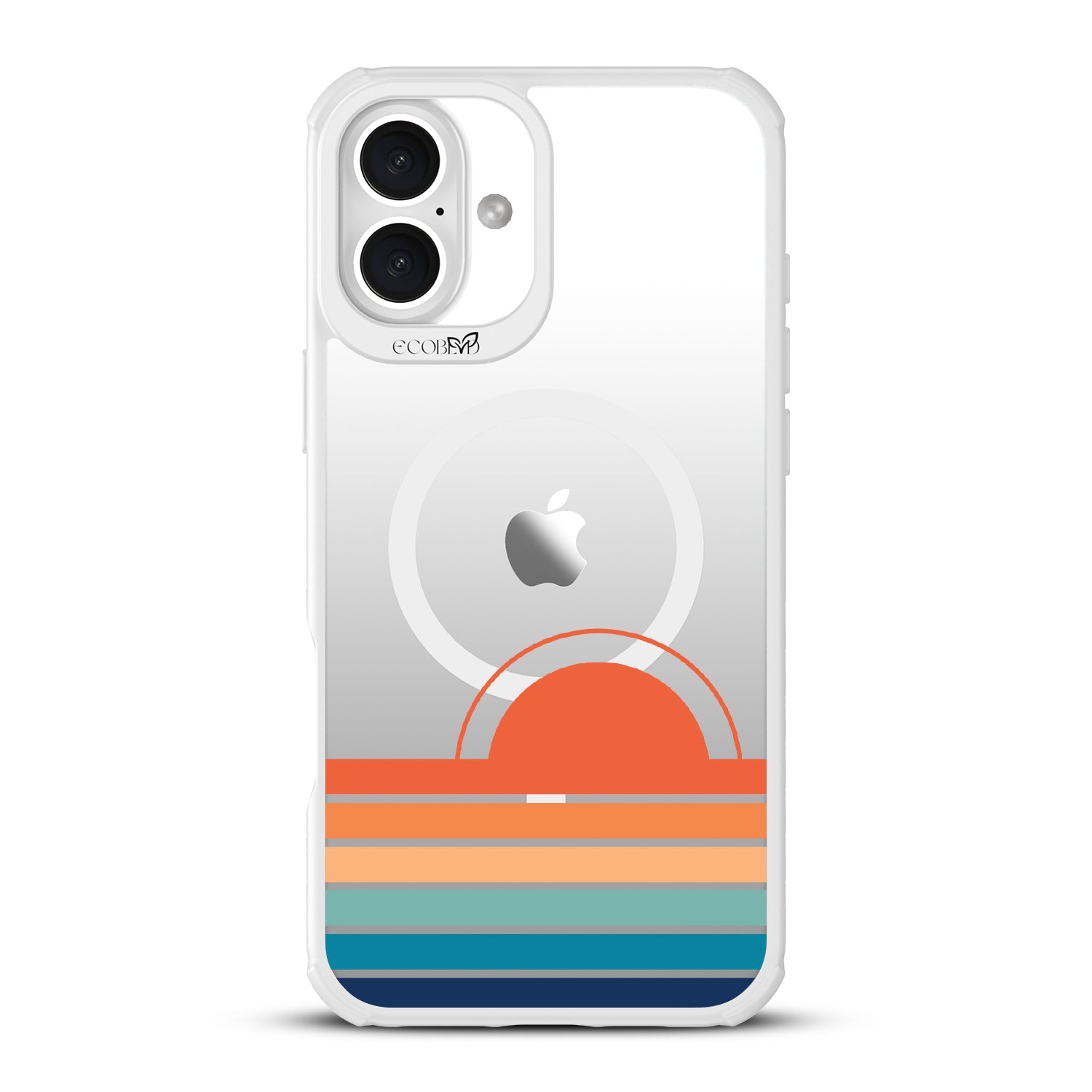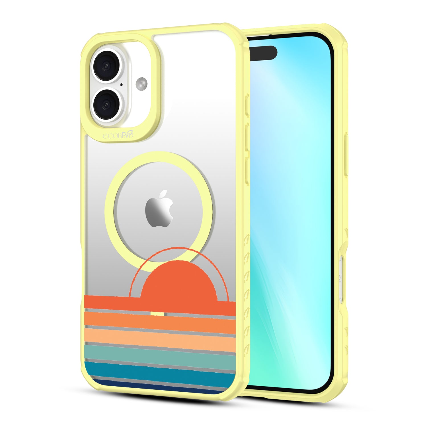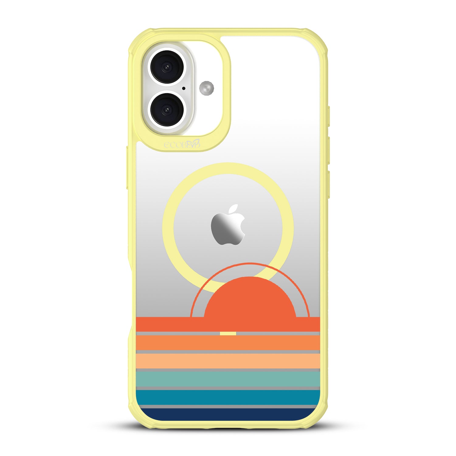 Even for those who aren't early birds, the Rise n' Shine design on our Revive clear iPhone 16 Plus phone case illuminates your phone with a stylishly sunny morning glow with beaming gradient rays.