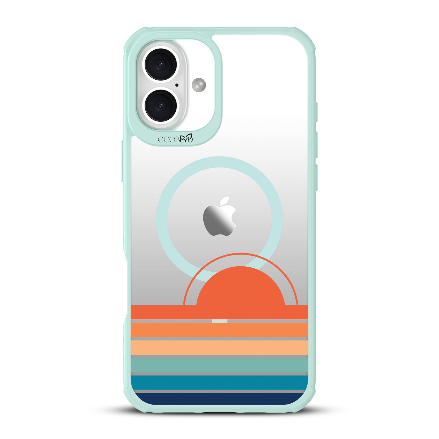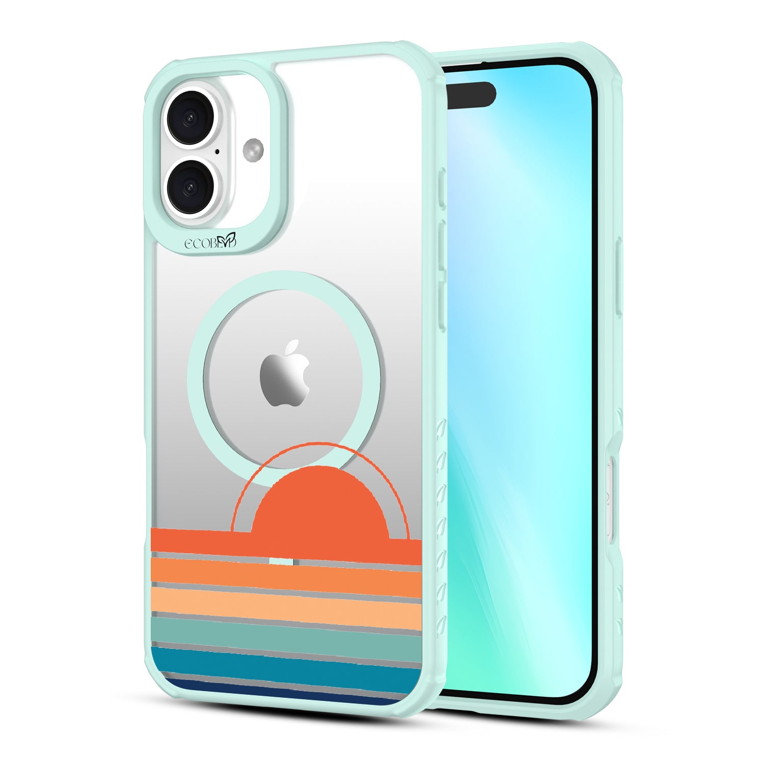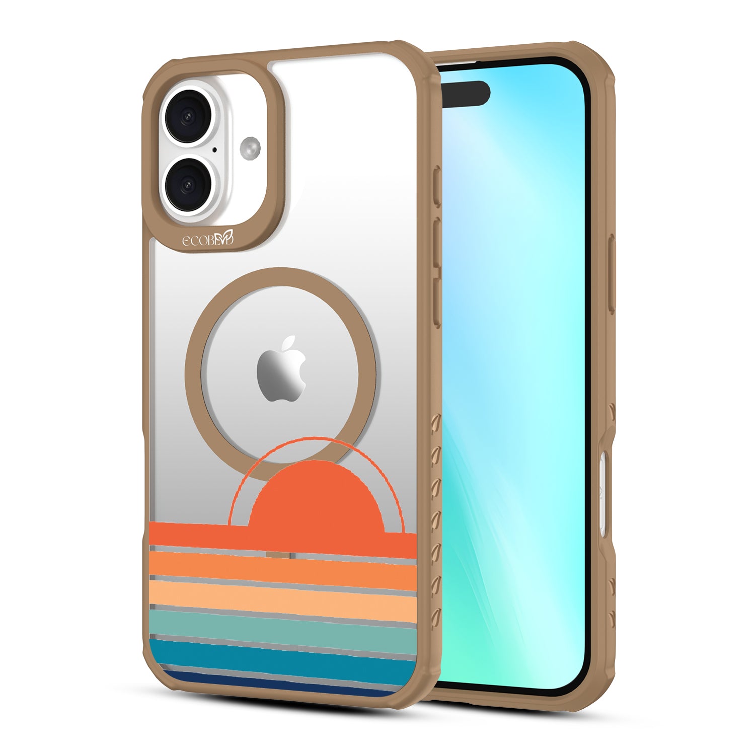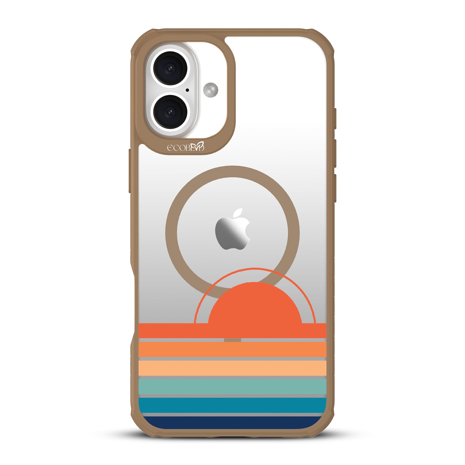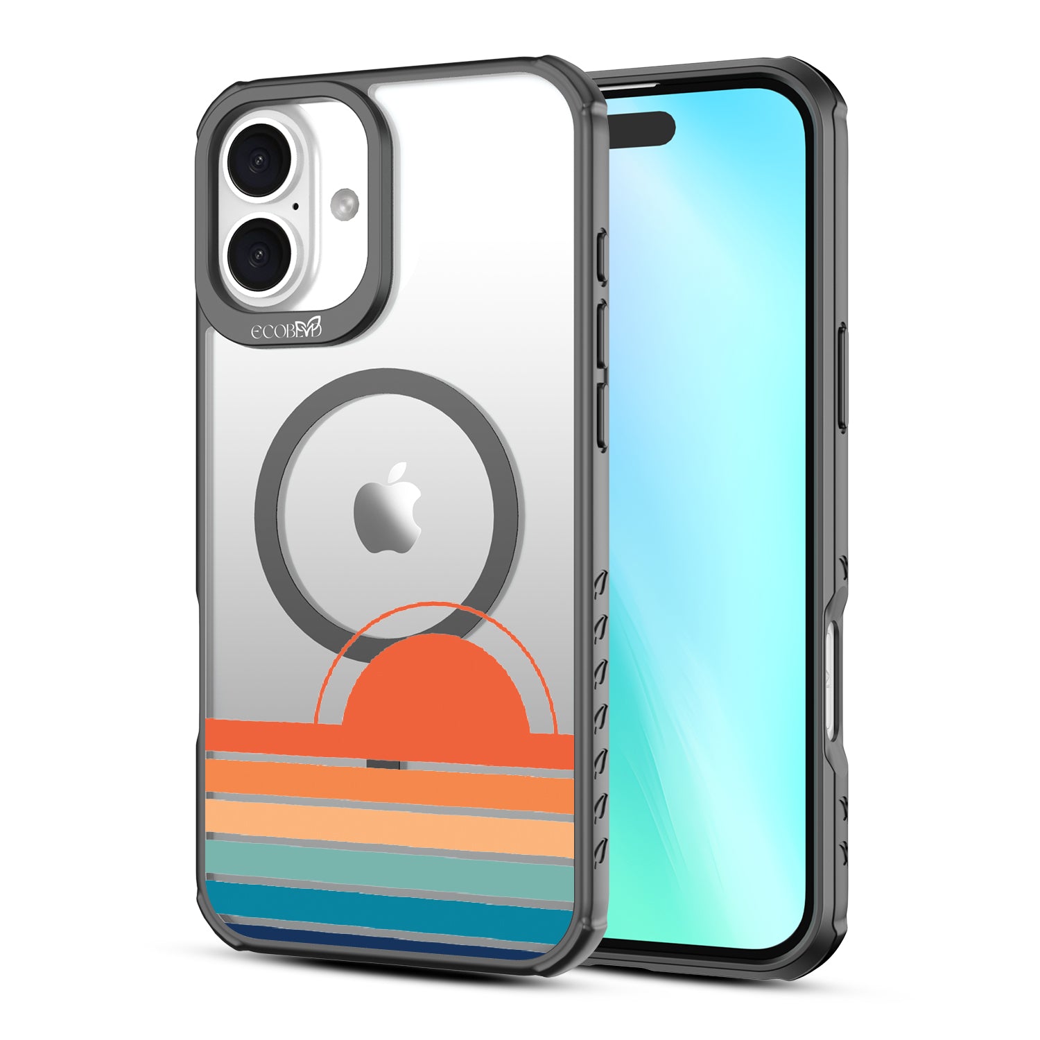 Even for those who aren't early birds, the Rise n' Shine design on our Revive clear iPhone 16 Plus phone case illuminates your phone with a stylishly sunny morning glow with beaming gradient rays.