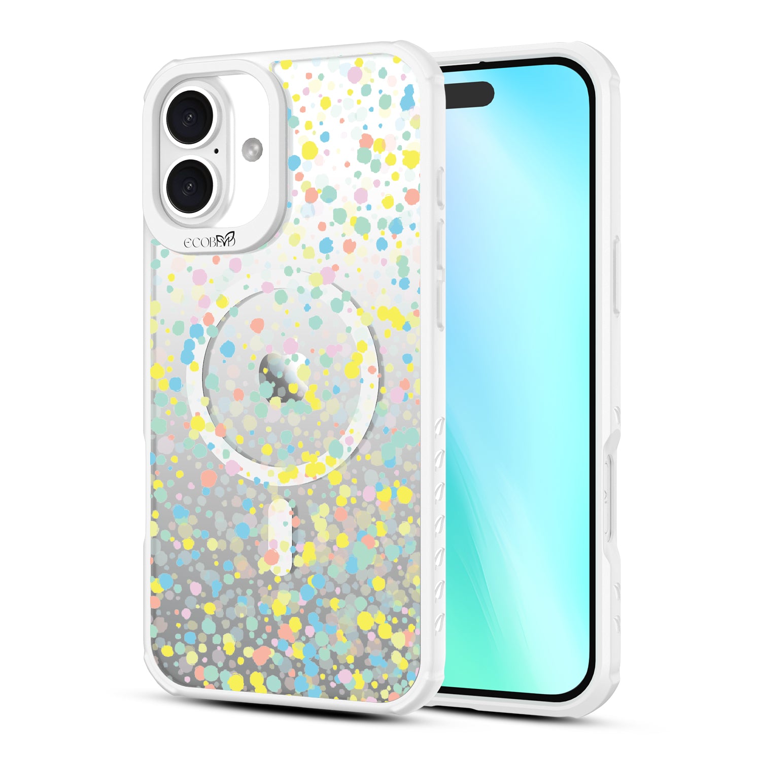 Keep the momentum going with Set in Motion. This playful design on the Revive clear iPhone 16 Plus phone case features a vibrant array of scattered dots, bringing a sense of non-stop energy to your phone. It's the perfect accessory for those who love to keep things moving forward.