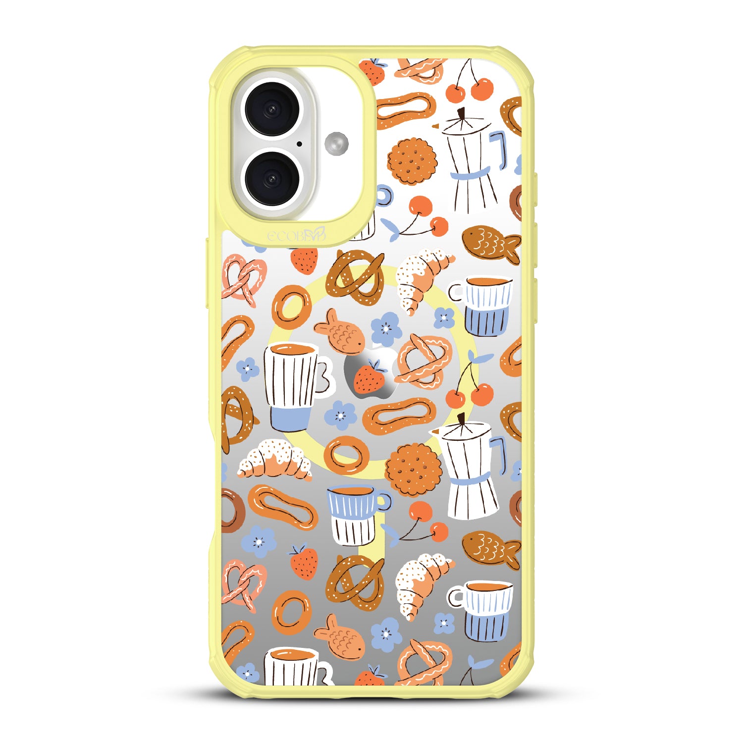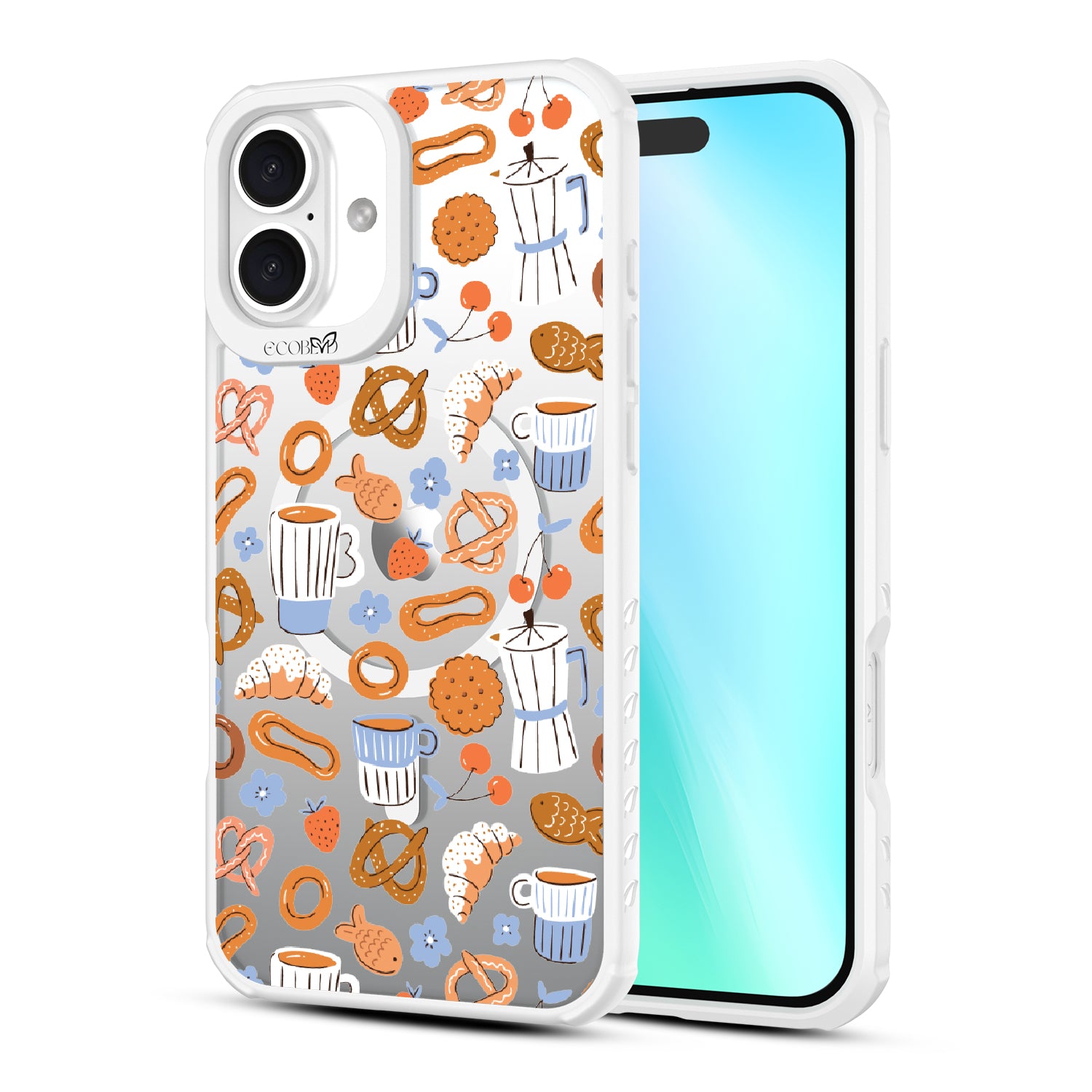 Welcome to The Breakfast Club, where looks are served. This design on our Revive clear iPhone 16 Plus case brings together all your favorite brunch essentials—croissants, coffee, and pretzels. It’s the perfect club to kickstart your day, full of flavor, fun, and flair.