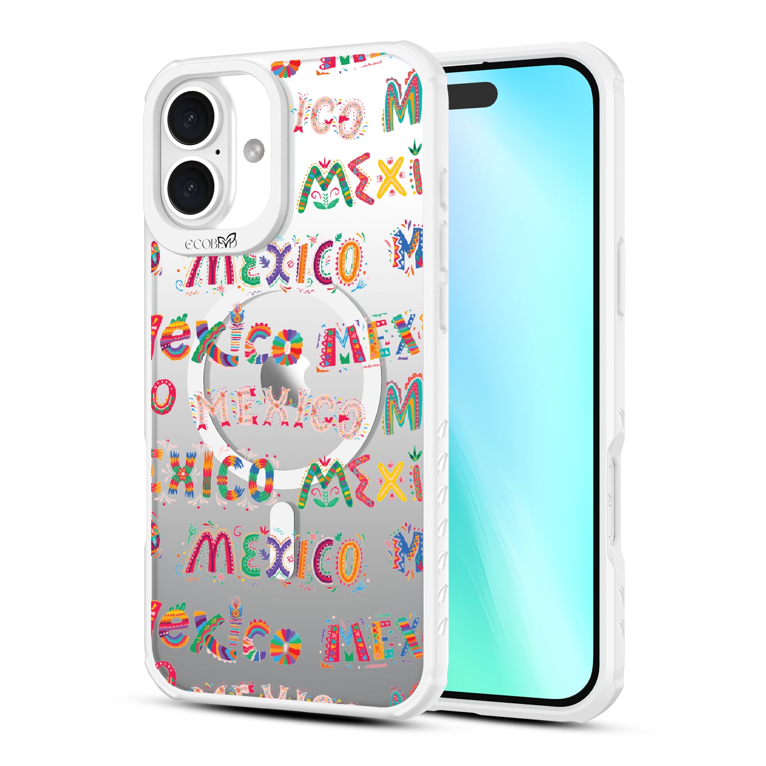Celebrate the heart of Mexico with the 'Viva Mexico' design on our Revive clear iPhone 16 Plus phone case, a dynamic homage to the nation's rich cultural tapestry. Just like the festive murals that adorn the streets of Oaxaca, each letter is a reflection of Mexico's soulful artistry, traditions and culture, inviting you to carry a piece of its vibrant history wherever you go.