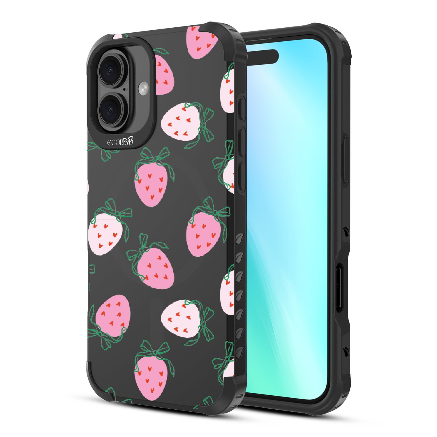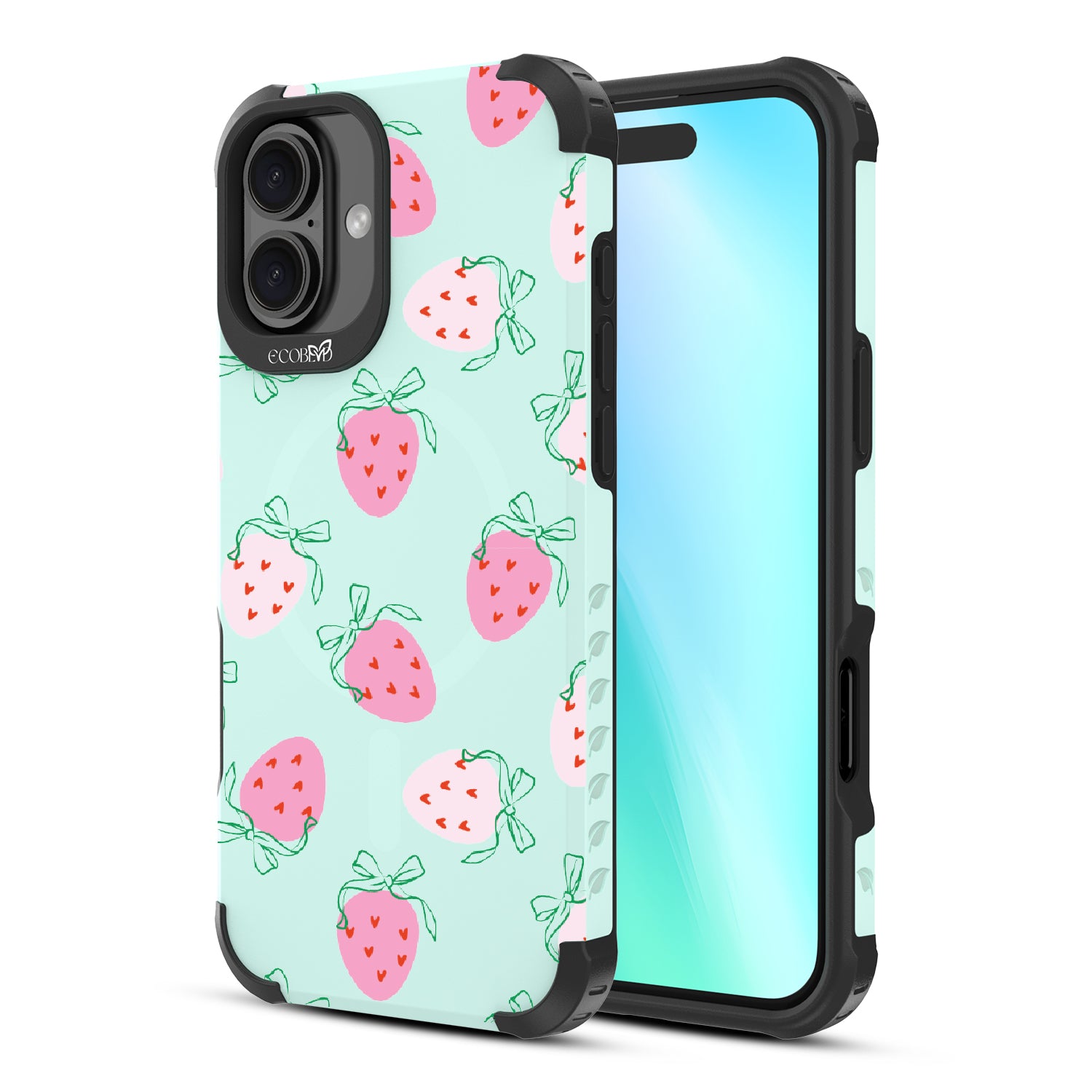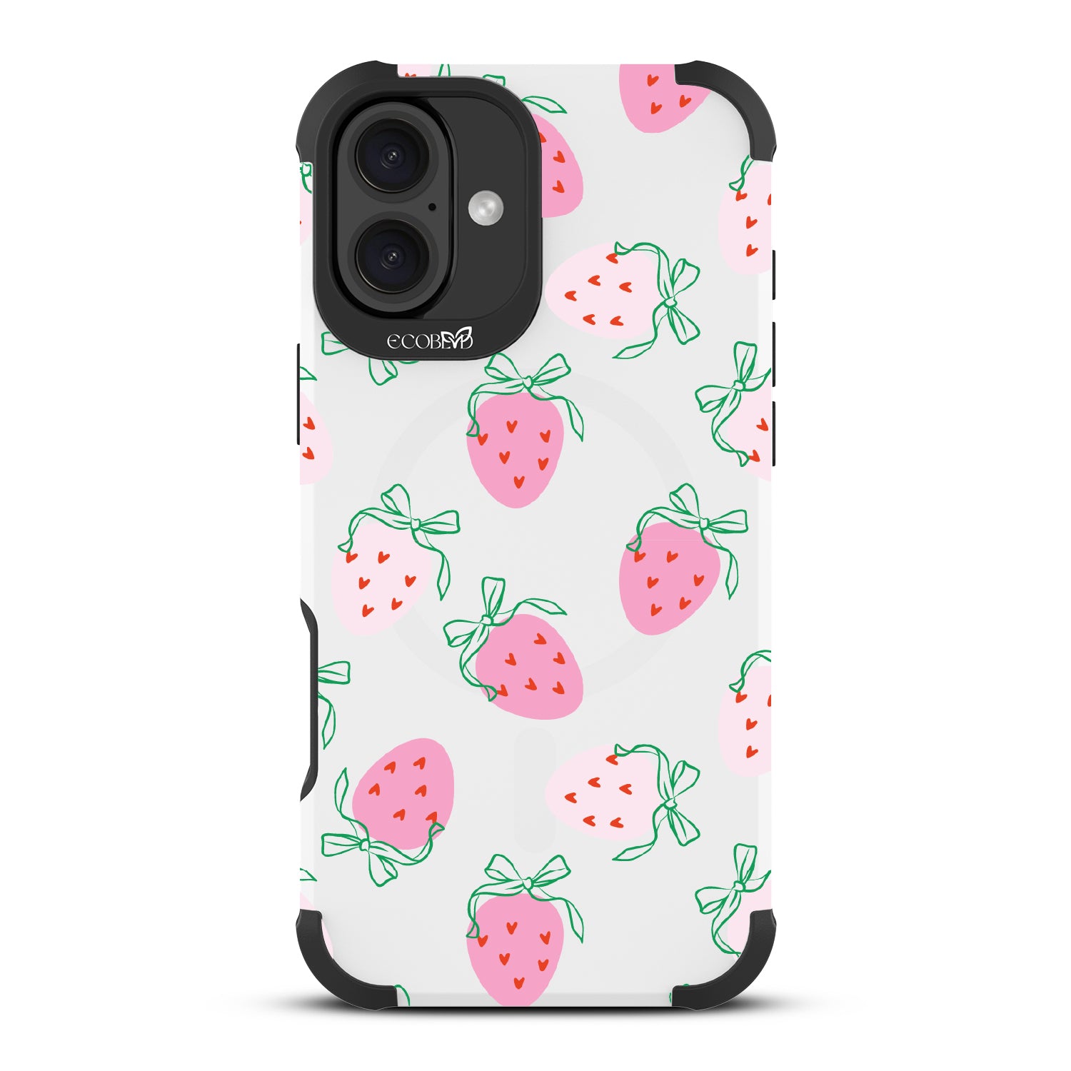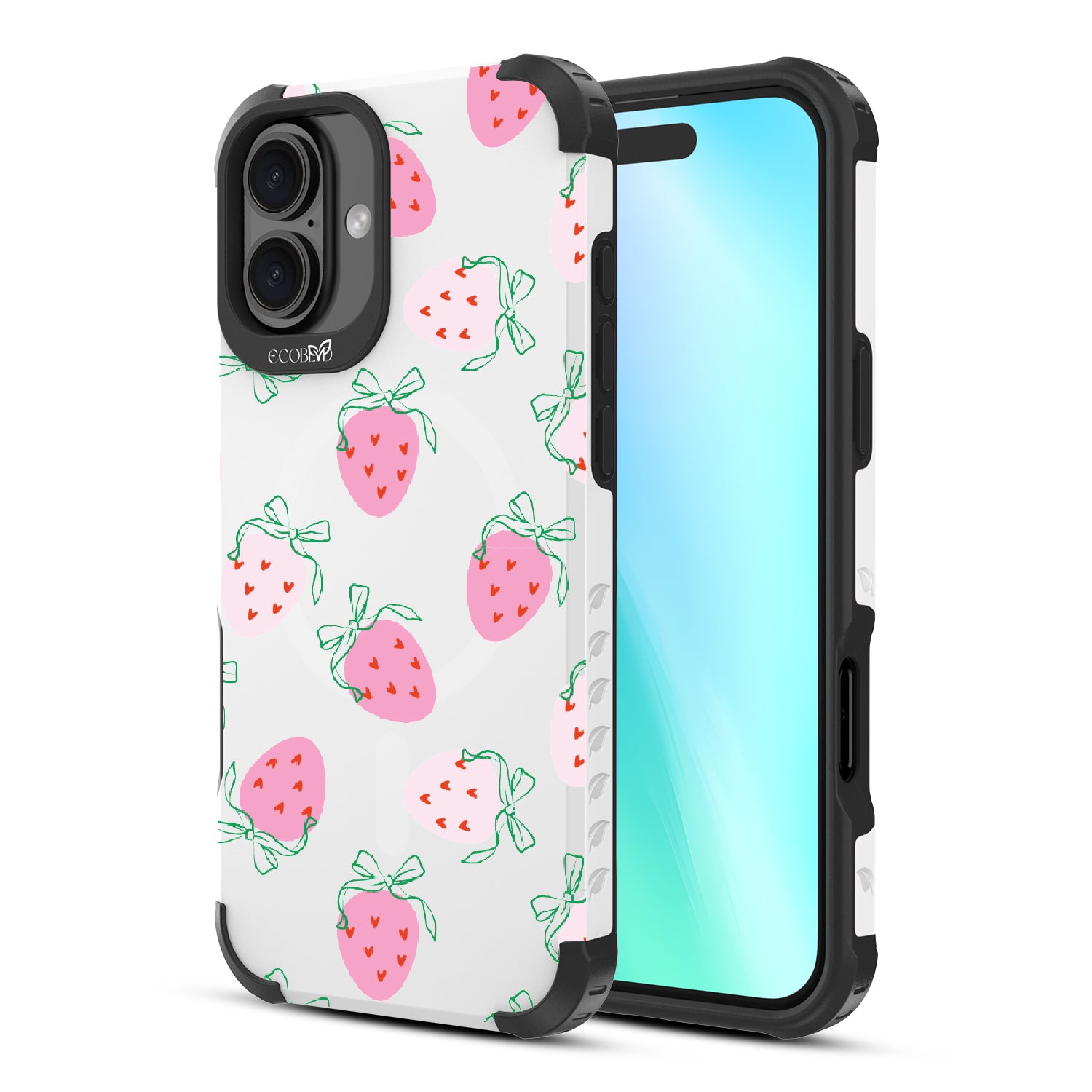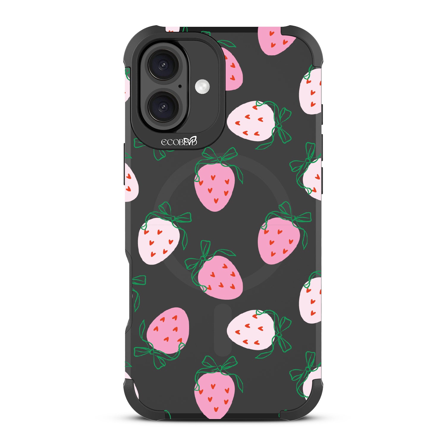 The Berry Cute design on our Reforge rugged iPhone 16 Plus phone case lives up to its name with luscious strawberries and coquettish bows, giving your phone a picked-for-you look. This pattern brings a touch of playful femininity, perfect for any coquette girl. Sweeten things up and show off a truly juicy style. Grab the Berry Cute case and let your phone be the berry best!