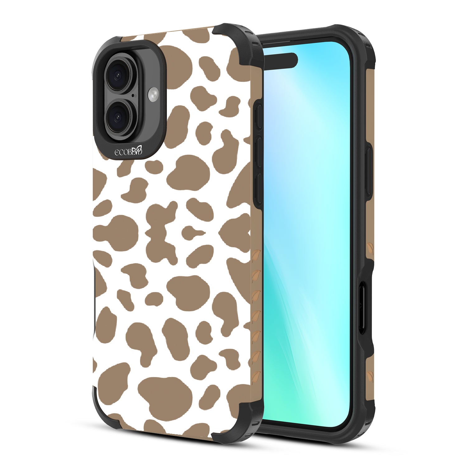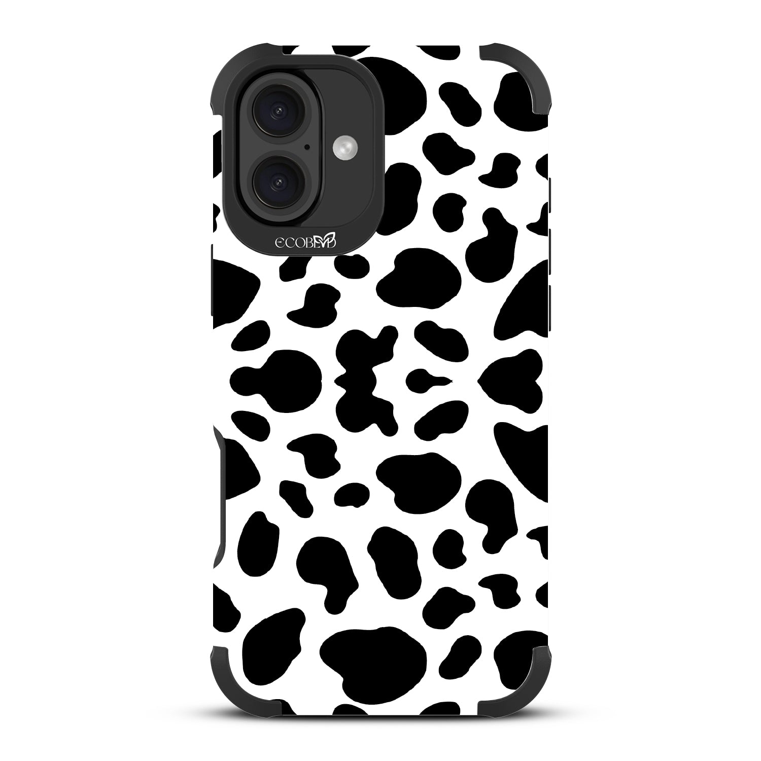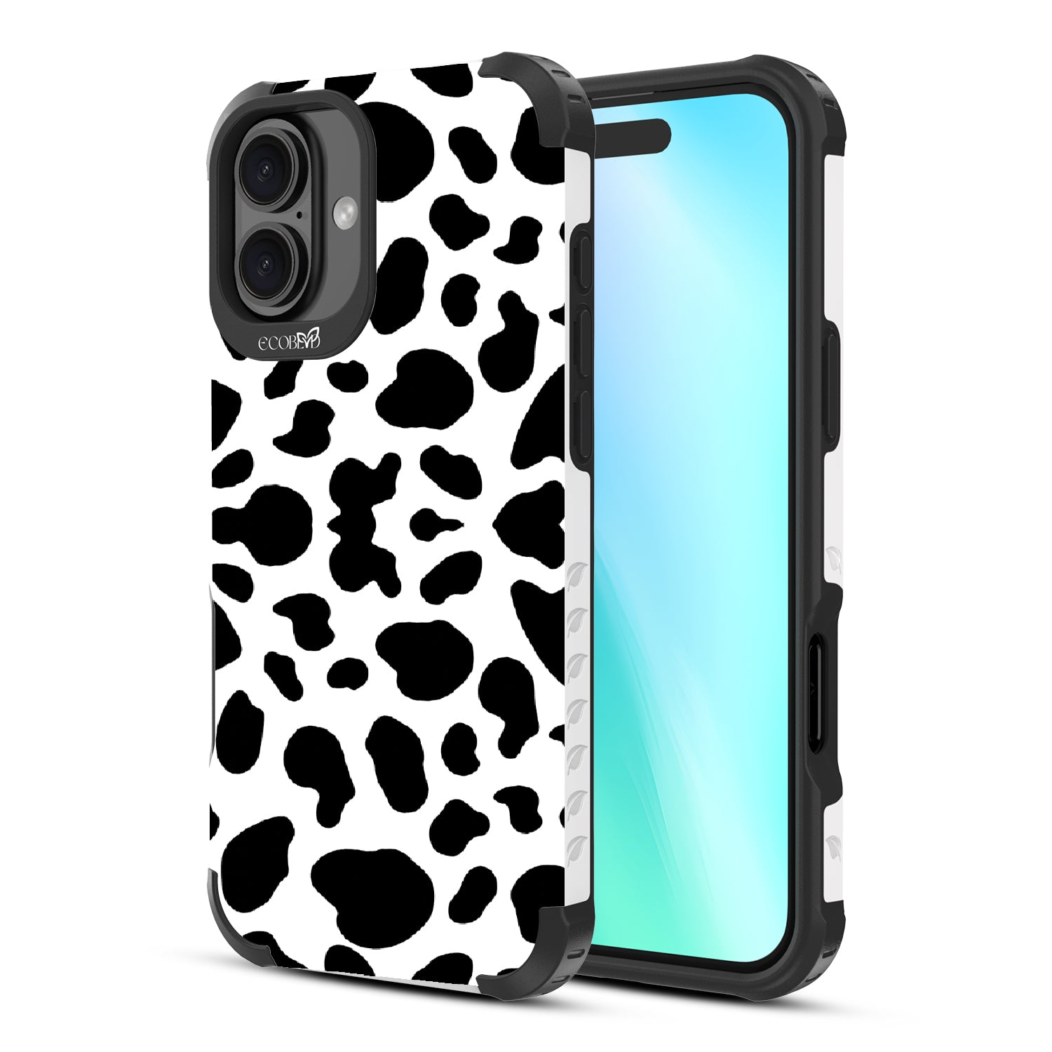 Make your phone easy to spot with this "moooognificient" Cow Print design on our Reforge rugged iPhone 16 Plus phone case.