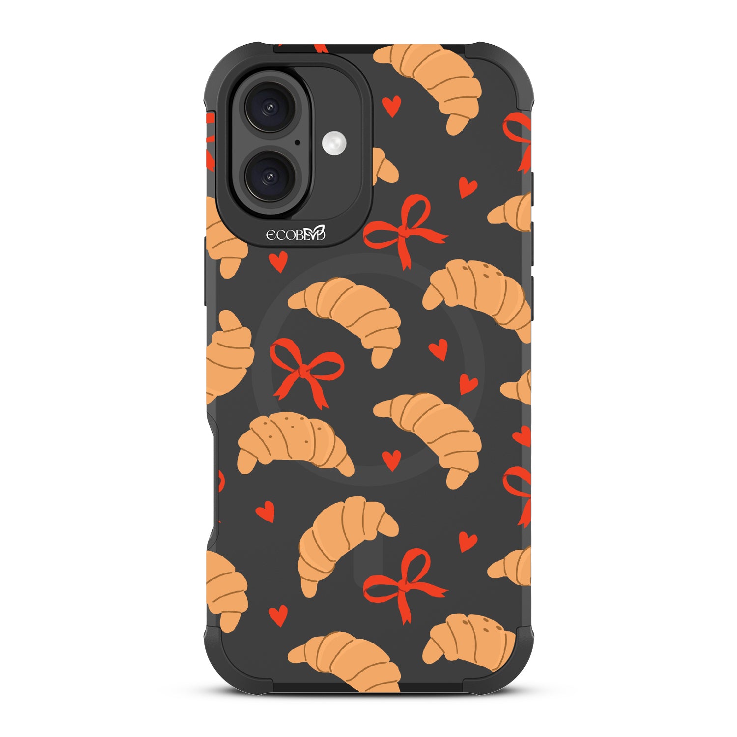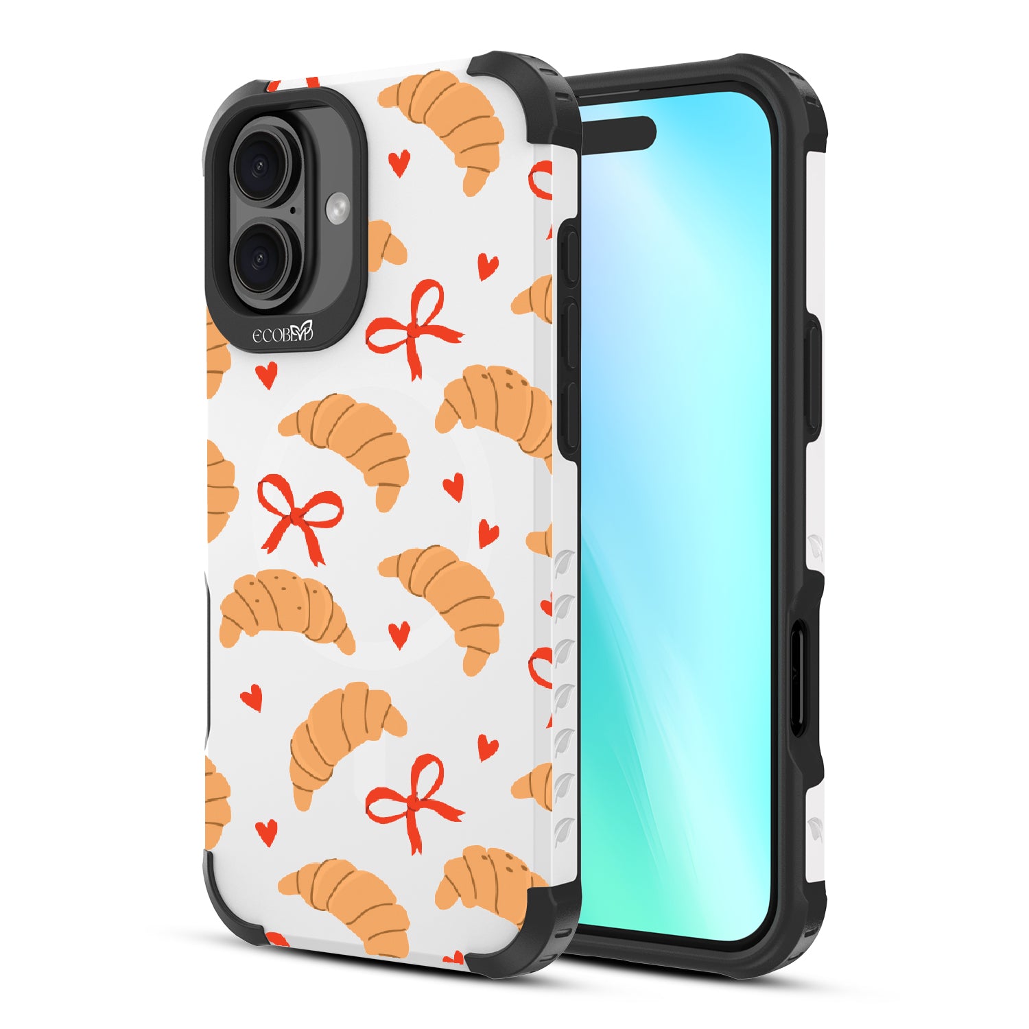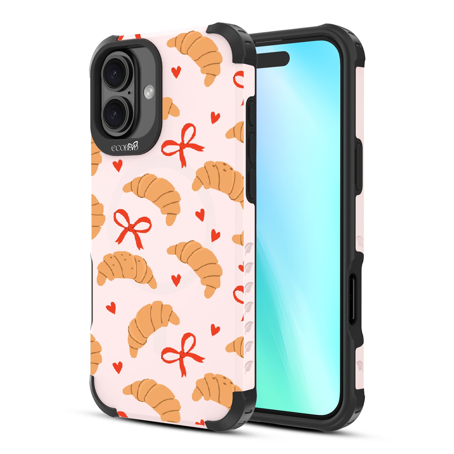 Good taste deserves the perfect recipe like the Croissant Couture design on our Reforge rugged iPhone 16 Plus case! Softly folded croissants, tied with dainty red bows and sprinkled with sweet hearts, evoke the lightness and care of a true delicacy.