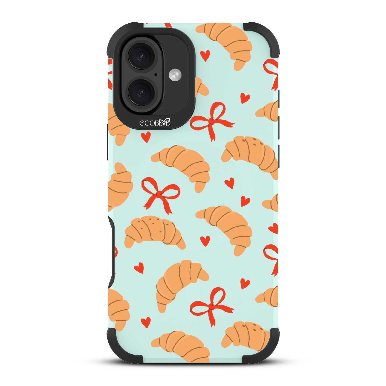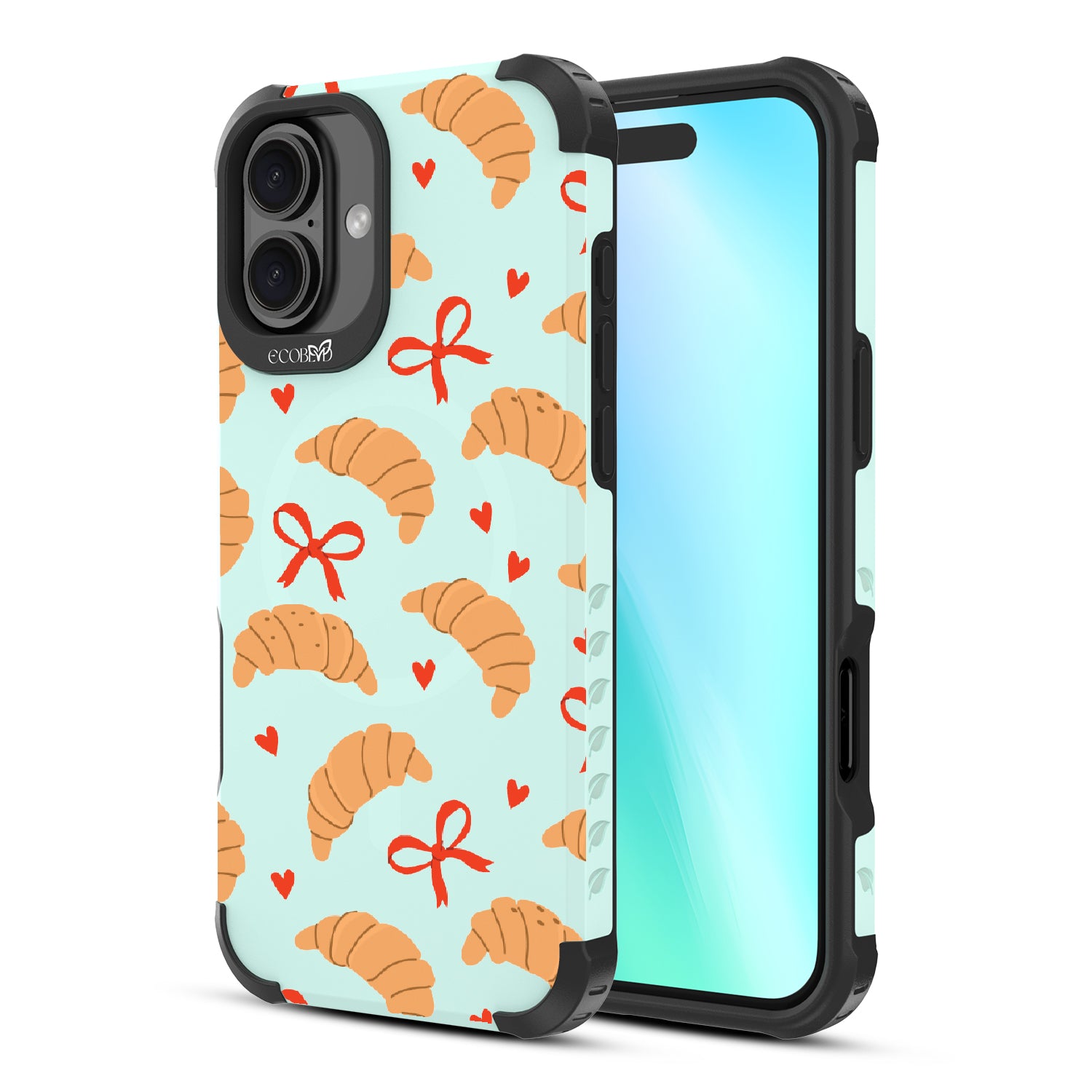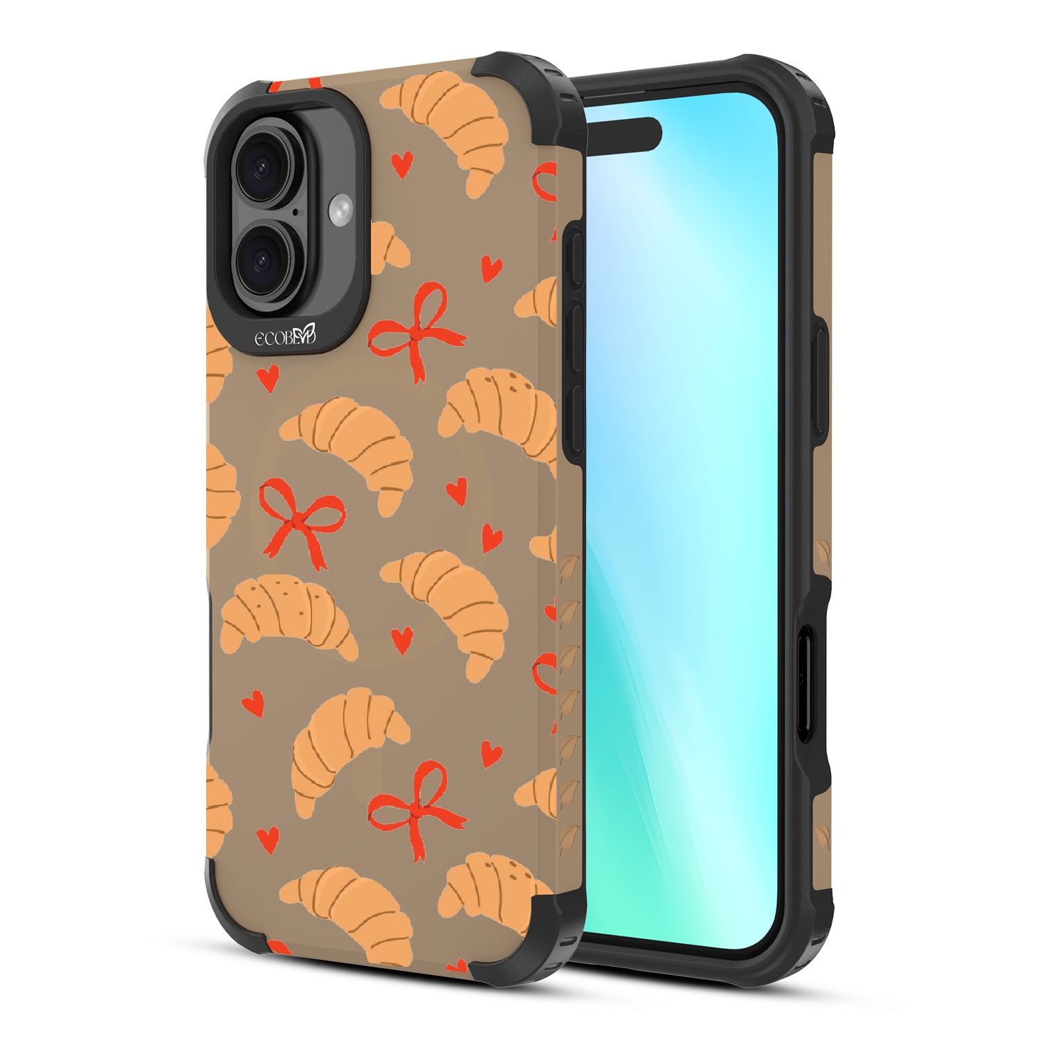 Good taste deserves the perfect recipe like the Croissant Couture design on our Reforge rugged iPhone 16 Plus case! Softly folded croissants, tied with dainty red bows and sprinkled with sweet hearts, evoke the lightness and care of a true delicacy.