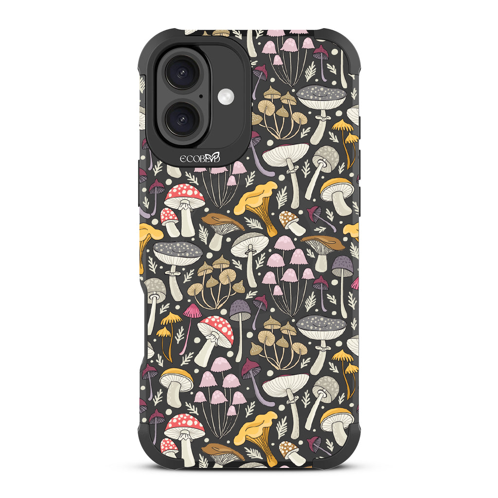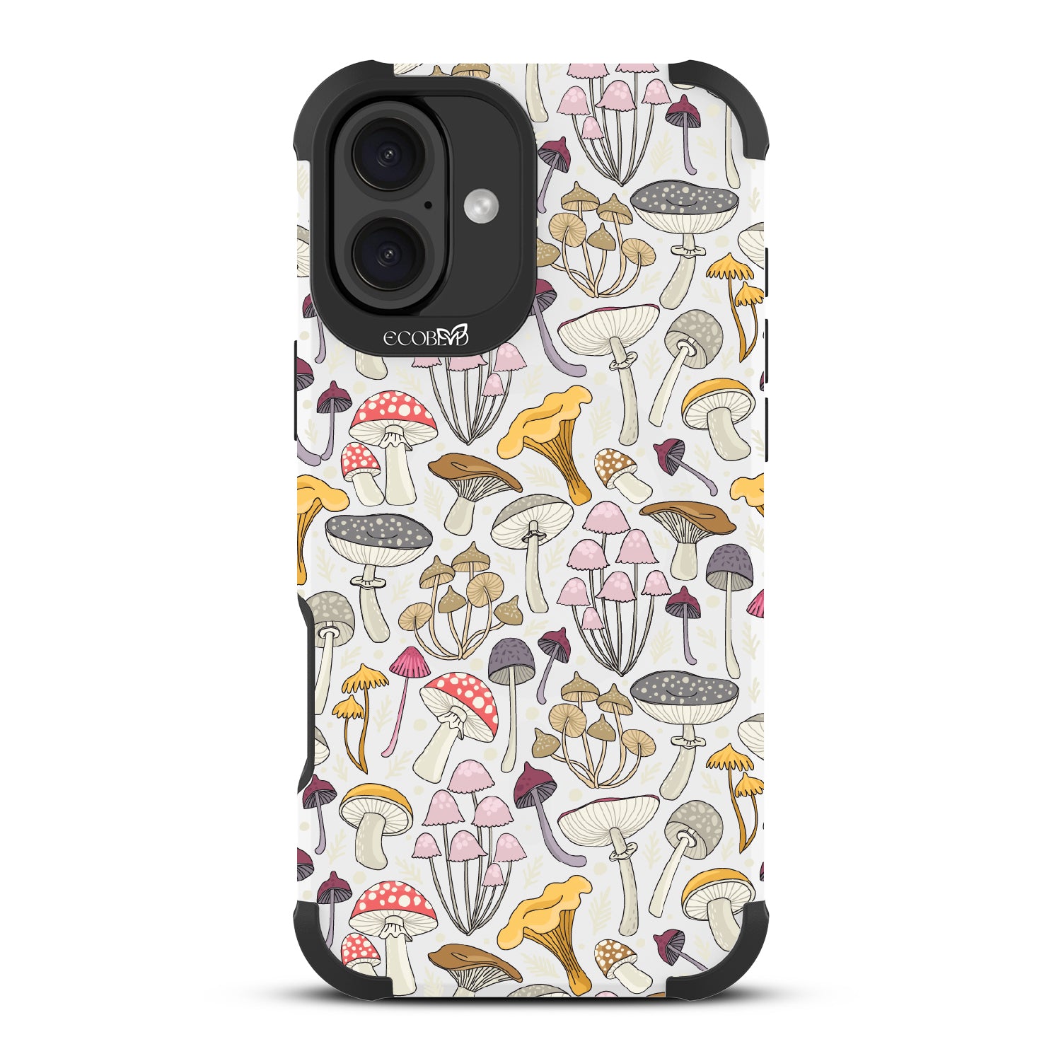 The Foraging design on our Reforge rugged iPhone 16 Plus phone case encourages you to uncover the hidden beauty of nature, as each toadstool and mushroom conceals a world of wonder just beneath the surface, adding a touch of fun-gi to your phone. Just as each mushroom bring a sense of charm to the forest floor, this playful design infuses your device with a spirit of discovery.