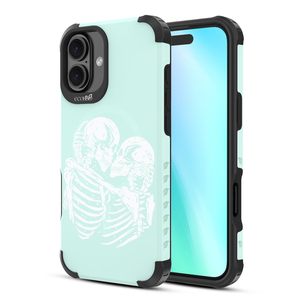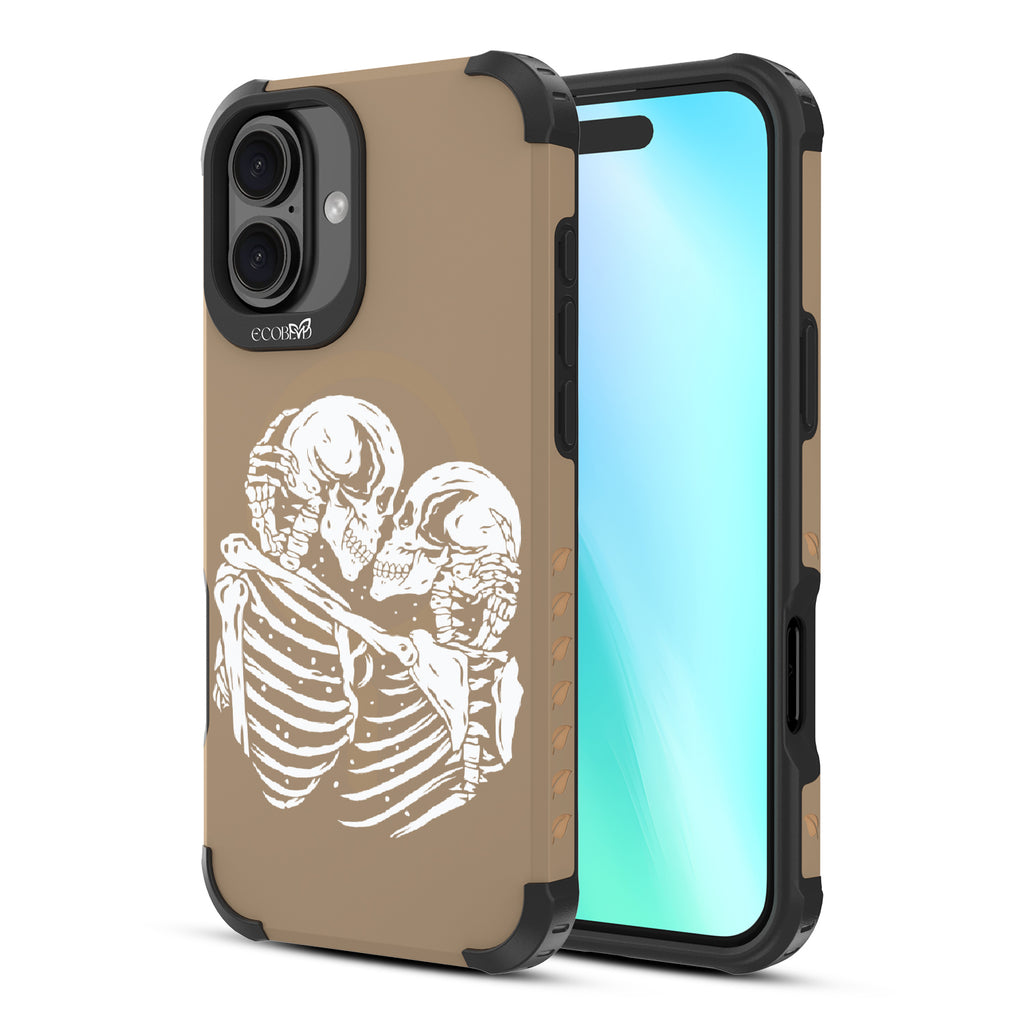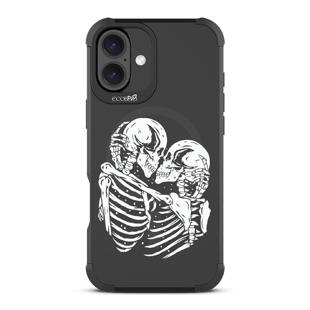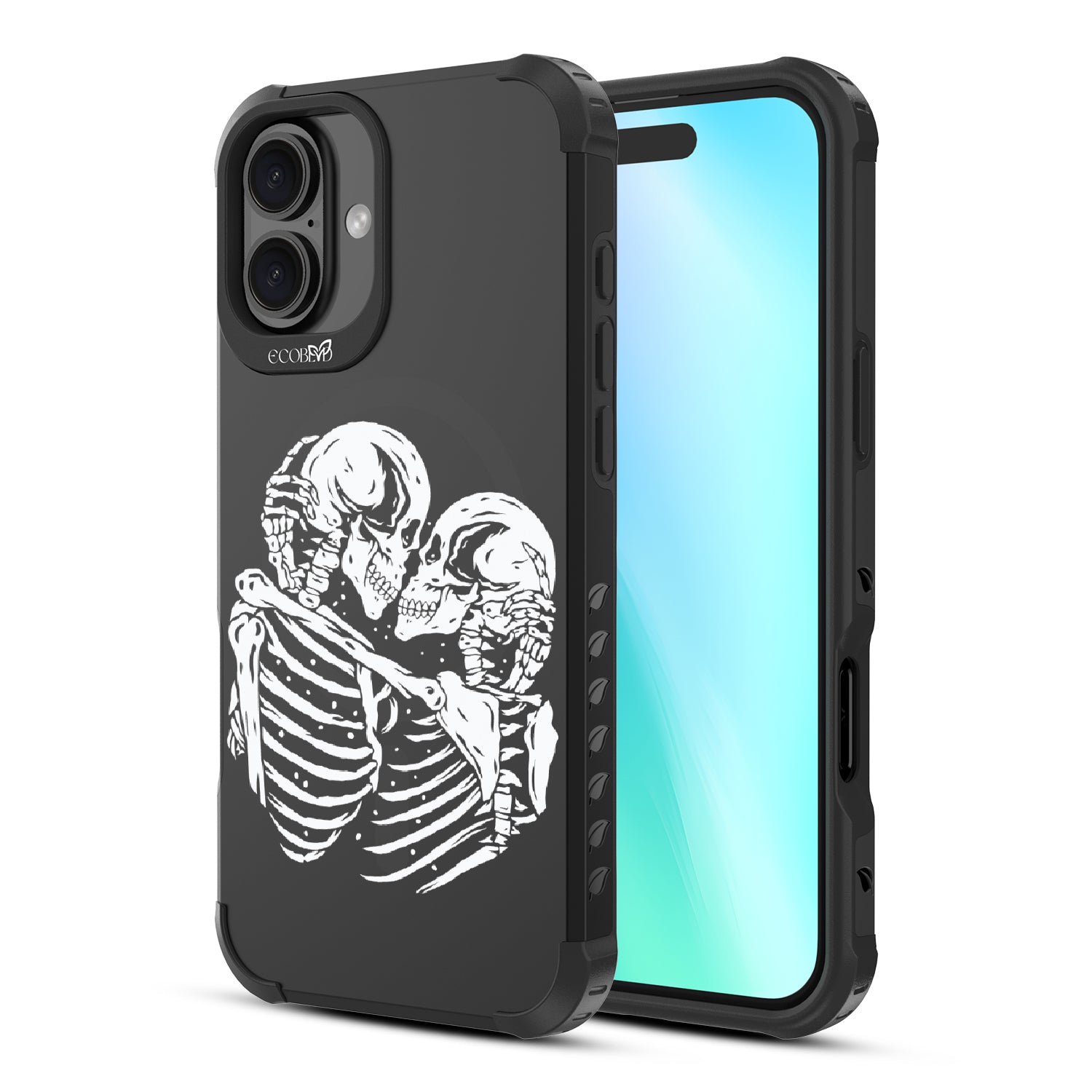 Love lasts longer than life with the Evermore design on our Reforge rugged iPhone 16 Plus case, where love's flame persists beyond life's extinguishing. A skeletal couple's eternal kiss serves as a testament to the enduring power of affection.