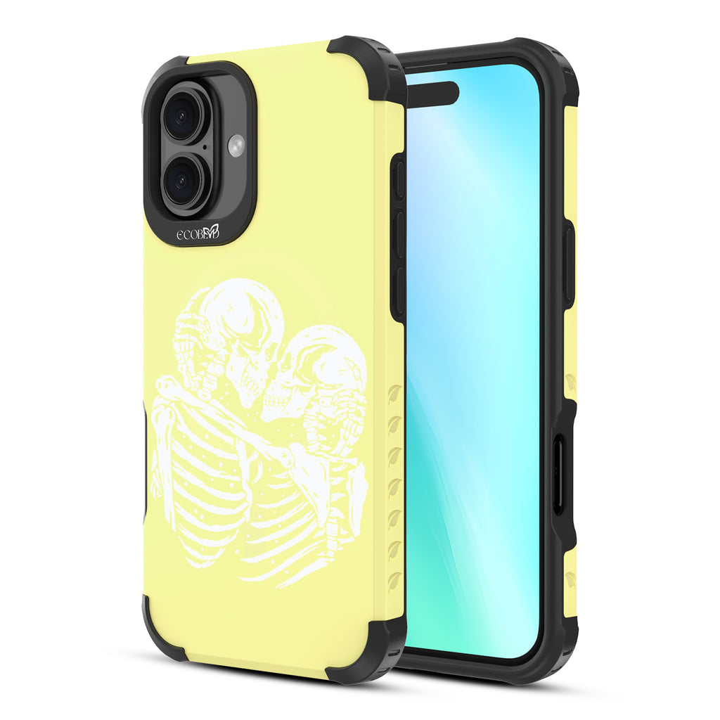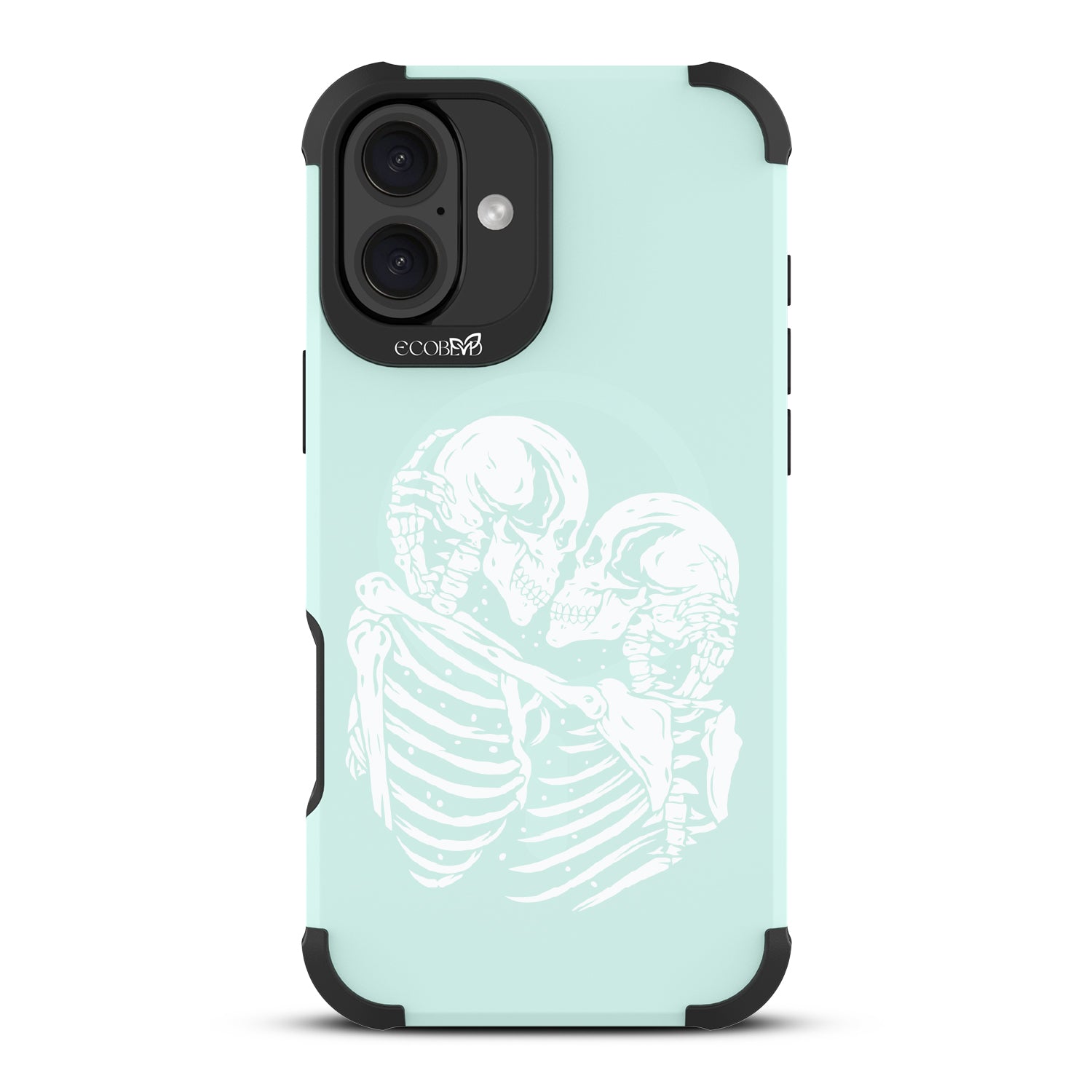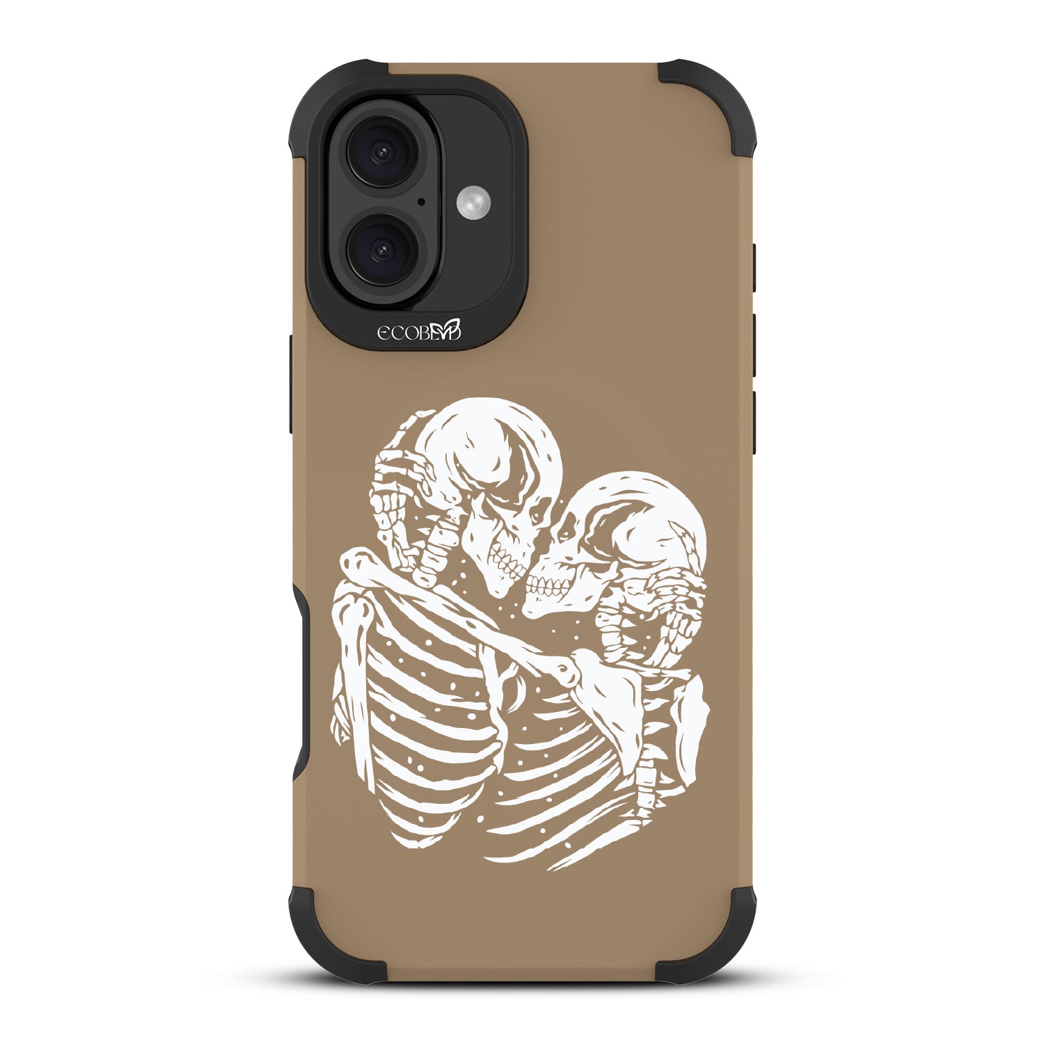 Love lasts longer than life with the Evermore design on our Reforge rugged iPhone 16 Plus case, where love's flame persists beyond life's extinguishing. A skeletal couple's eternal kiss serves as a testament to the enduring power of affection.