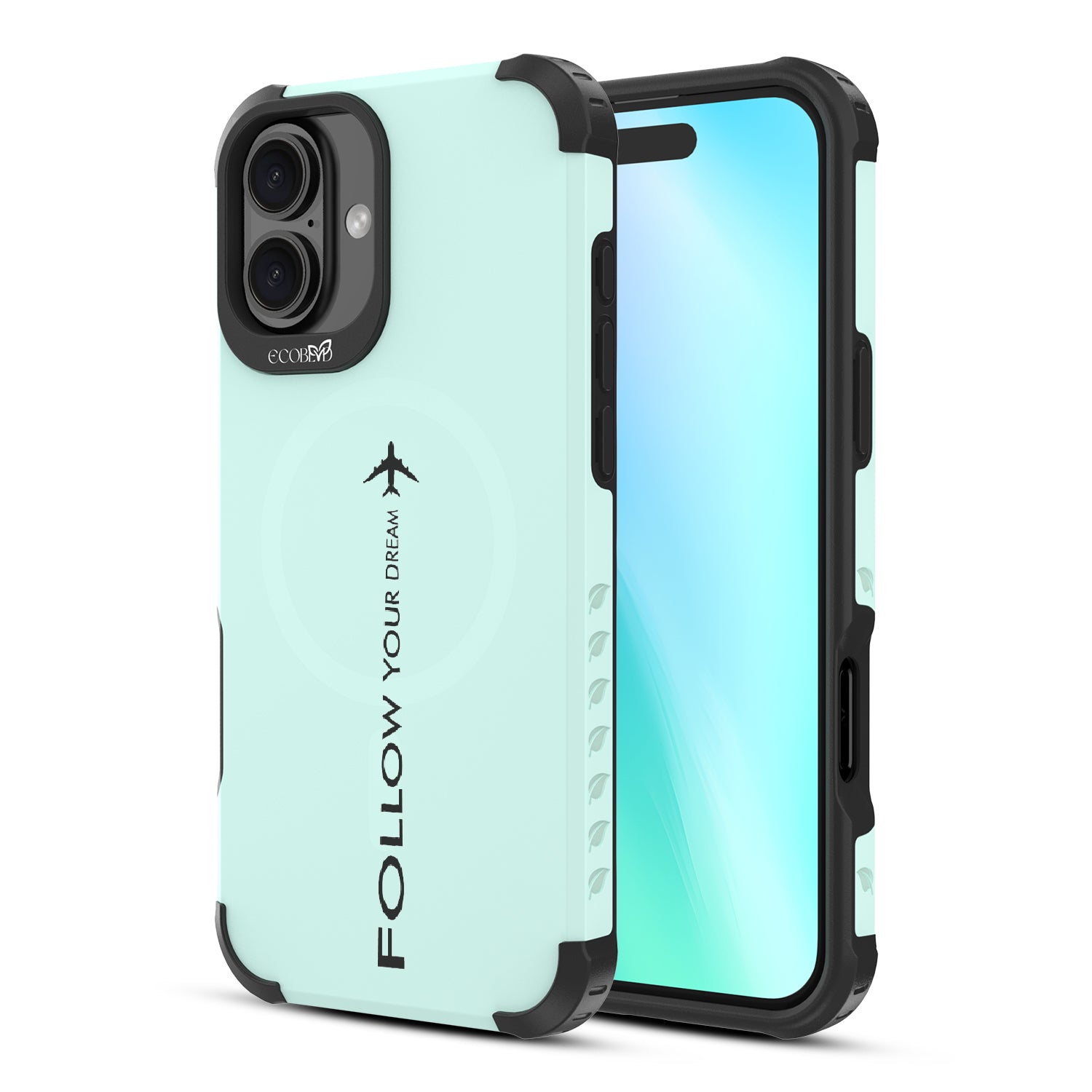 Let your aspirations take flight with the Follow Your Dreams design on our Reforge rugged iPhone 16 Plus phone case. As the airplane streaks across the design, trailing empowering words behind it, envision yourself soaring to new heights and exploring the destinations of your dreams. Whether it's wandering through ancient ruins, lounging on tropical beaches, or marveling at breathtaking landscapes.