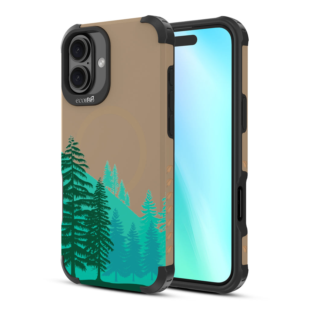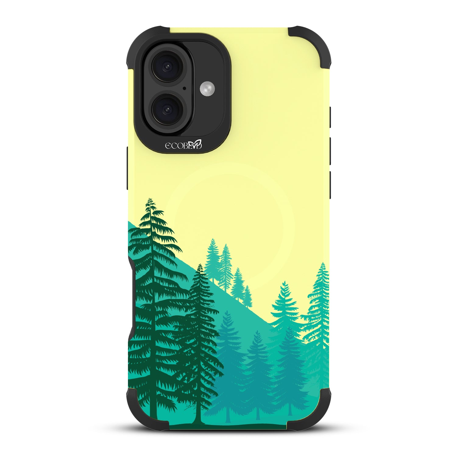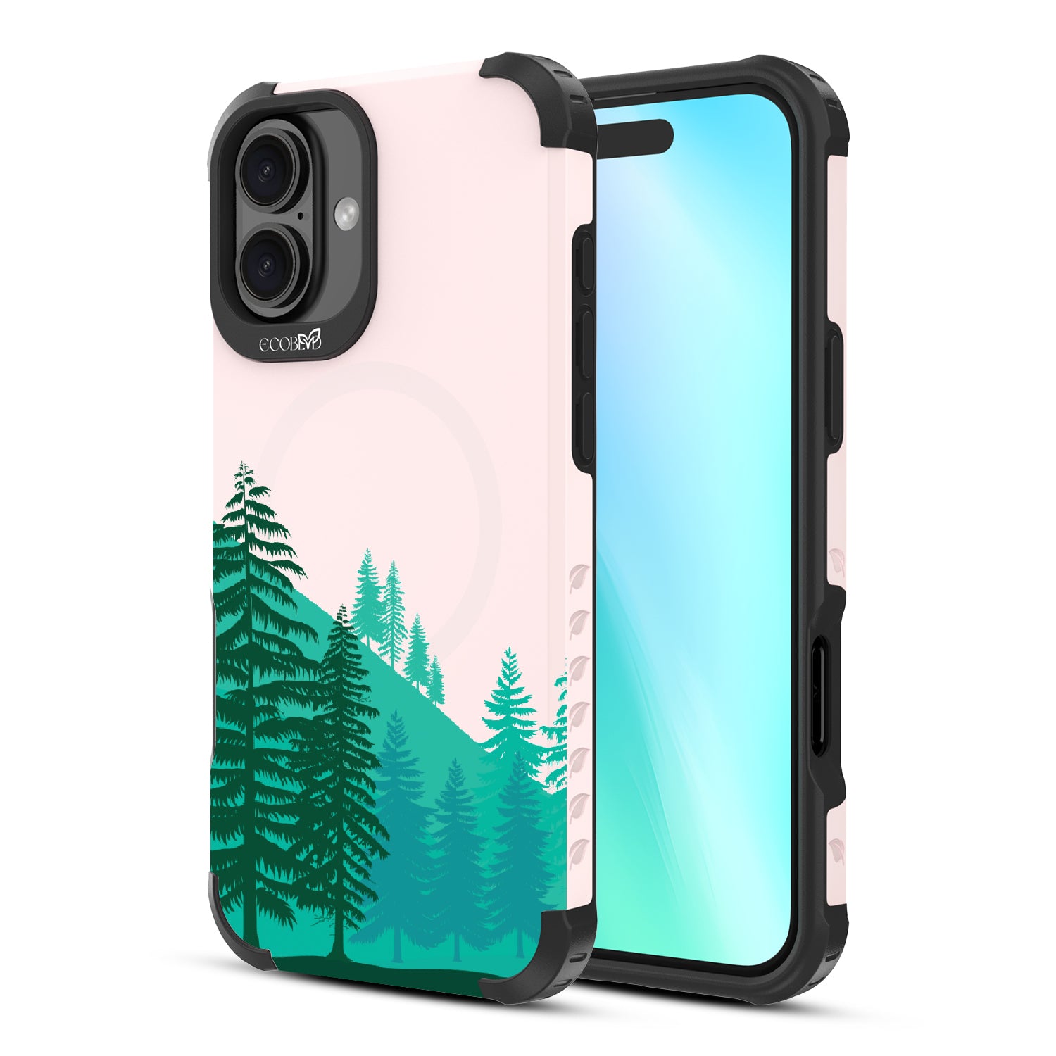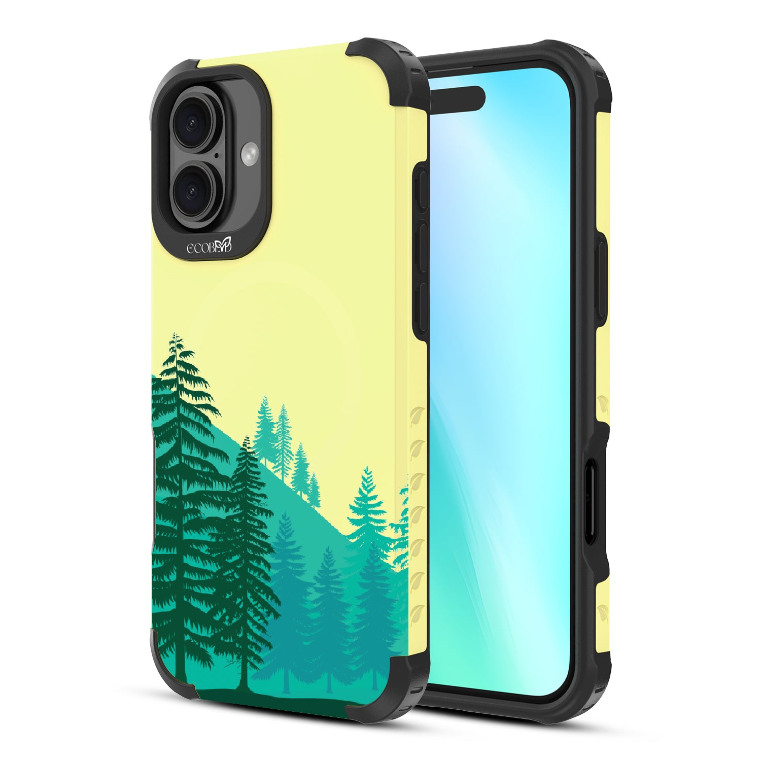 Get dialed into the wonder of nature as the Forest design on our Reforge rugged iPhone 16 Plus phone case surrounds your phone. Explore the great outdoors with a lush forest of fir trees in five vibrant colors: Midnight Black, Cascade Blue, Foliage Green, Illuminating Yellow, and Wildflower Pink.