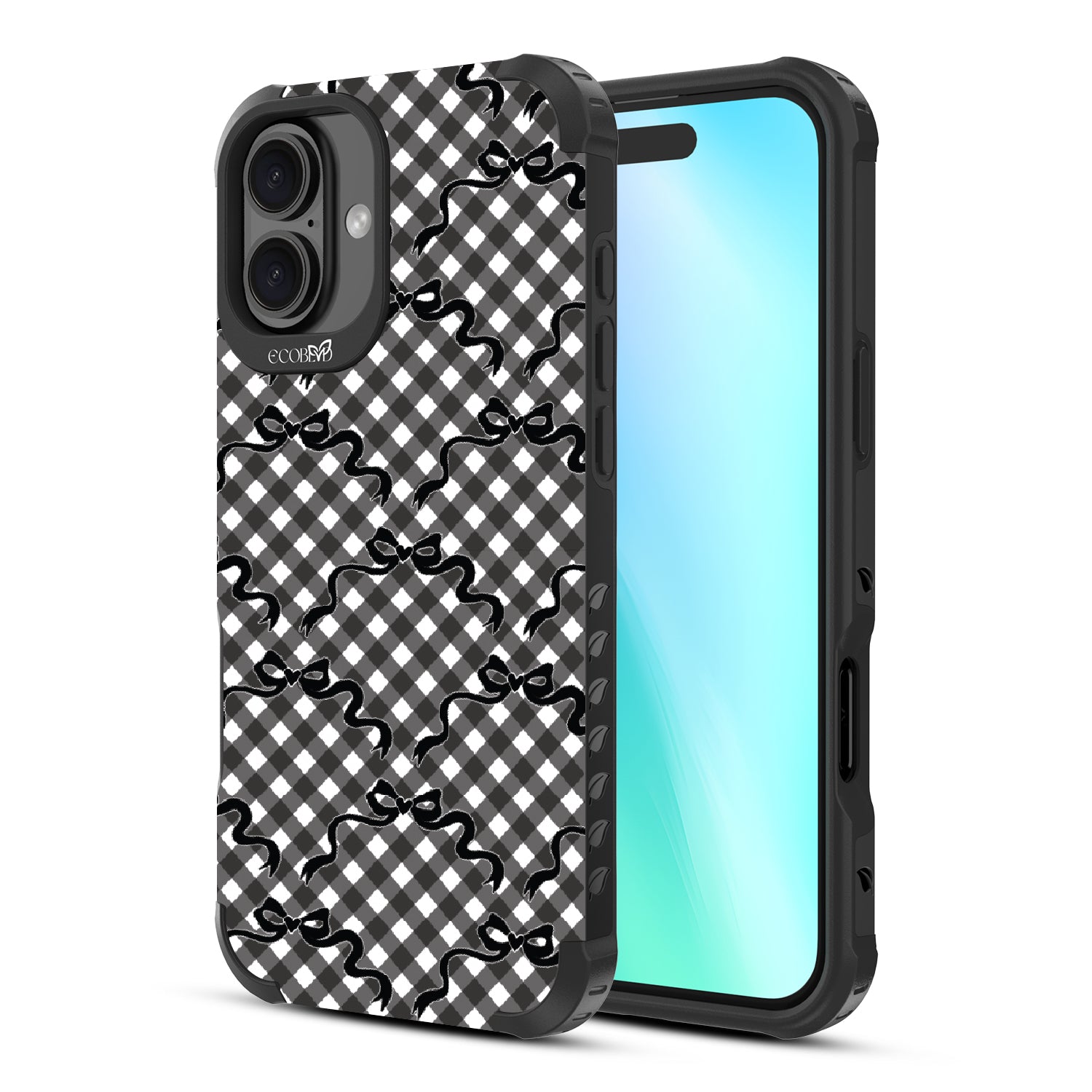 Ditch the love-me-nots for Love Knots, where black bows twist into charming knots on a classic checkered background. This design on our Reforge rugged iPhone 16 Plus phone case ties together coquette style and refined elegance, making your phone a delightful statement piece. Let your phone be a little knotty.