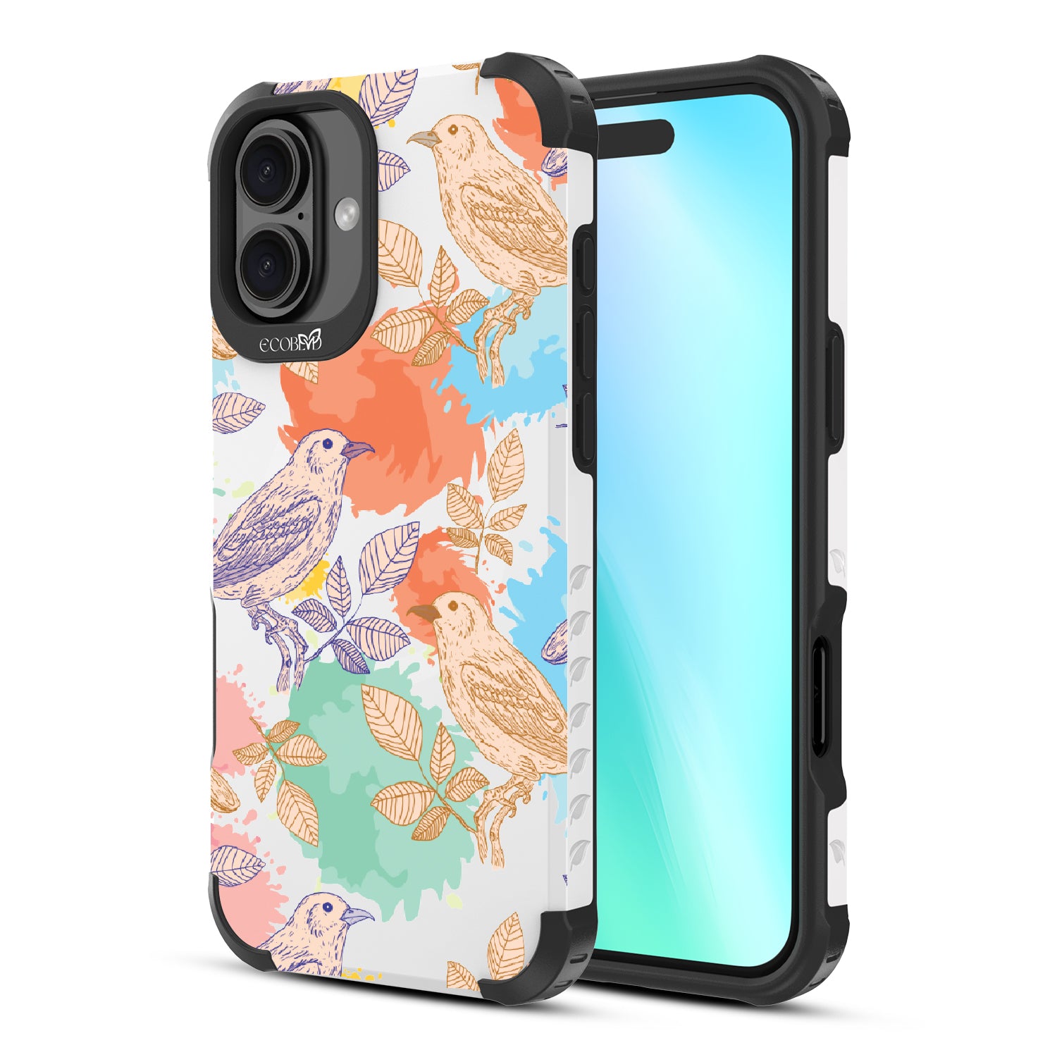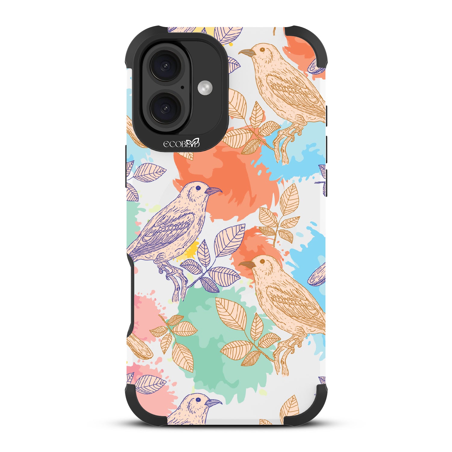 Get ready to soar to new heights with the Perch Perfect design for the Reforge rugged iPhone 16 Plus phone case. This feathered symphony will have you tweeting in delight as colorful birds perch on branches, creating a harmonious composition that hits all the right notes. The Perch Perfect design is like a symphony for your phone, hitting all the right notes with its playful bursts of color and intricate line art birds perched on a branch. Each bird adds its own unique melody to the song, creating a harmonious design that captures the essence of feeling wild and free. Let your phone be the conductor of this beautiful masterpiece with Perch Perfect.