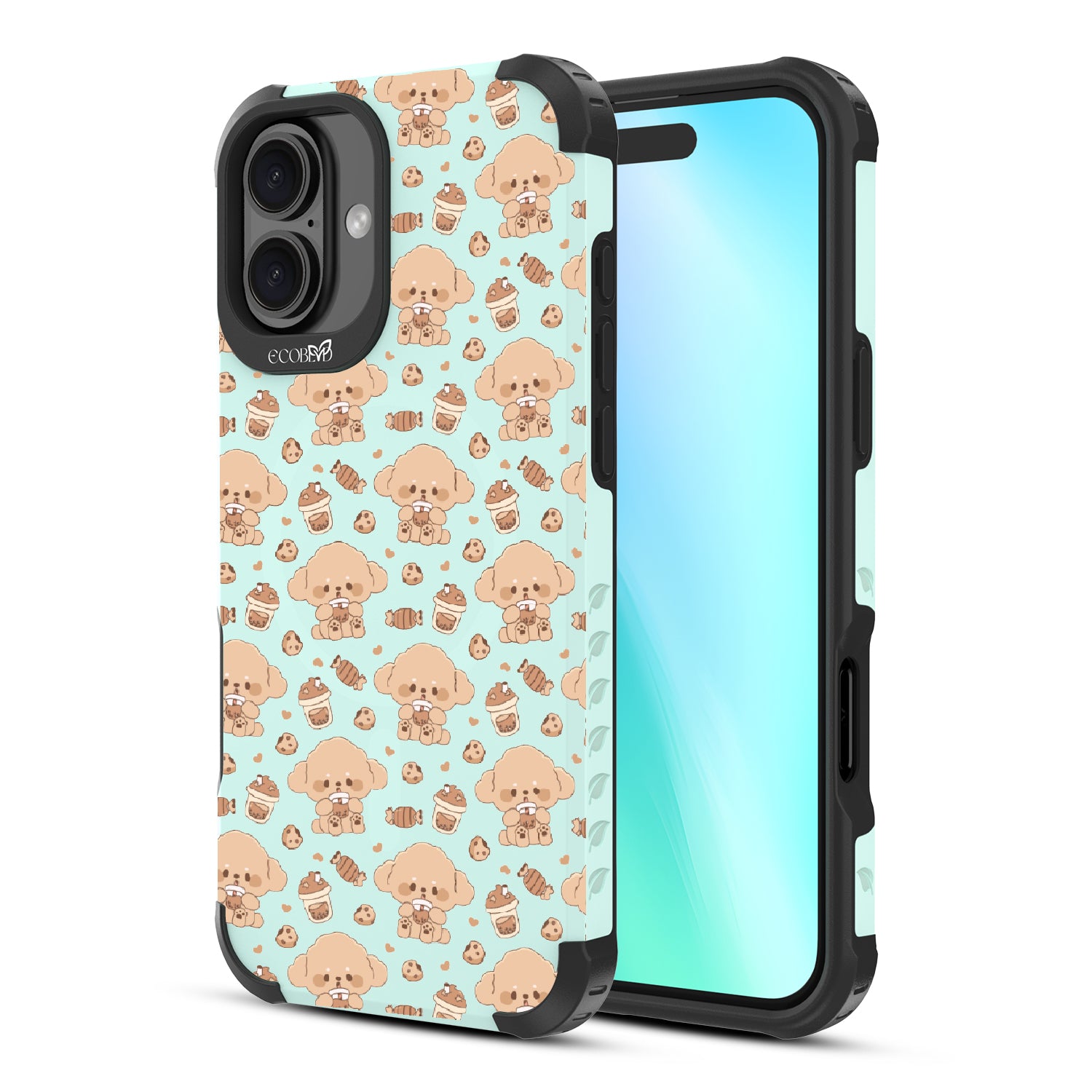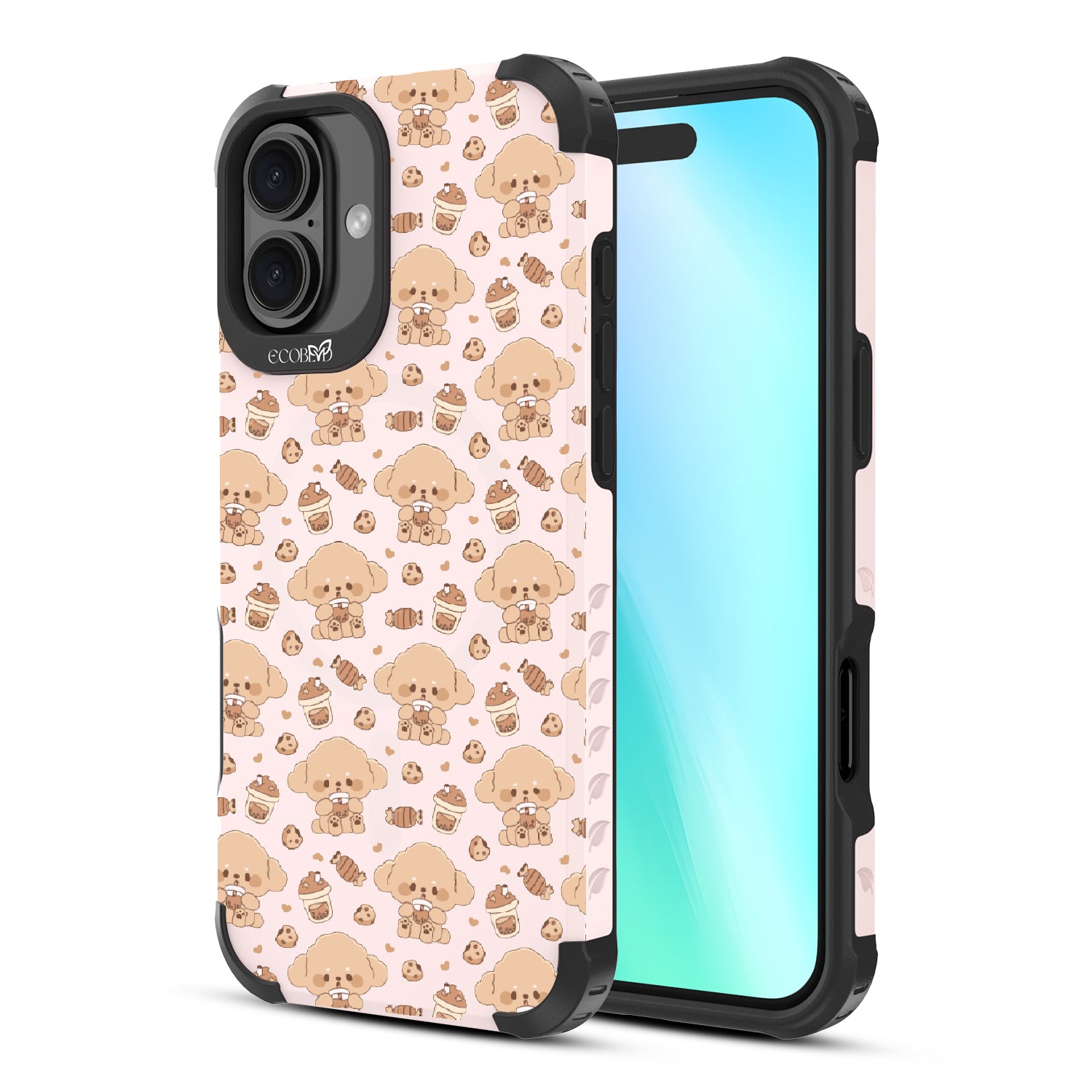 A pup cup for them, a coffee for you. The Pupaccino design on our Reforge rugged iPhone 16 Plus case captures the joy of coffee runs with your furry best friend, blending happy pups, frothy drinks, and pastries into one delightful look. Perfect for dog lovers who never skip a treat.