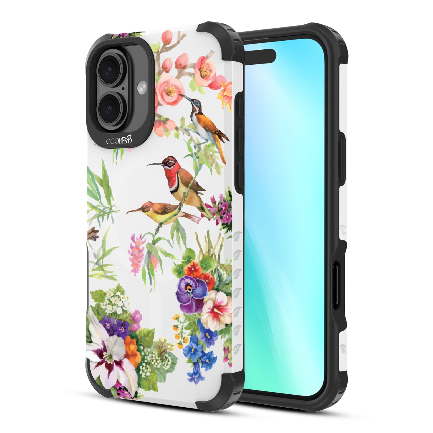 Get a little bit more of the sweeter things with the Sweet Nectar design on our Reforge rugged iPhone 16 Plus phone case. Featuring delicate yet bold hummingbirds amidst a garden of colorful flowers, it's a design that exudes grace, beauty, and vitality. Like a hummingbird drawn to Sweet Nectar, you'll be drawing everyone in with this design!