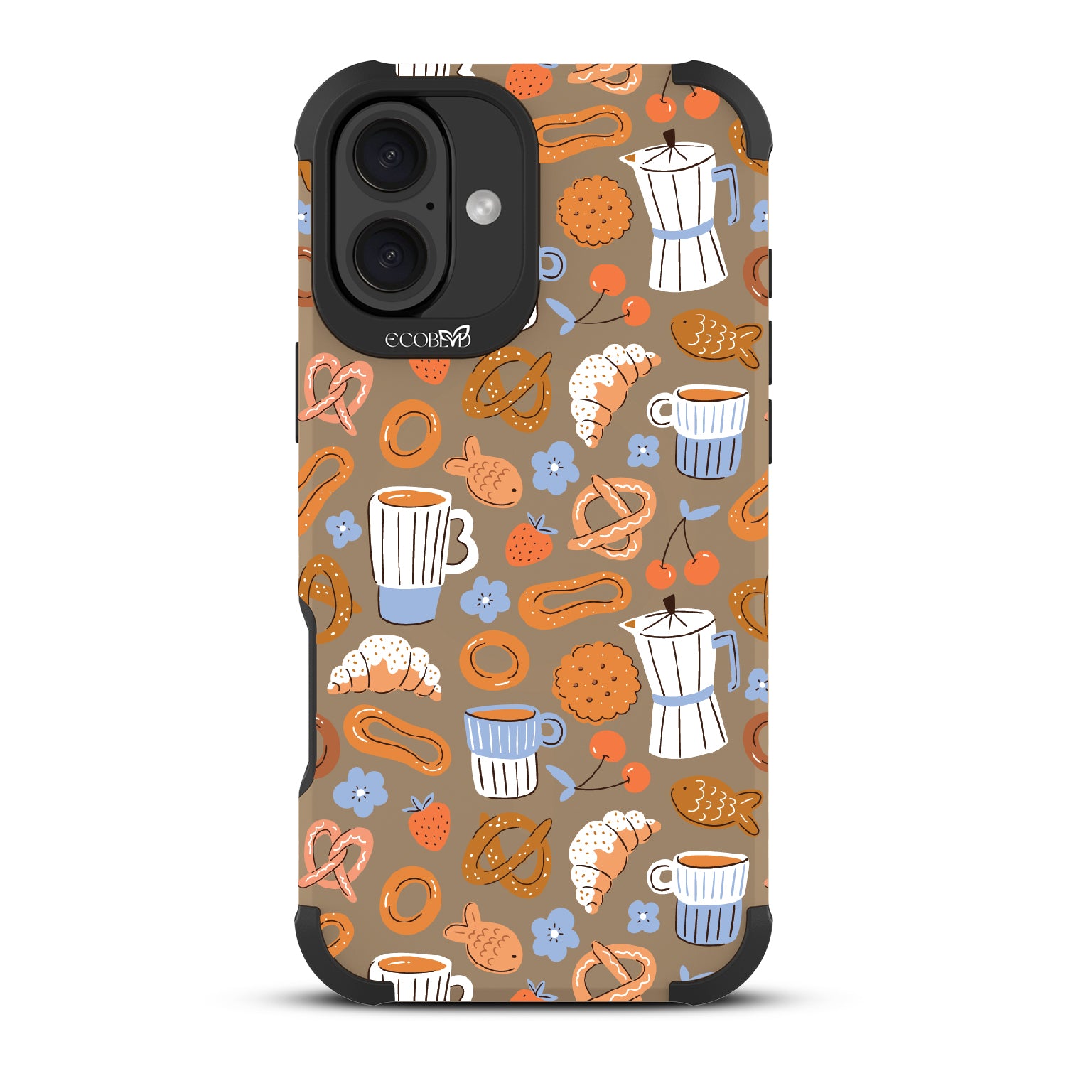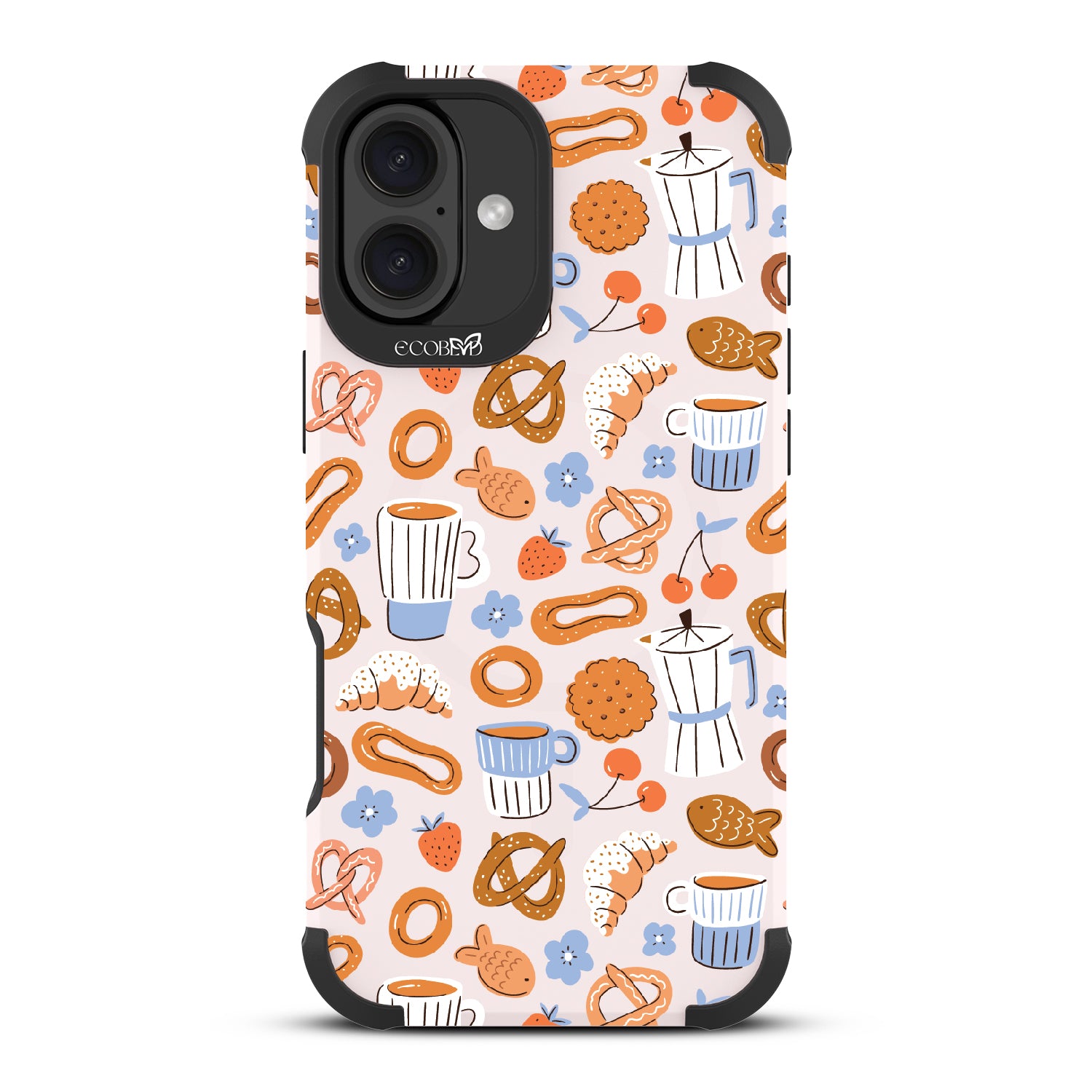 Welcome to The Breakfast Club, where looks are served. This design on our Reforge rugged iPhone 16 Plus case brings together all your favorite brunch essentials—croissants, coffee, and pretzels. It’s the perfect club to kickstart your day, full of flavor, fun, and flair.