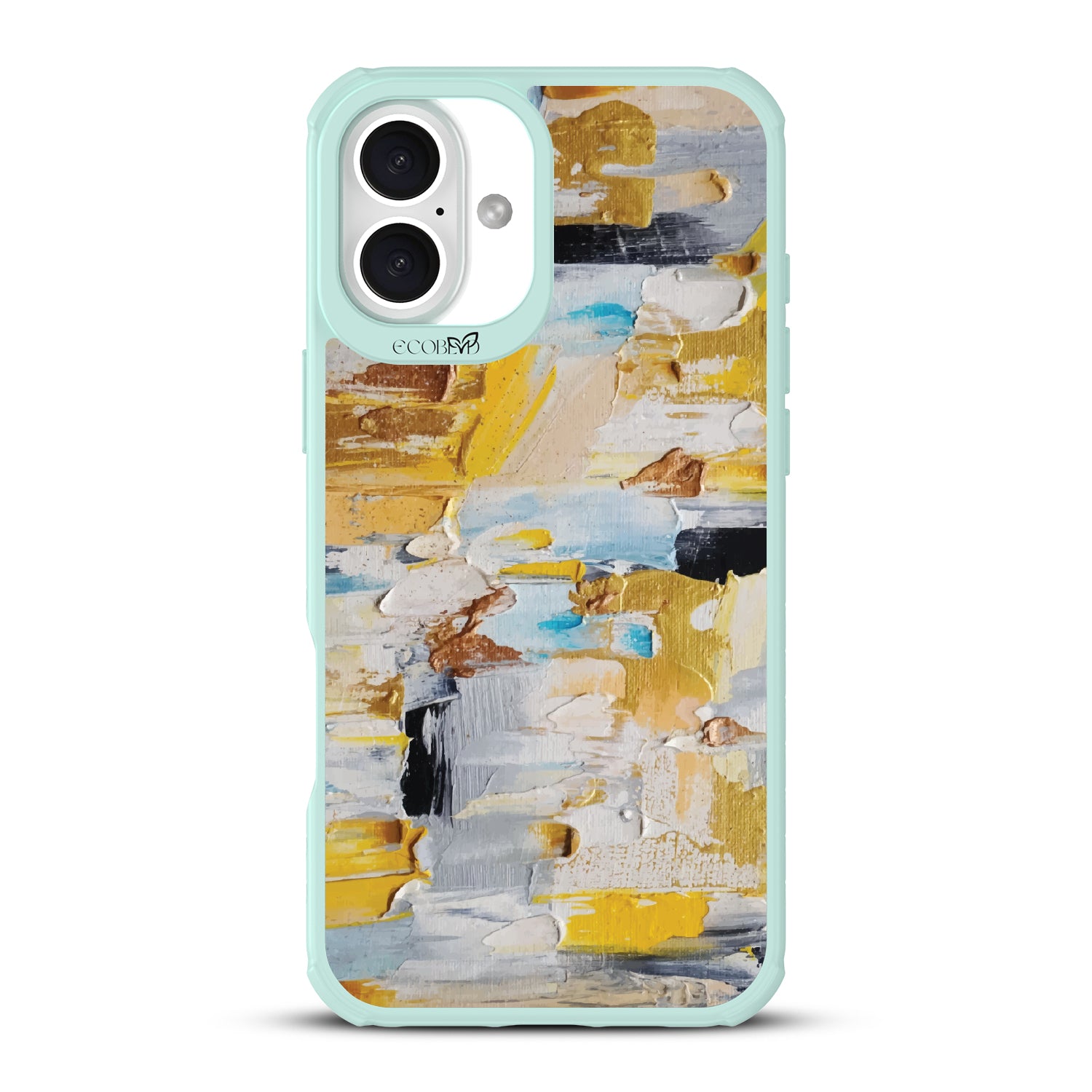 Everything looks better in the right light. The Lighten Up design on our Revive clear iPhone 16 Plus case plays with contrast—sunny yellows, soft creams, and grounded blue tones arranged in textured patches. A piece that shifts the mood instantly, like a well-placed brush of brightness.