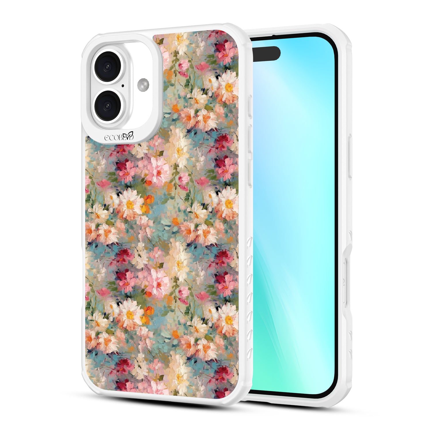 Always in season. The Perennial design on our Revive clear iPhone 16 Plus case scatters expressive blossoms across a haze of sage and sky, blending each stroke into a soft visual rhythm. Each layered stroke feels timeless—proof that true style always circles back to the classics.