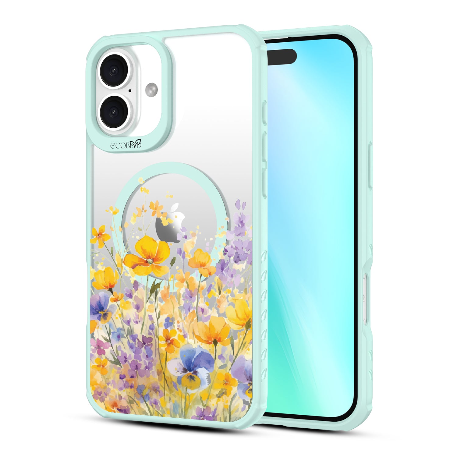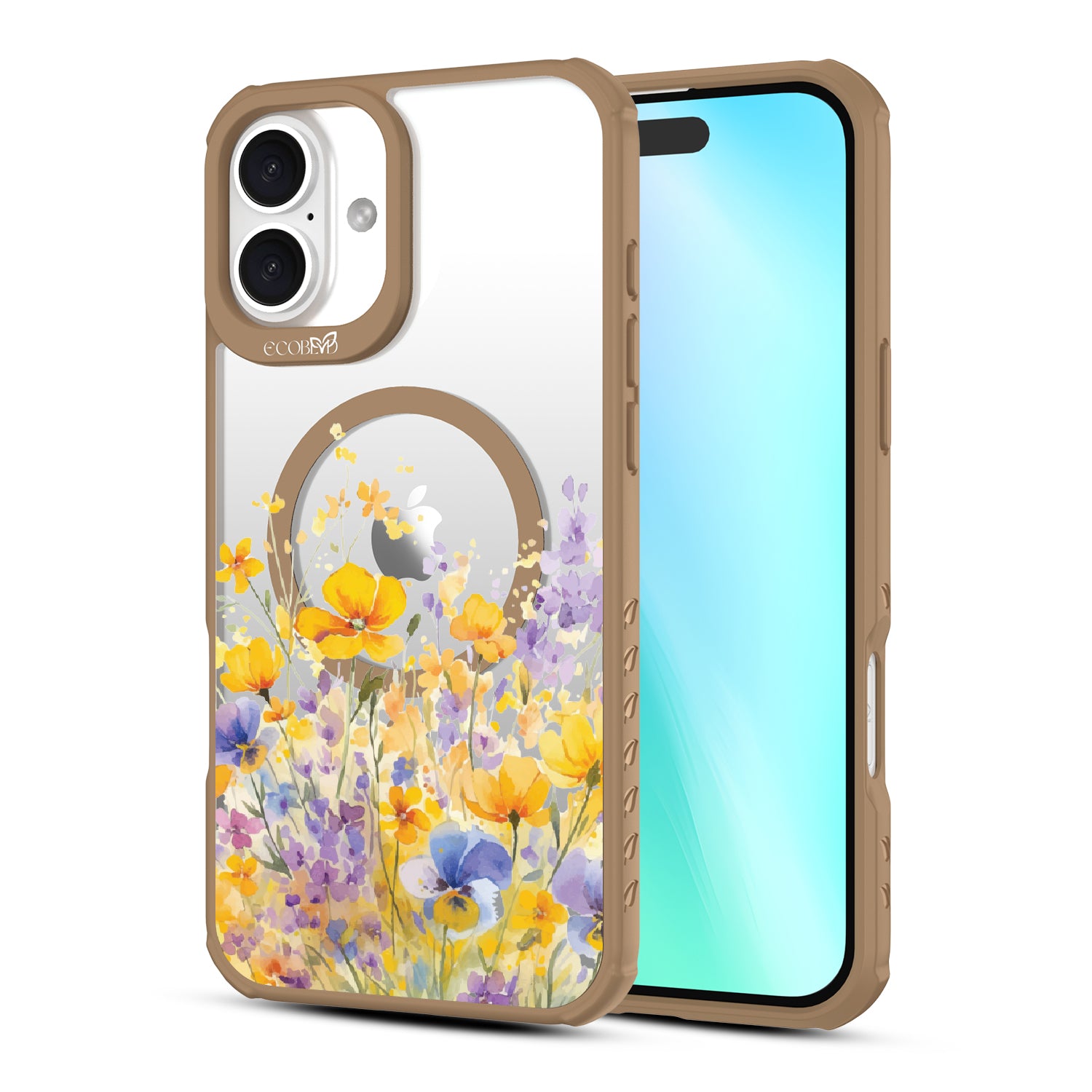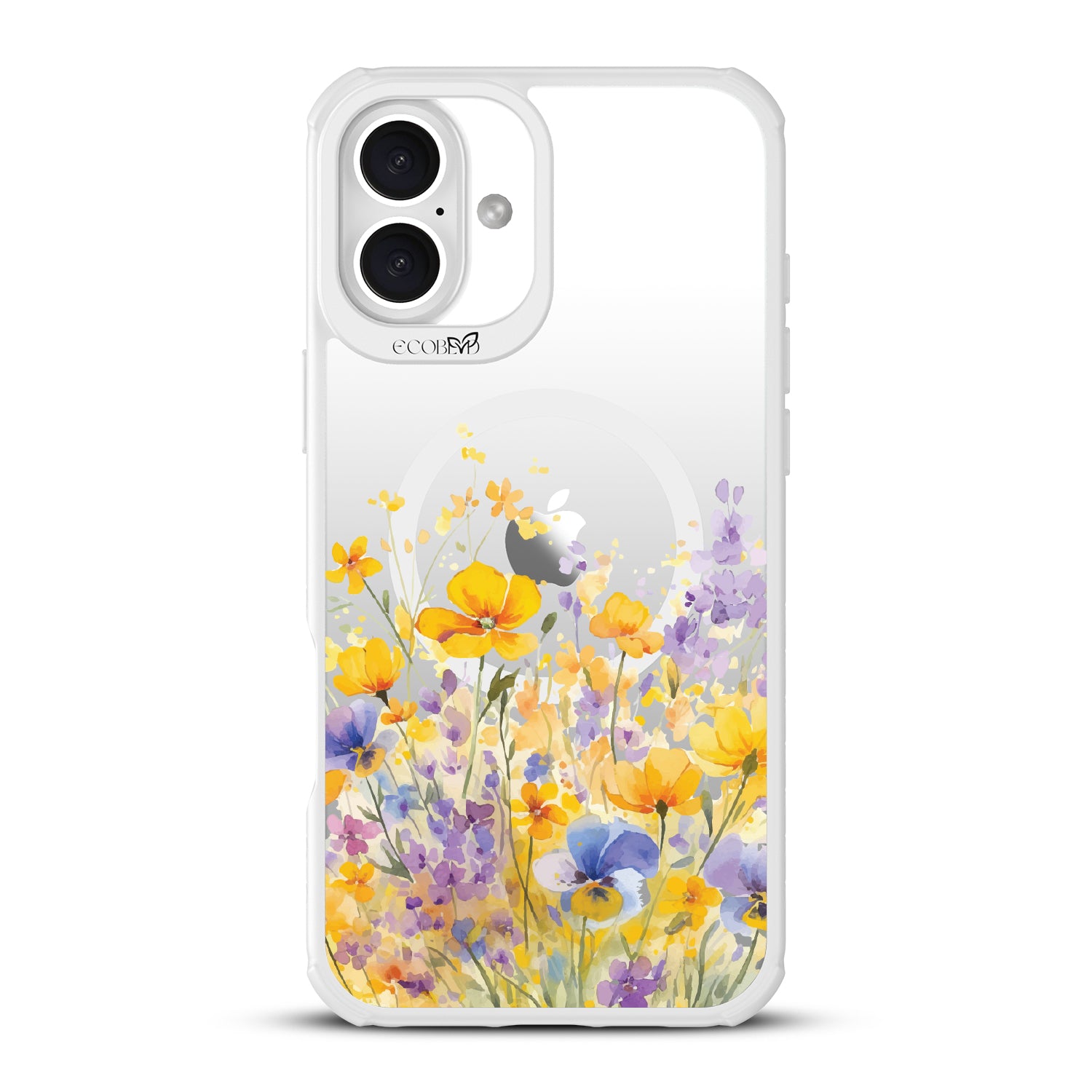 A moment in the light never looked so wild. The Meadowlight design on our Revive clear iPhone 16 Plus case lets soft florals run free in a watercolor wash of gold and lavender. A design that glows like a field at its most unfiltered.