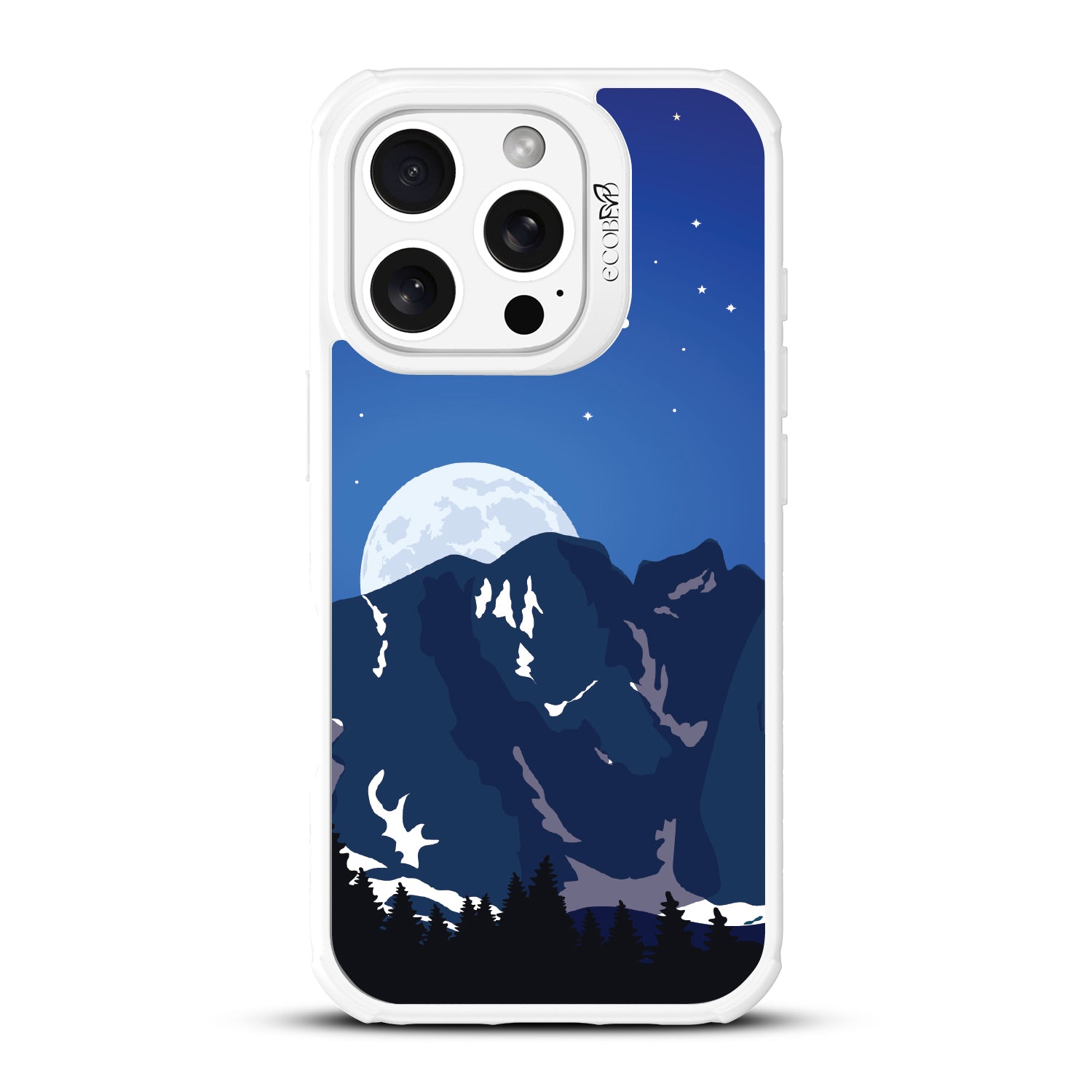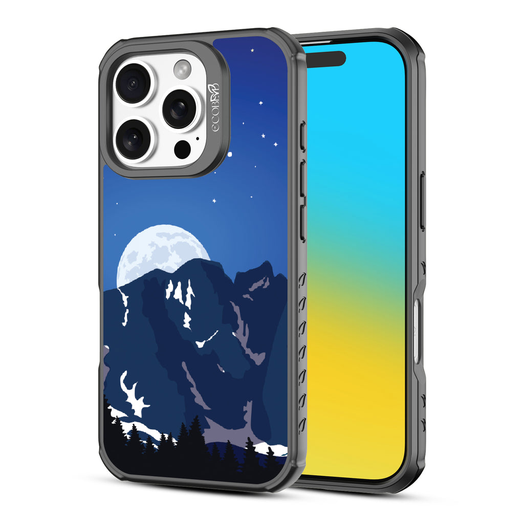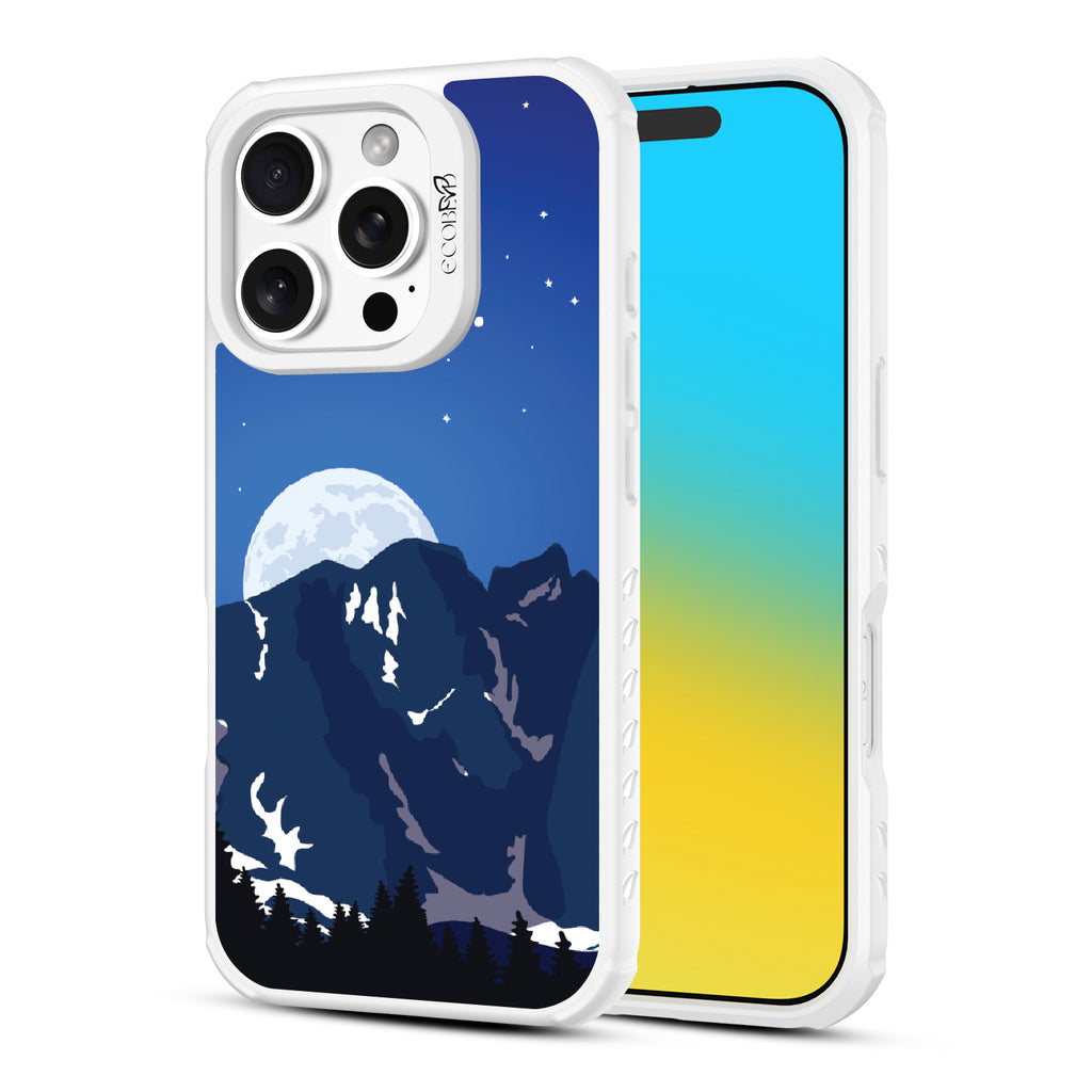 Bask in the ethereal glow of our Alpine Moon design on our Revive clear iPhone 16 Pro phone case where the moon hangs like a luminous pearl against the velvet canvas of the night sky, casting its soft radiance upon the rugged terrain below.