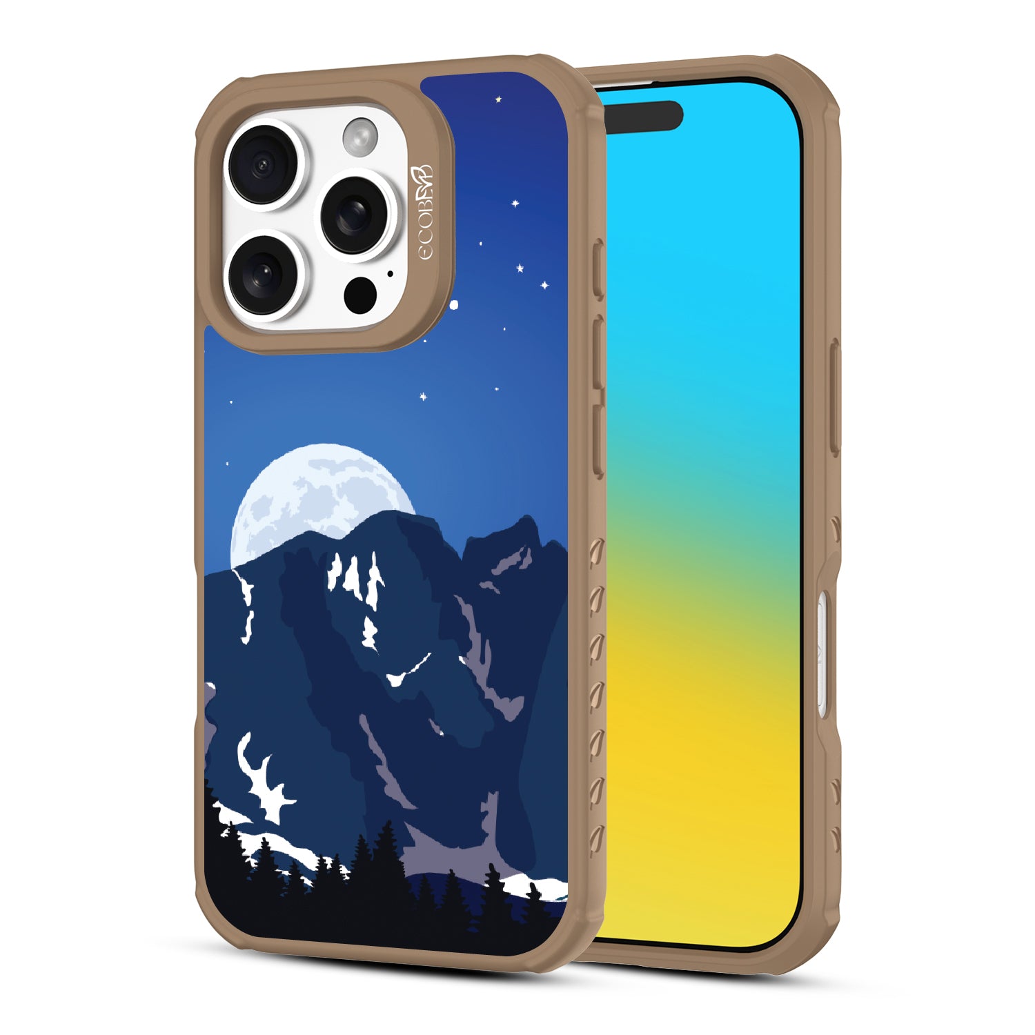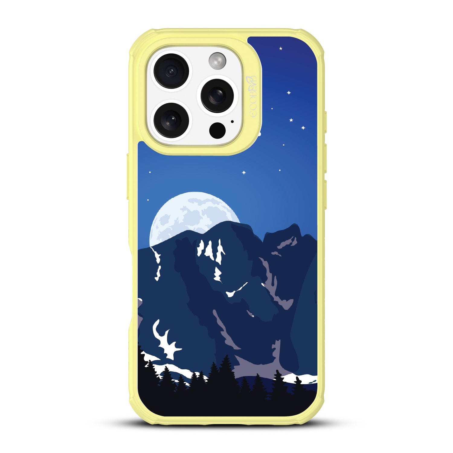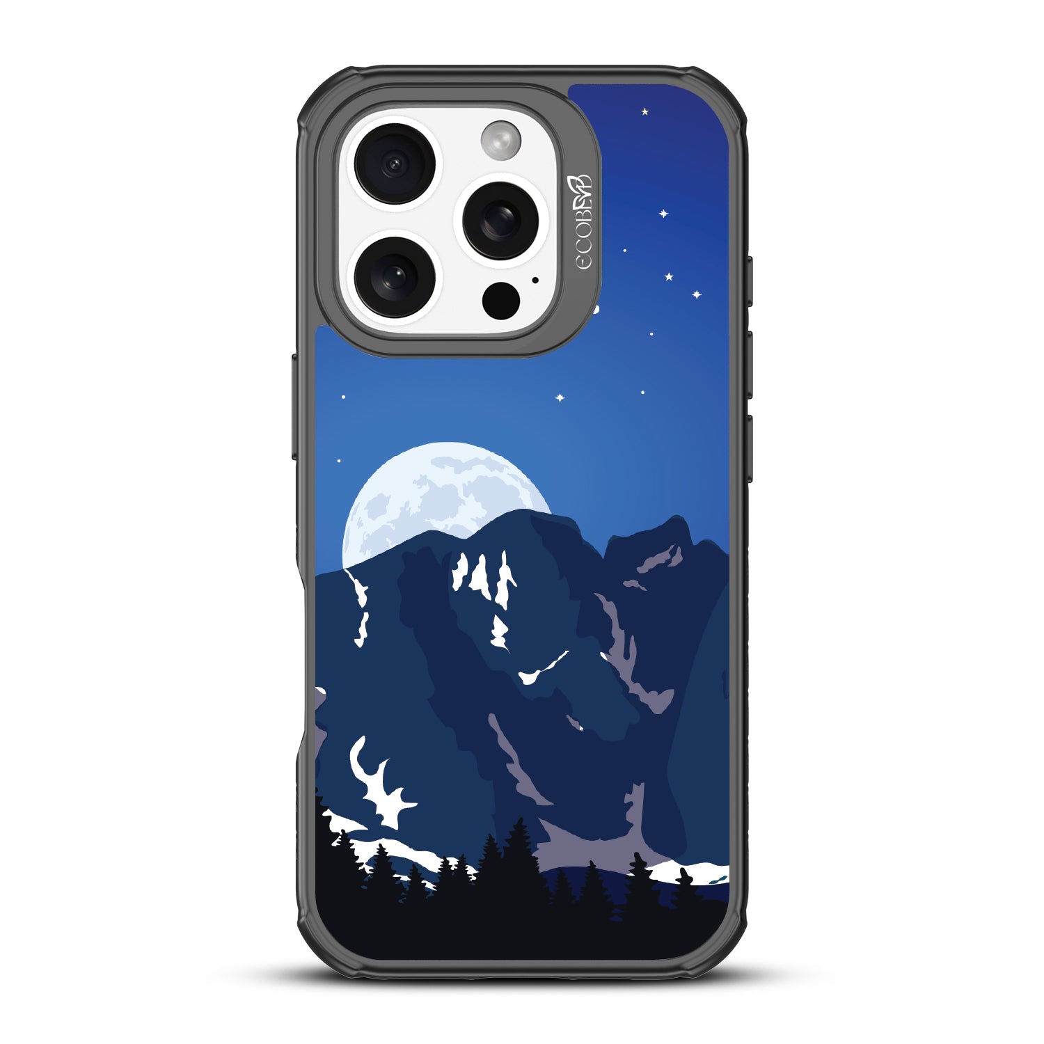 Bask in the ethereal glow of our Alpine Moon design on our Revive clear iPhone 16 Pro phone case where the moon hangs like a luminous pearl against the velvet canvas of the night sky, casting its soft radiance upon the rugged terrain below.