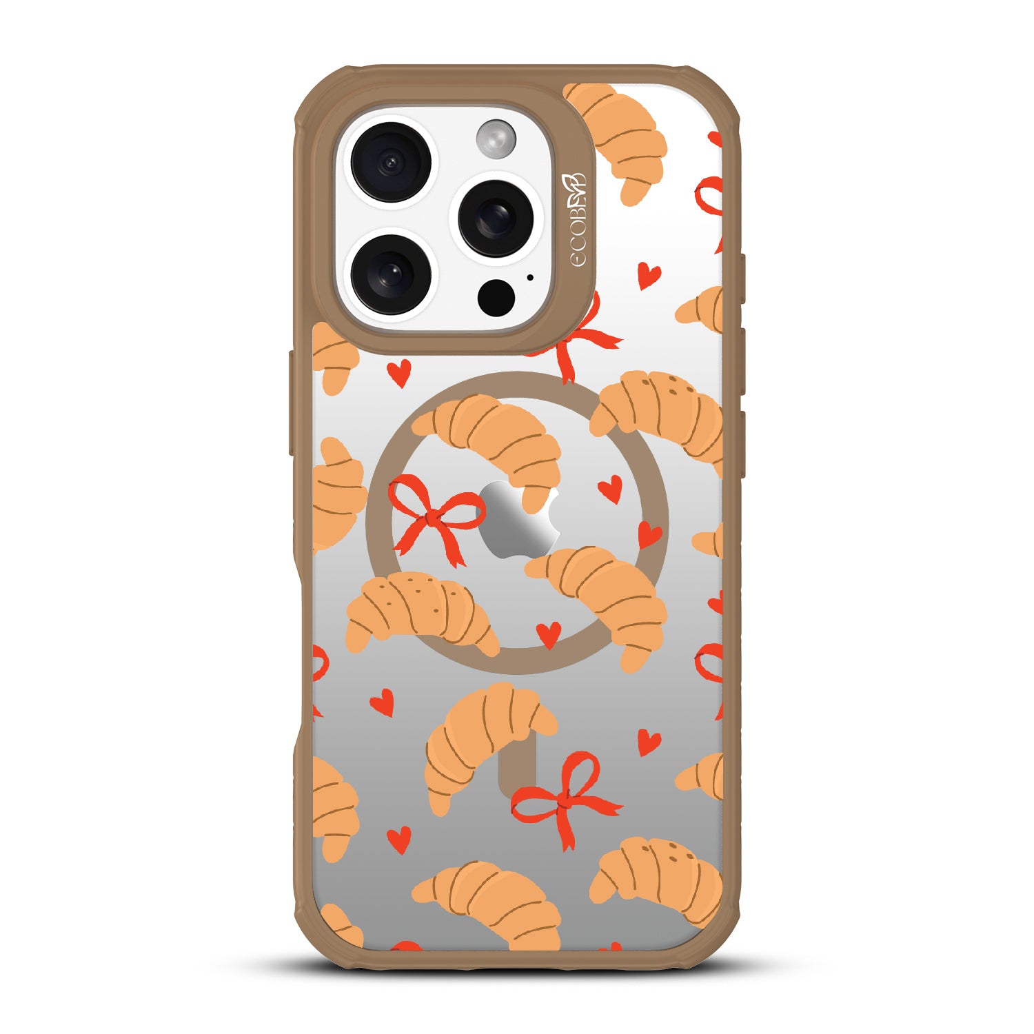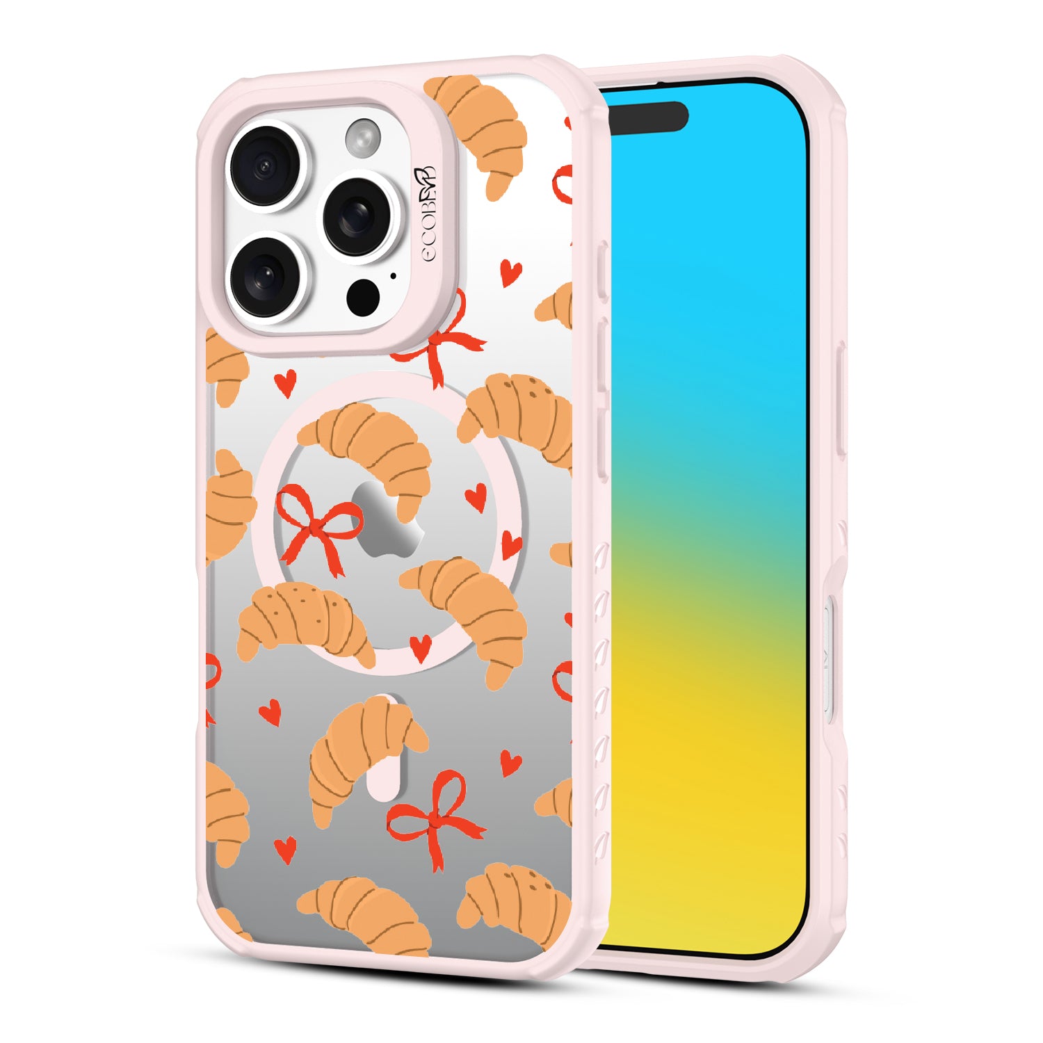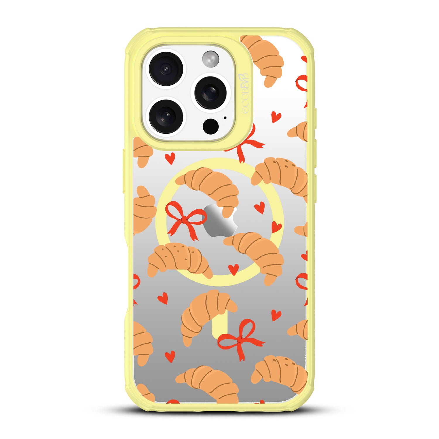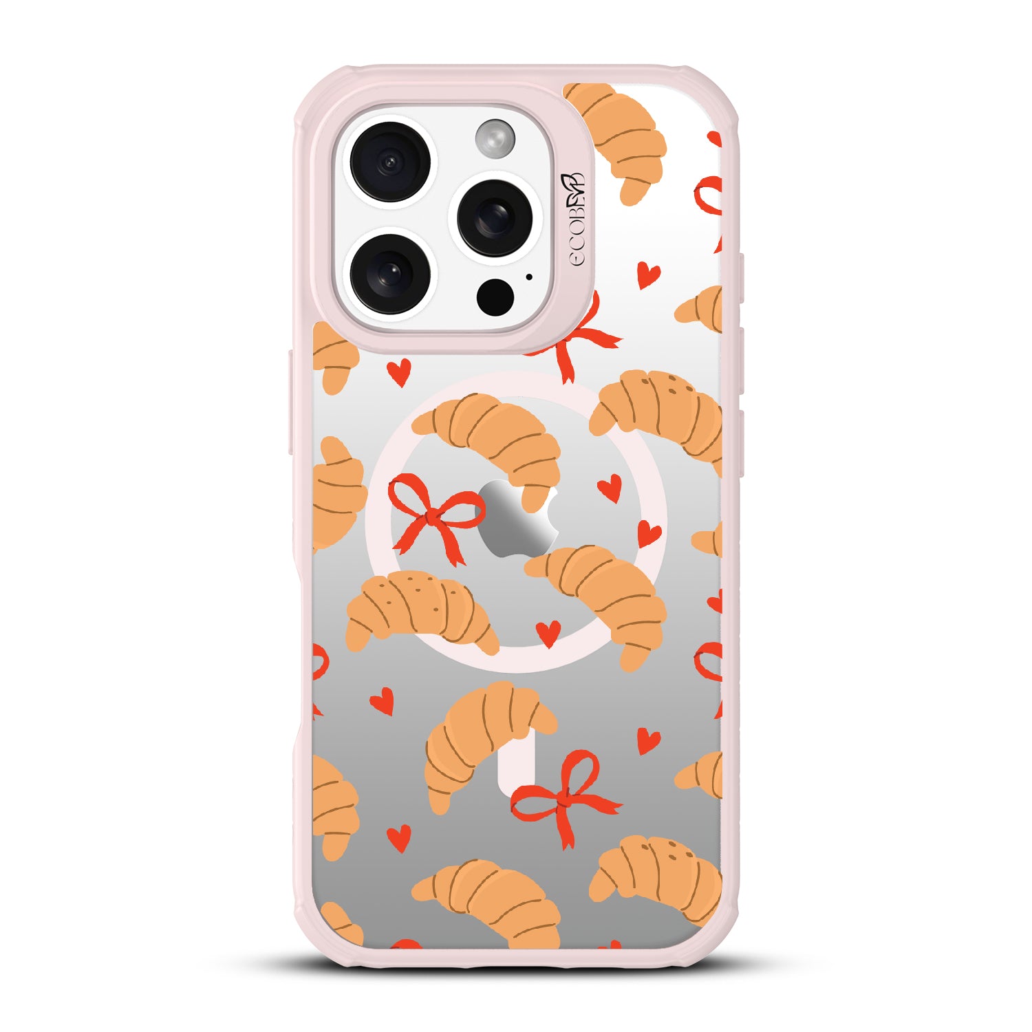 Good taste deserves the perfect recipe like the Croissant Couture design on our Revive clear iPhone 16 Pro case! Softly folded croissants, tied with dainty red bows and sprinkled with sweet hearts, evoke the lightness and care of a true delicacy.