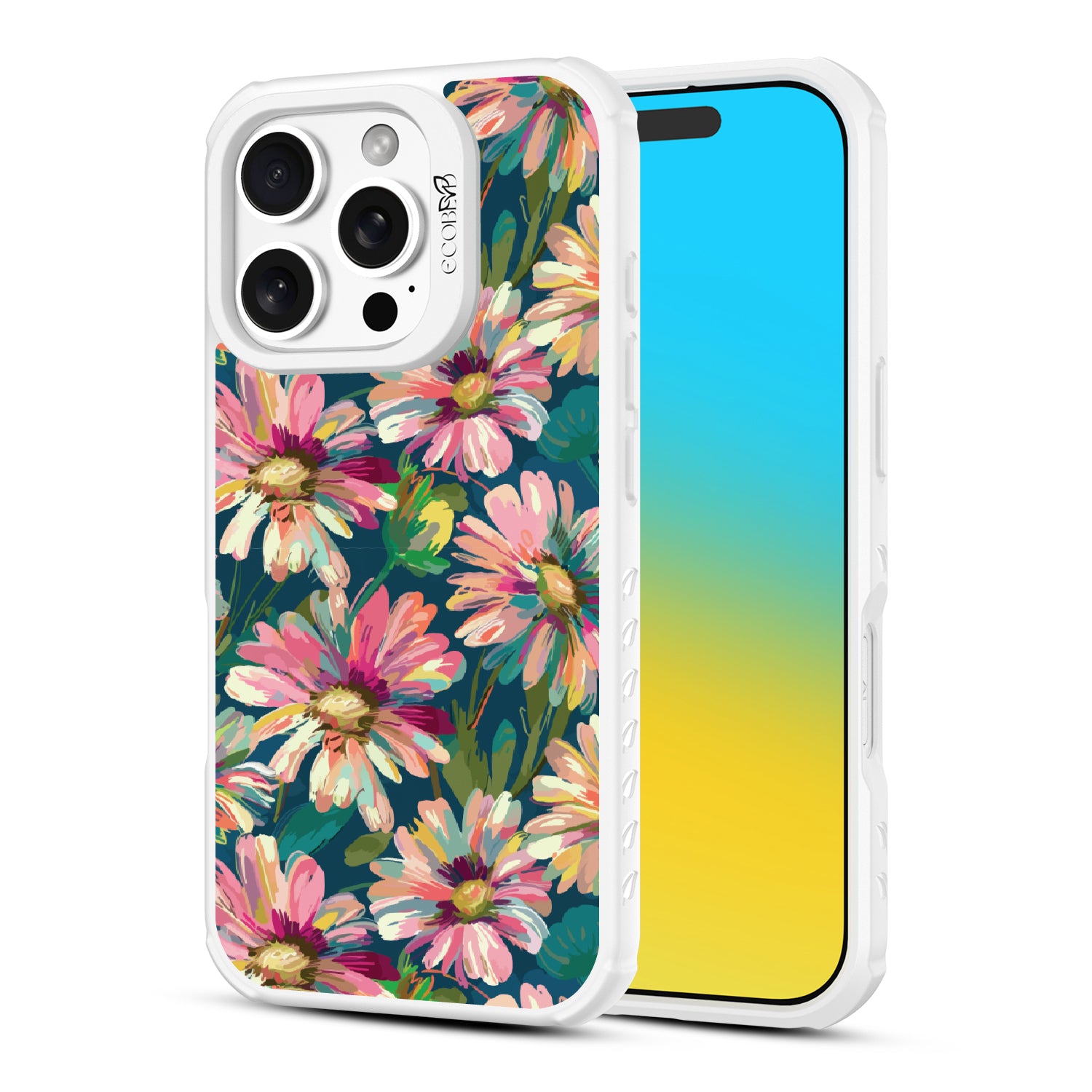 Just before dark, everything glows. The Daisy Dusk design on our Revive clear iPhone 16 Pro case sets vibrant petals against a deep teal horizon, where warm florals bloom loudest in the final stretch of daylight. It’s a pause between boldness and calm—where dusk becomes its own kind of bloom.