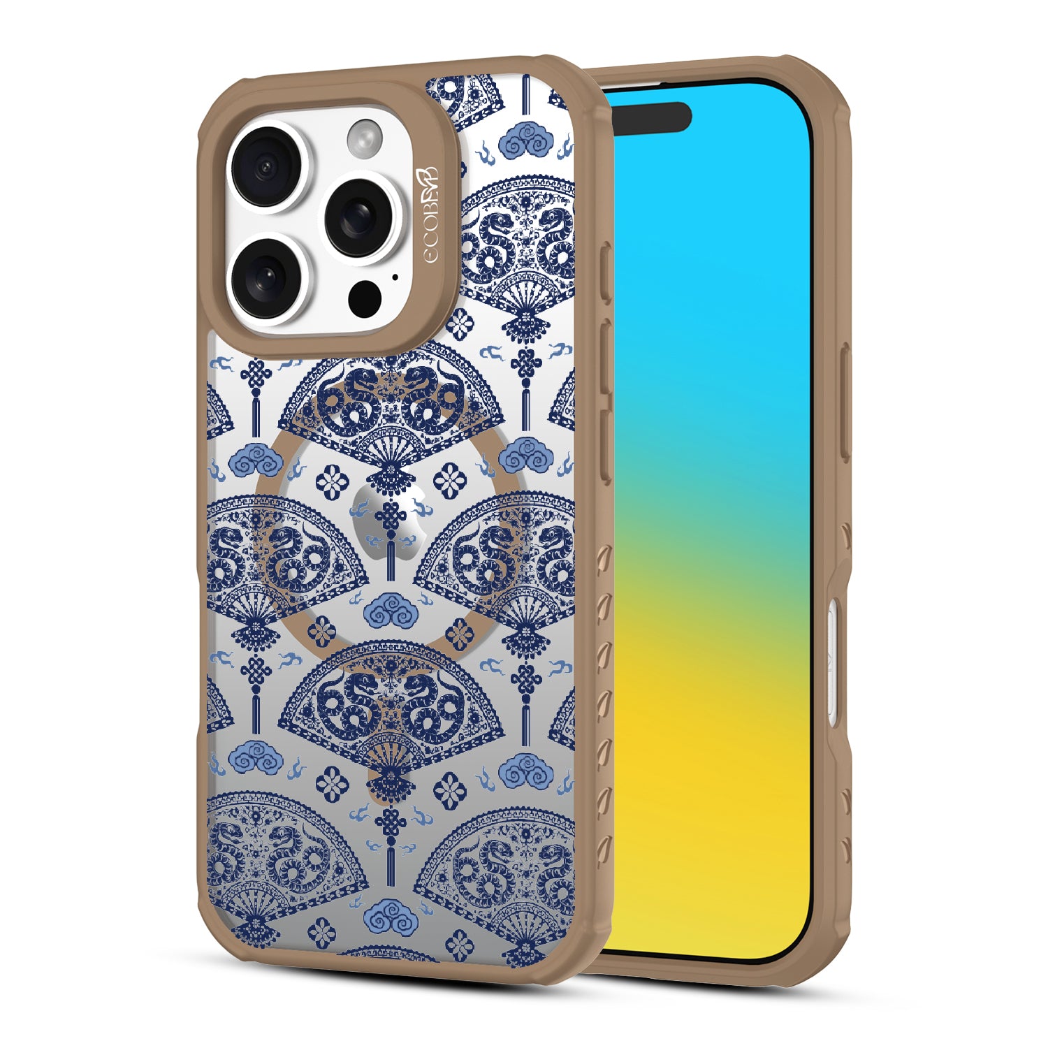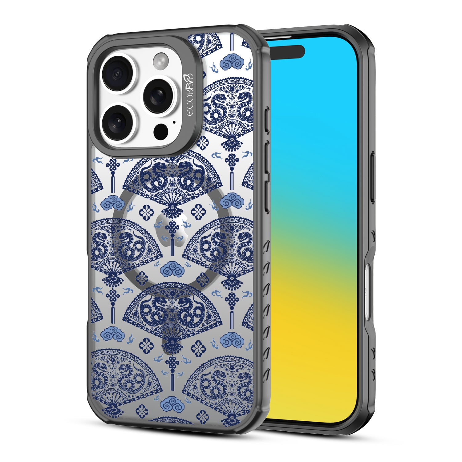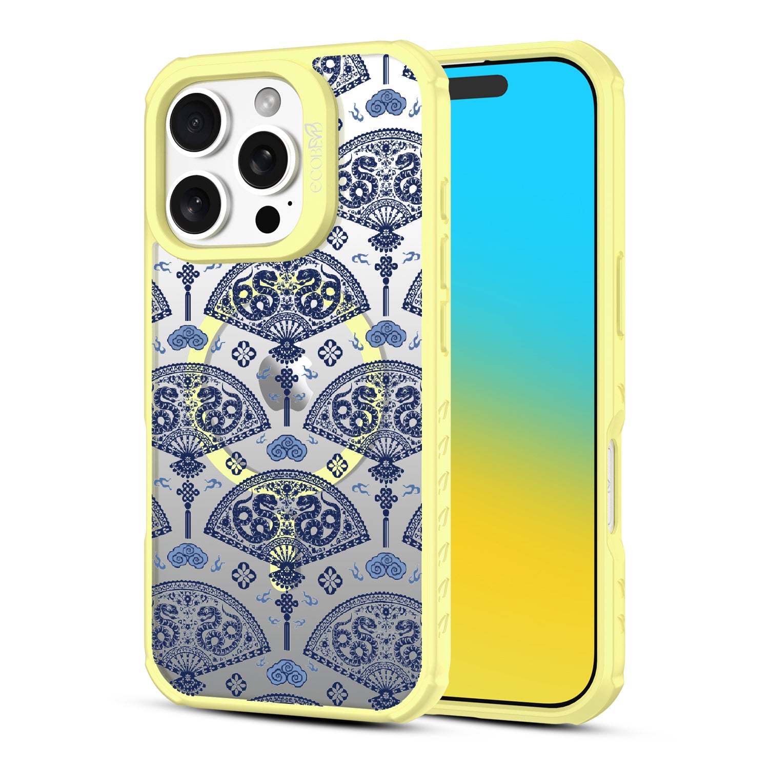 Let the winds of good fortune blow your way with the Fanning Fortune design on our Revive clear iPhone 16 Pro phone case. Golden serpents coil through beautifully detailed fans, a symbol of protection and prosperity for the Year of the Snake. The blue and yellow hues reflect the harmony between calmness and vitality, setting the tone for a year filled with new opportunities and growth.